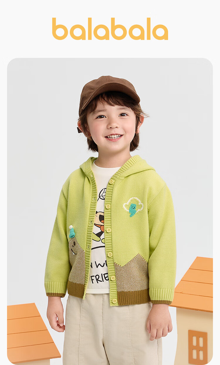 巴拉巴拉balaOne宝宝开衫毛衣男女童绣花提花针织衫2025秋装209325103203