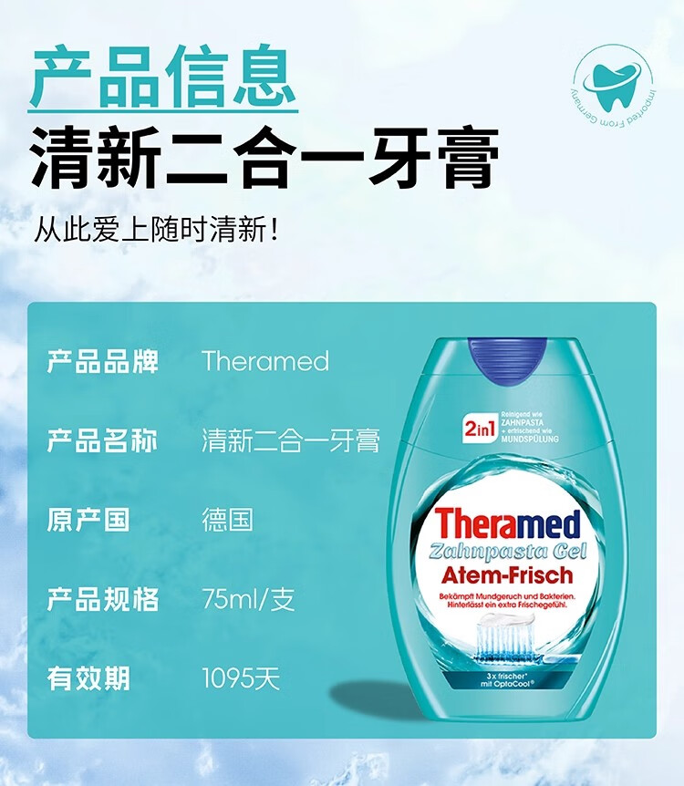 护齿达(THERAMED)汉高牙膏二合一持久清新口气祛口臭牙膏