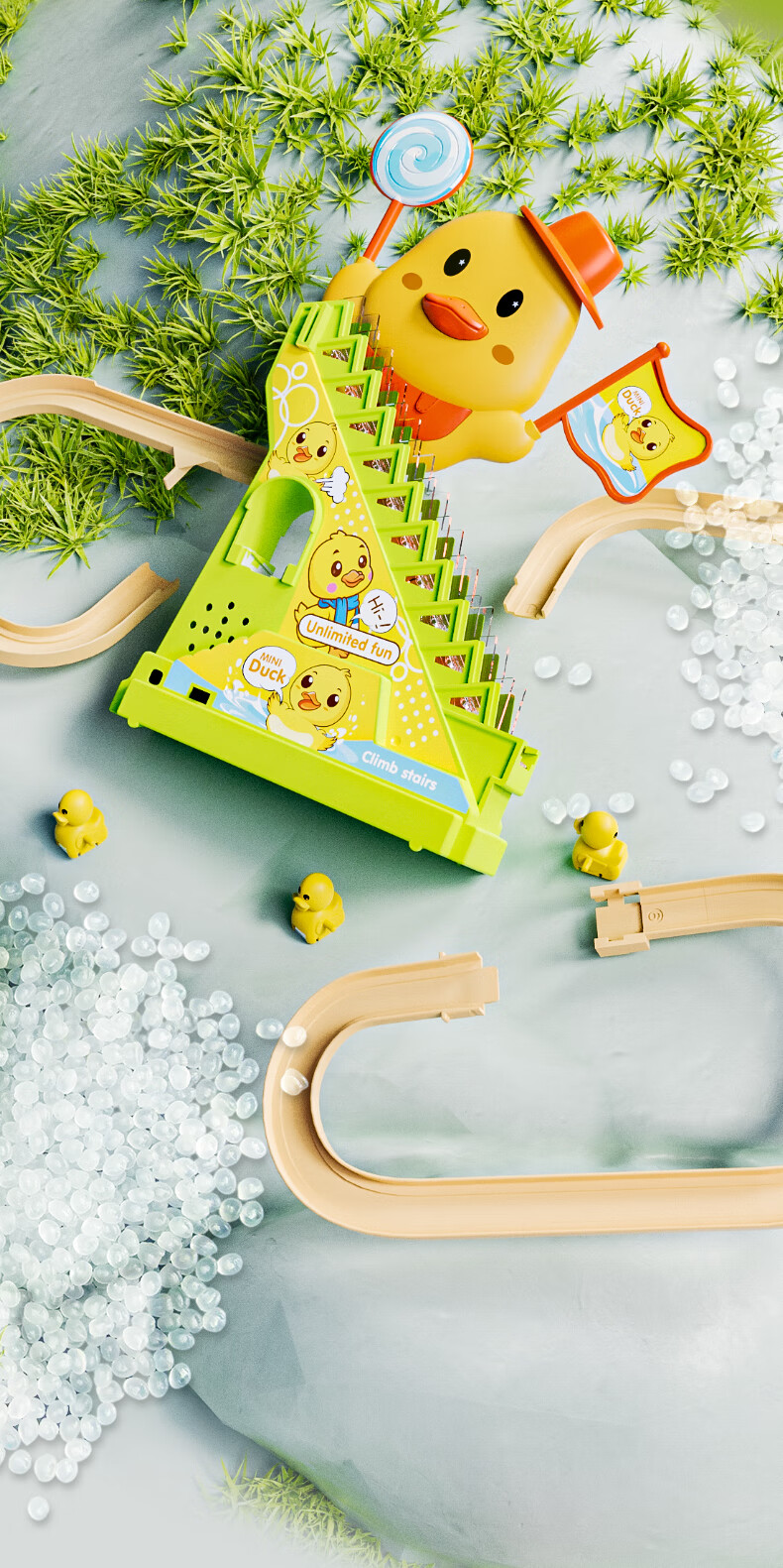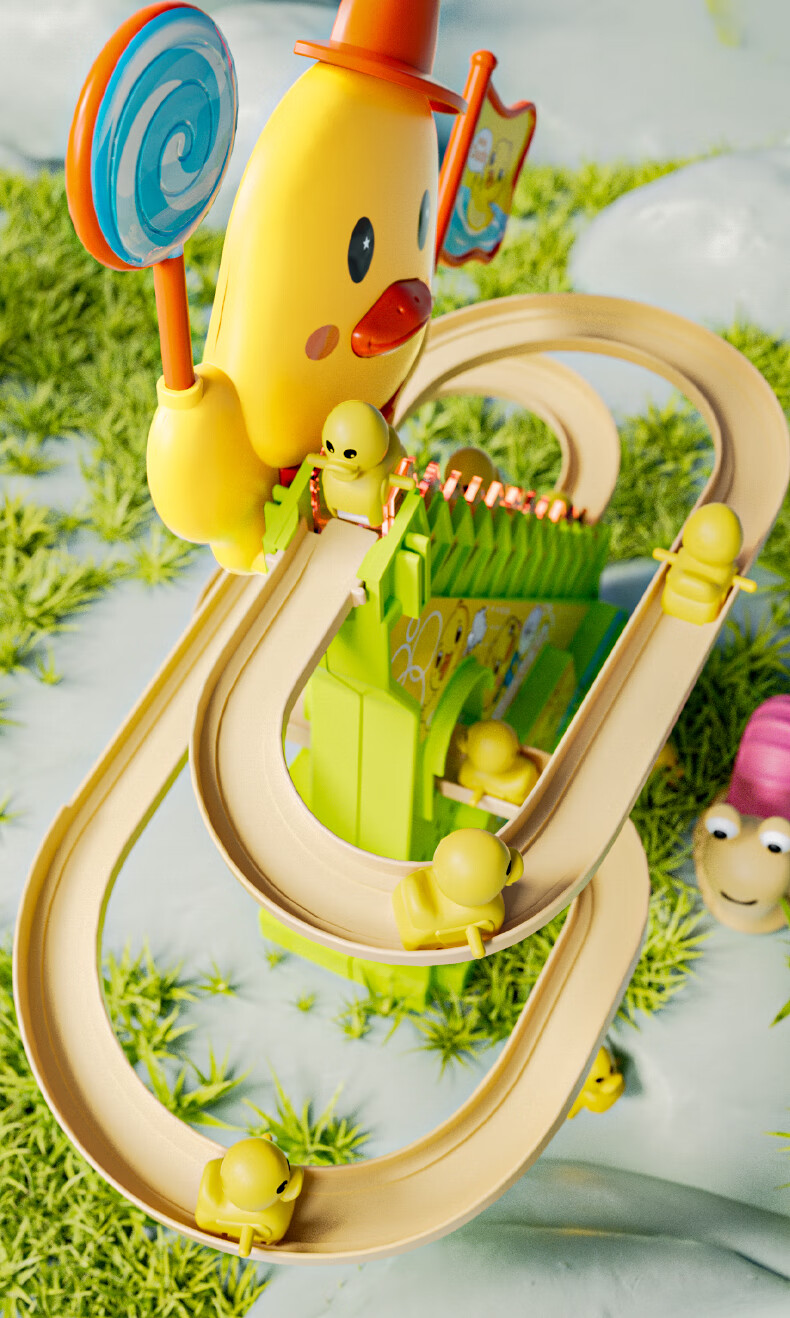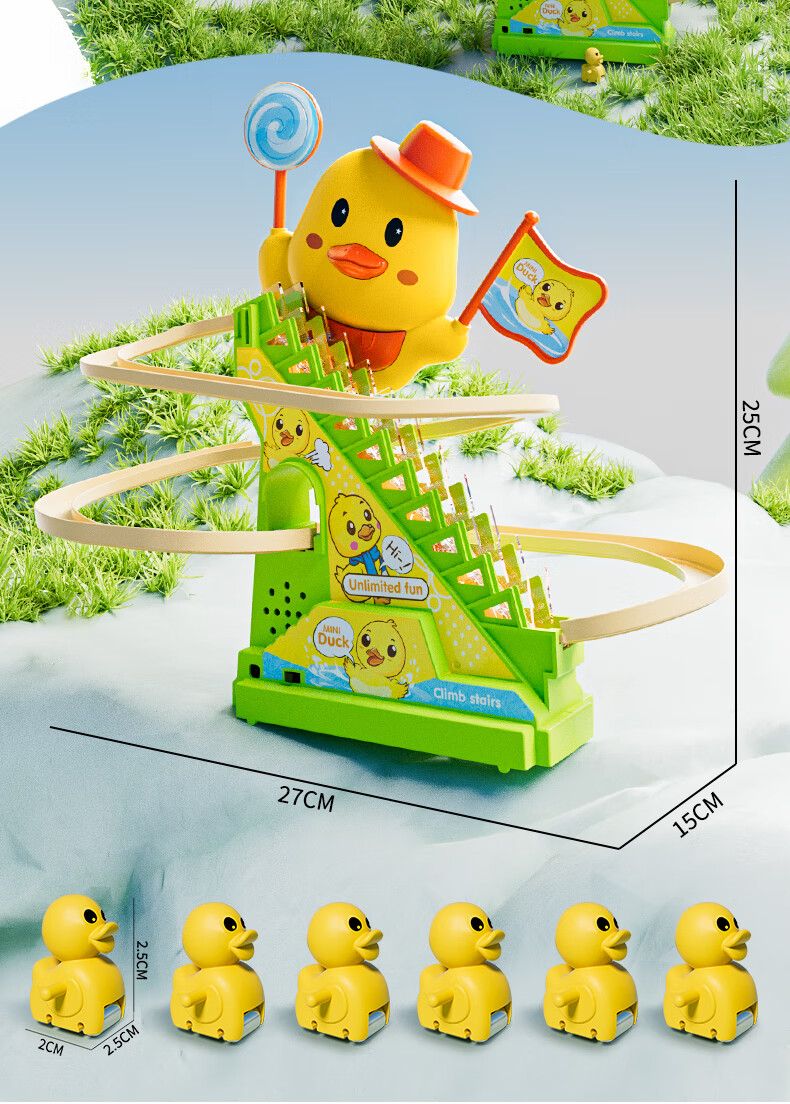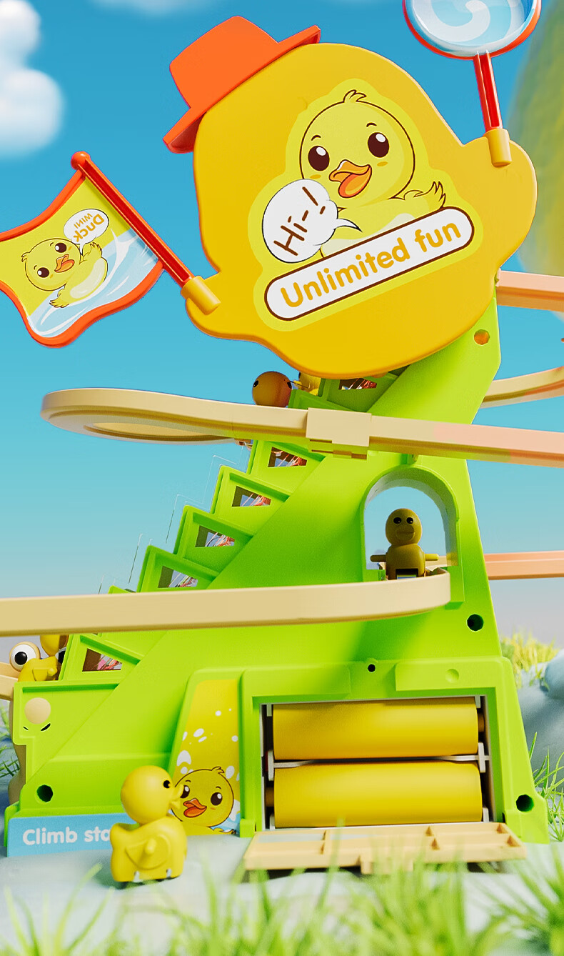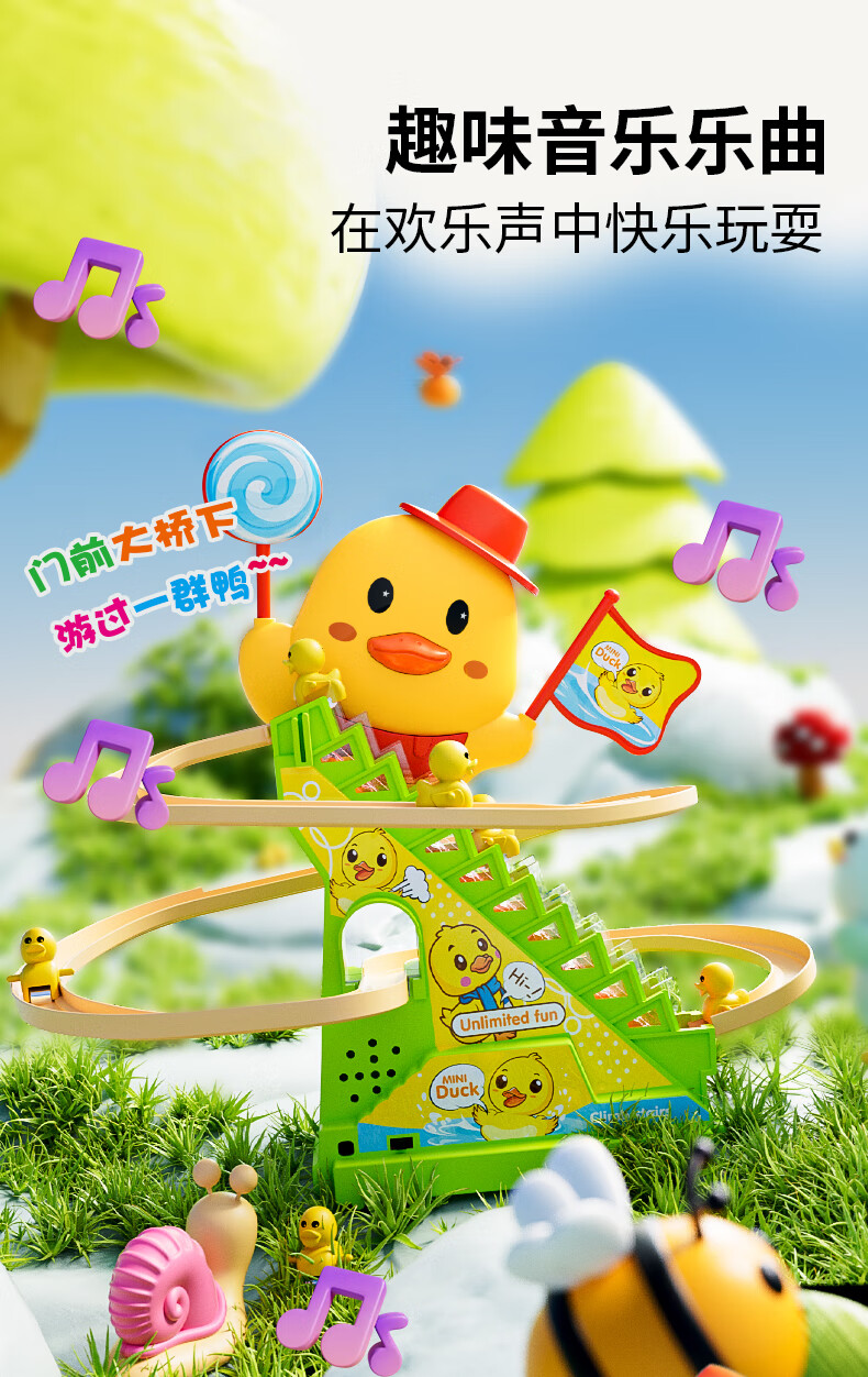 恩贝家族婴儿抬头训练玩具3-6岁宝宝小黄鸭爬楼梯电动轨道生日新年礼物