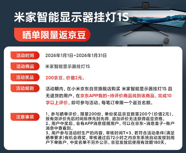 米家(MIJIA)智能显示器屏幕挂灯1S 电脑电竞桌面阅读台灯小米灯具