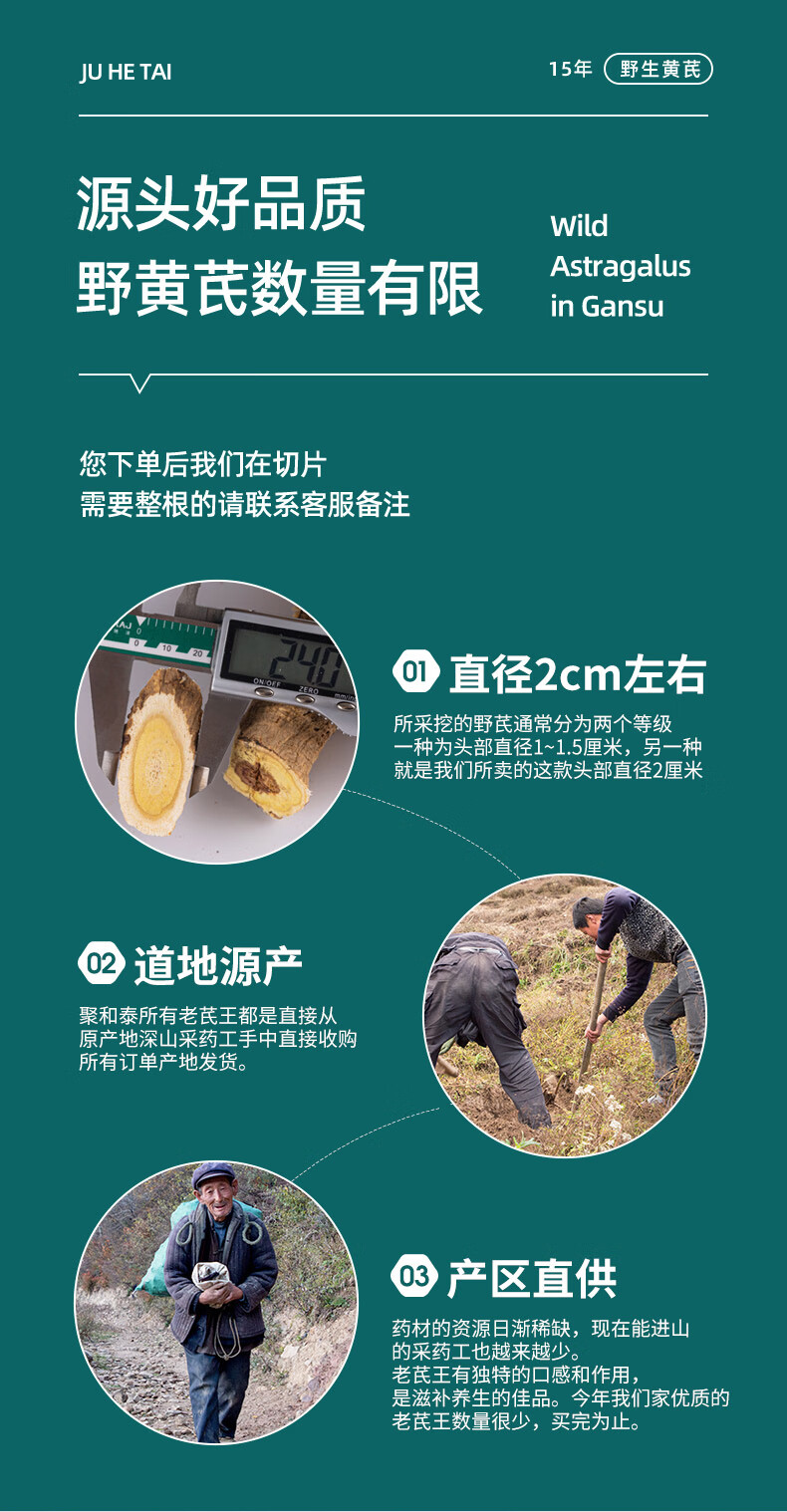 聚和泰 岷县15年野生特级大片黄芪片500g生黄芪炙老北芪党参当归中药材 【15年野生】特大片黄芪 500g*1袋