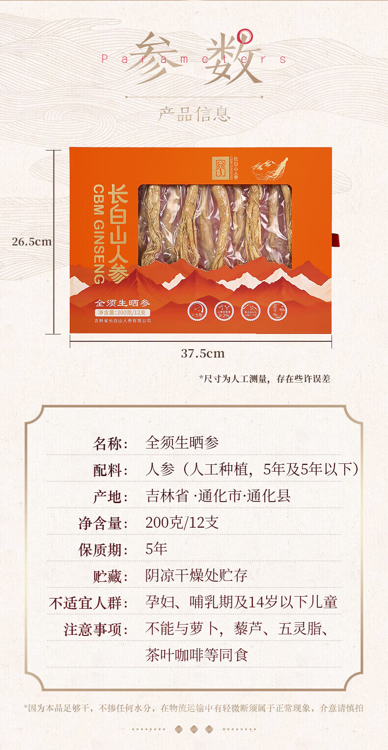 长白山人参【官方】全须生晒参干人参健康煲汤泡水泡酒材料年货送礼品盒装 精选足龄干人参 10g*2盒 礼袋装