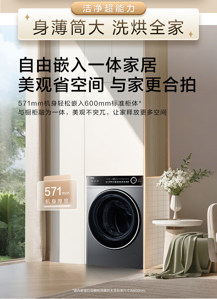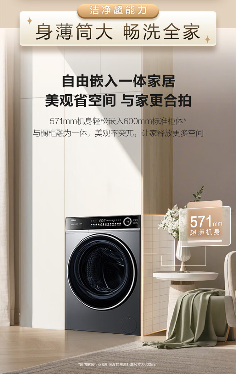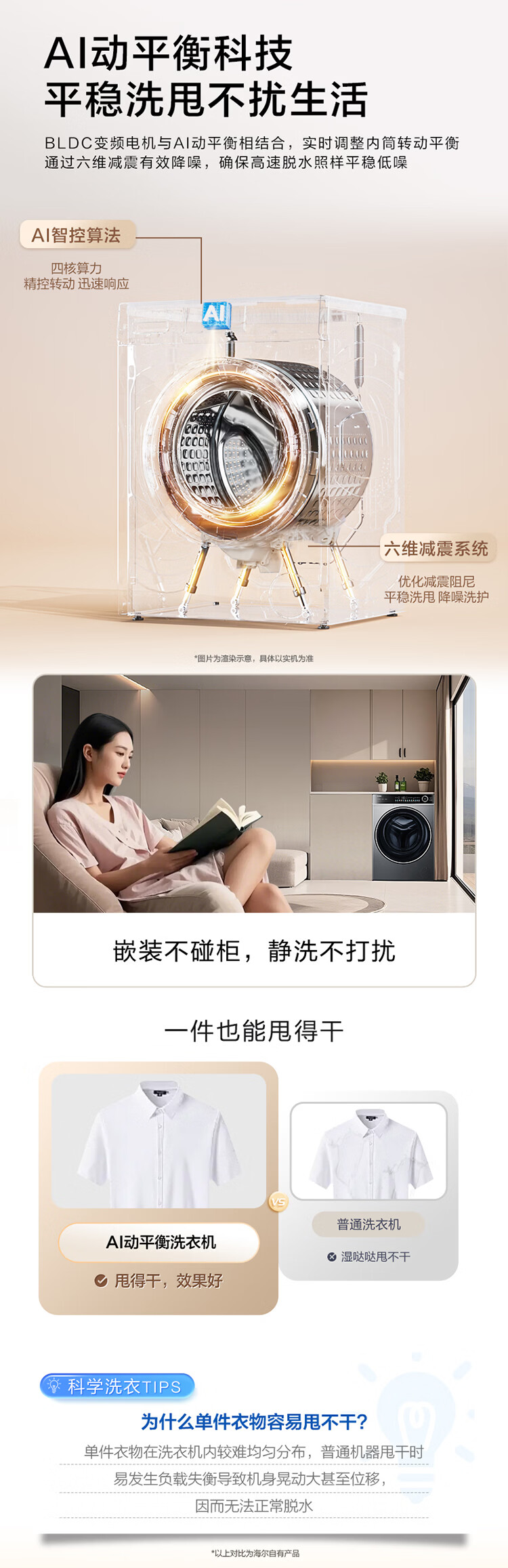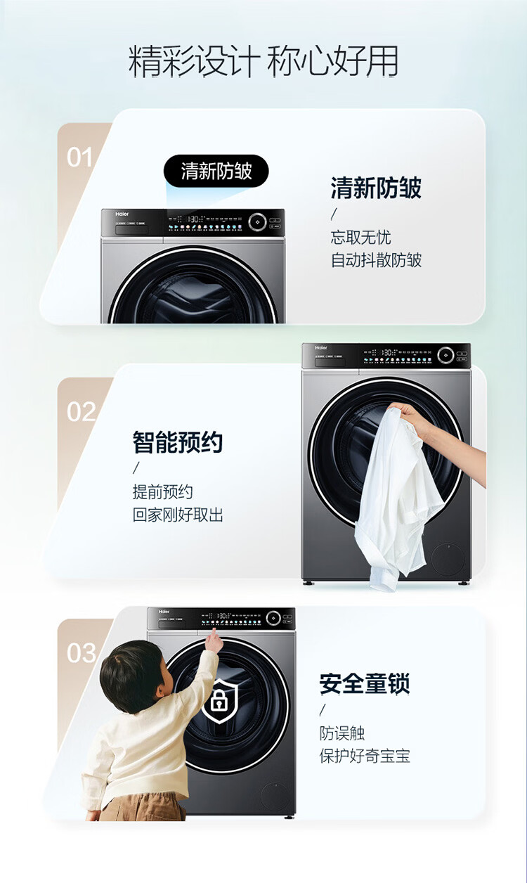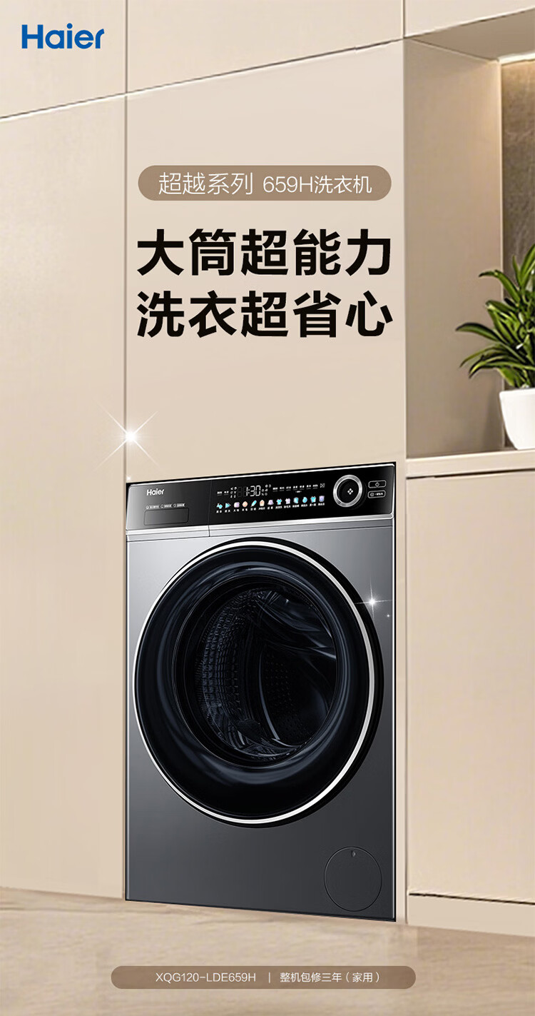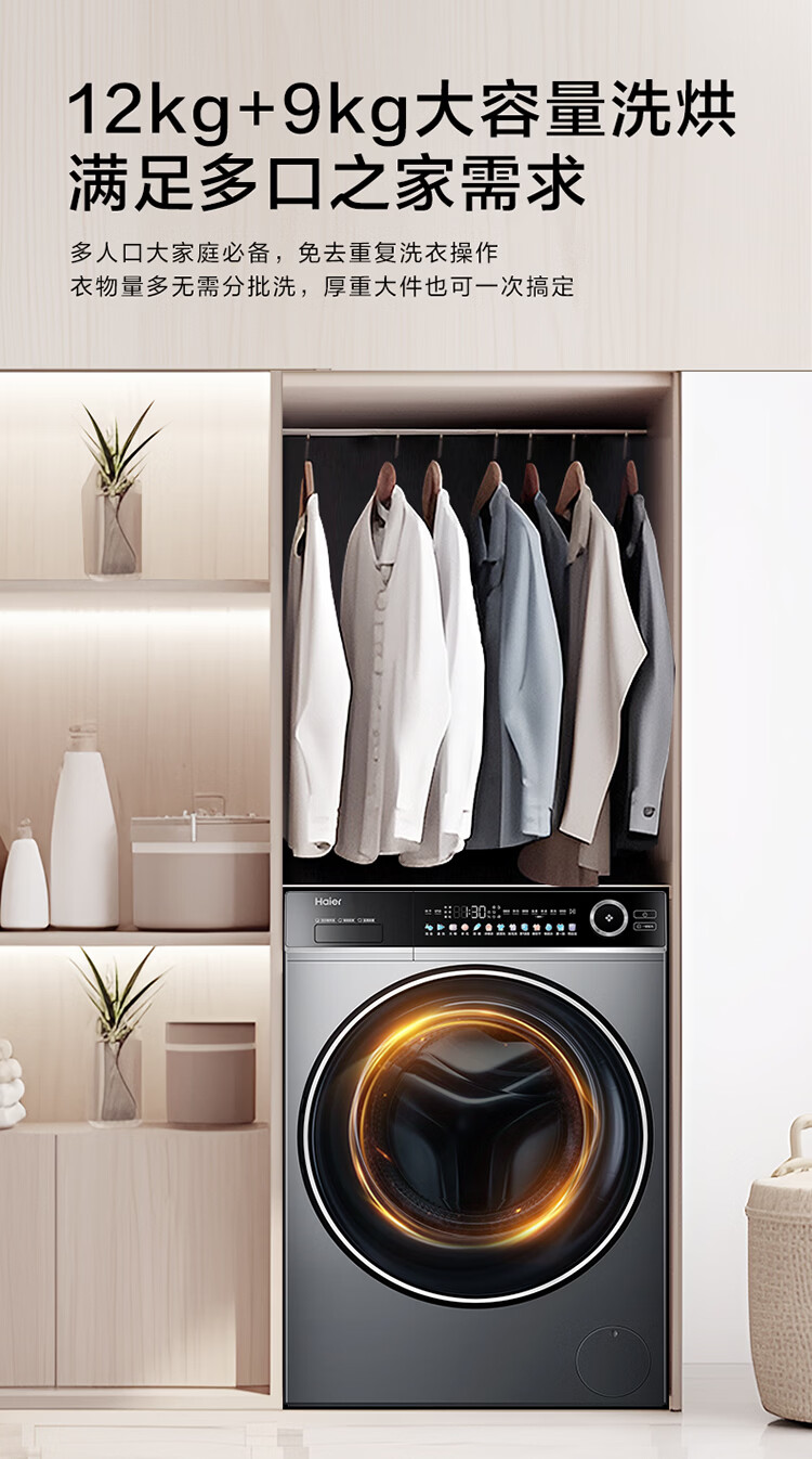 海尔【小红花新品659H】滚筒洗衣机全自动超薄12KG大容量八 维减震 精华洗2.0 家电补贴 1.21高洗净比 除毛洗空气洗蓝盾除菌 洗烘一体 12kg LDE659H