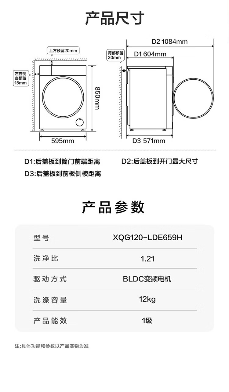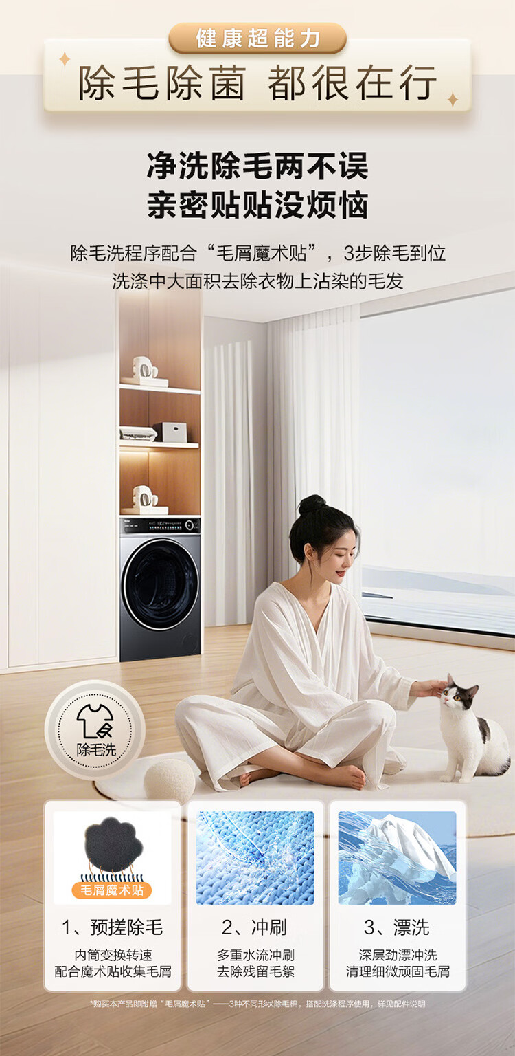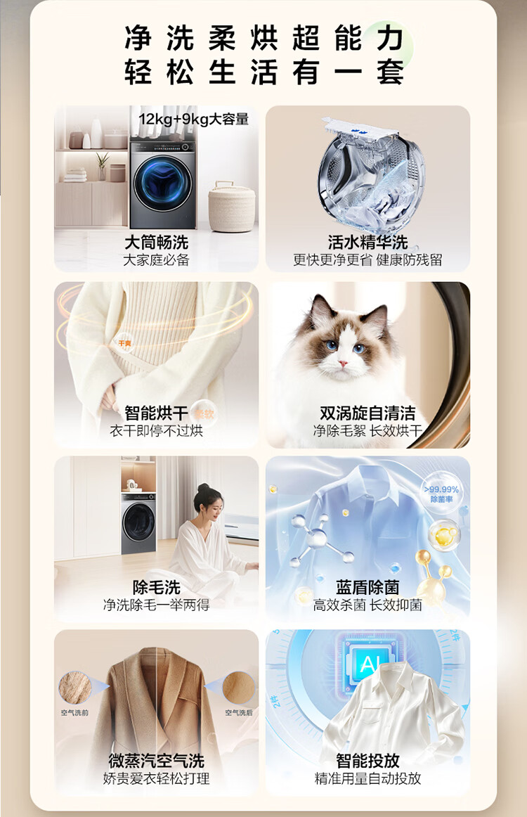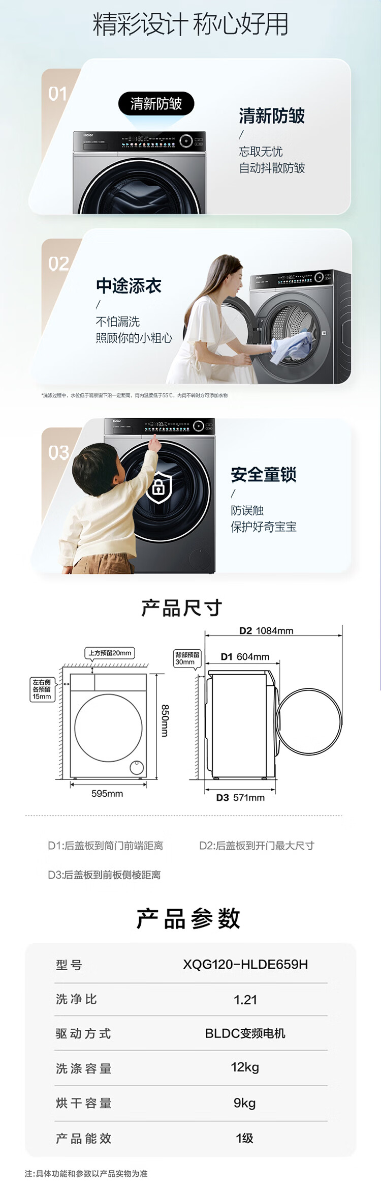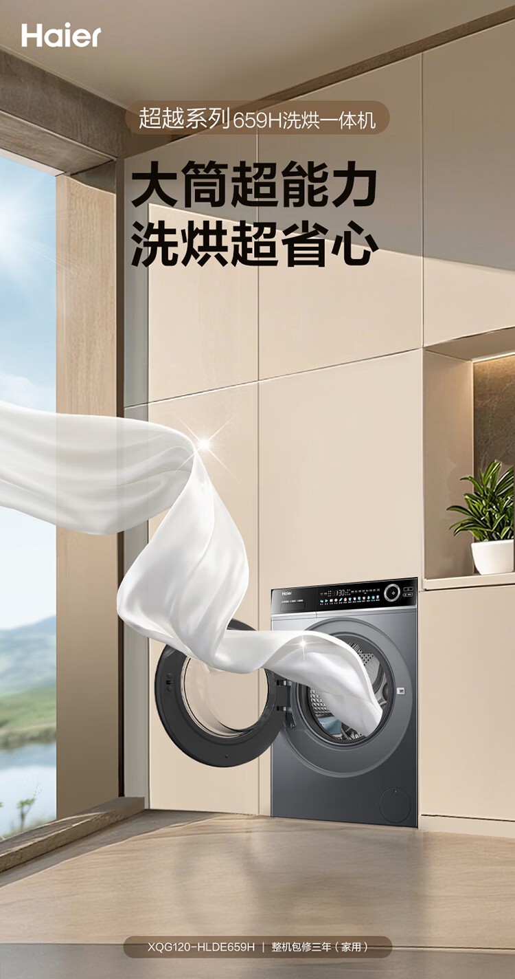 海尔【小红花新品659H】滚筒洗衣机全自动超薄12KG大容量八 维减震 精华洗2.0 家电补贴 1.21高洗净比 除毛洗空气洗蓝盾除菌 洗烘一体 12kg LDE659H