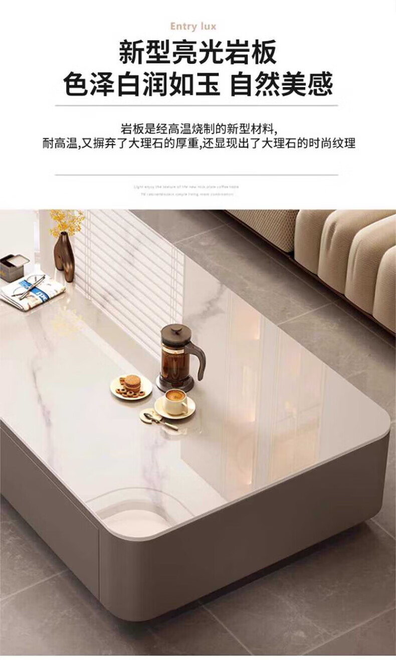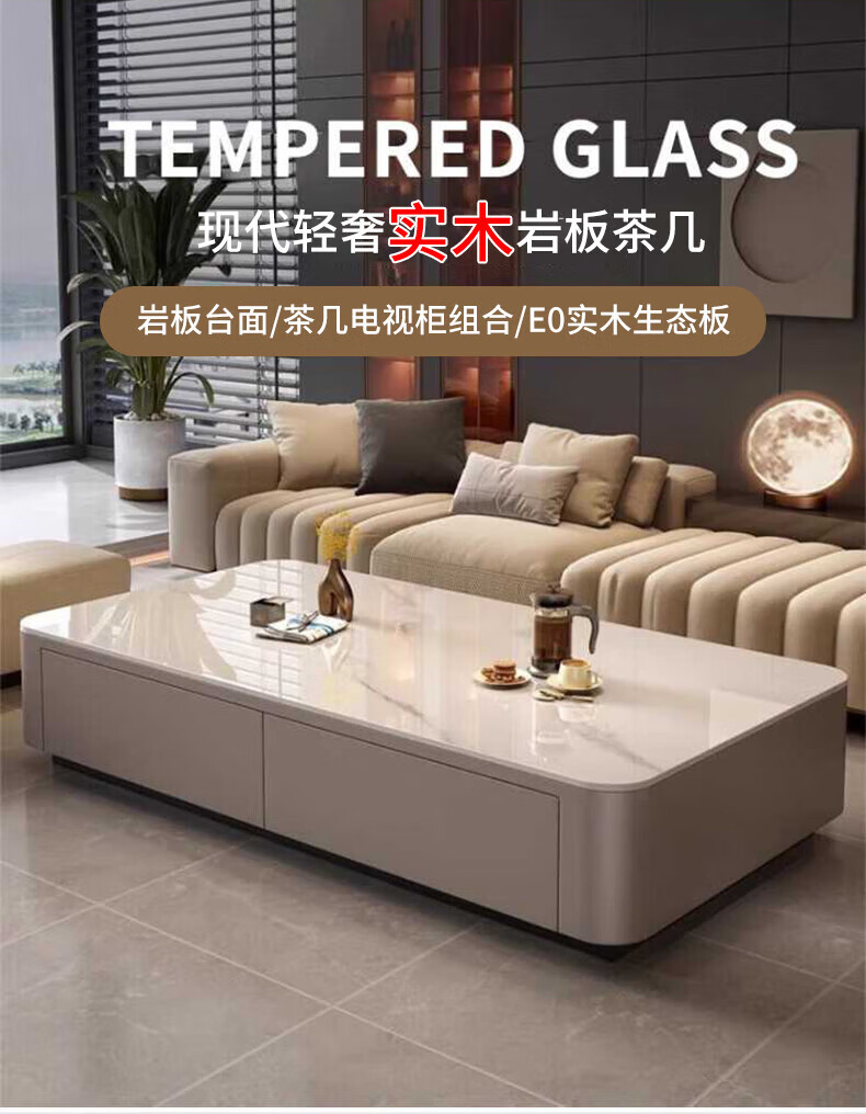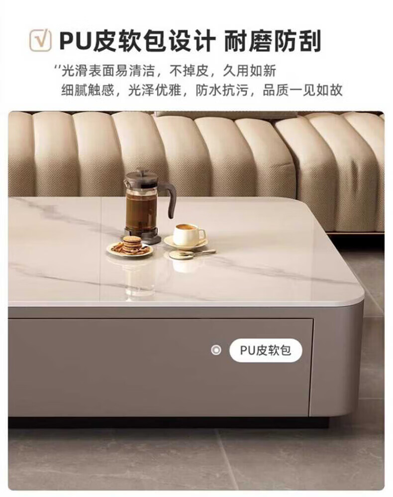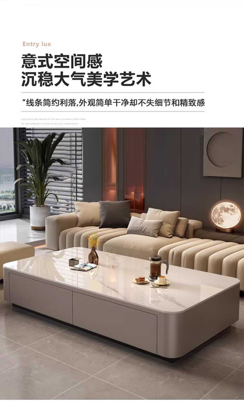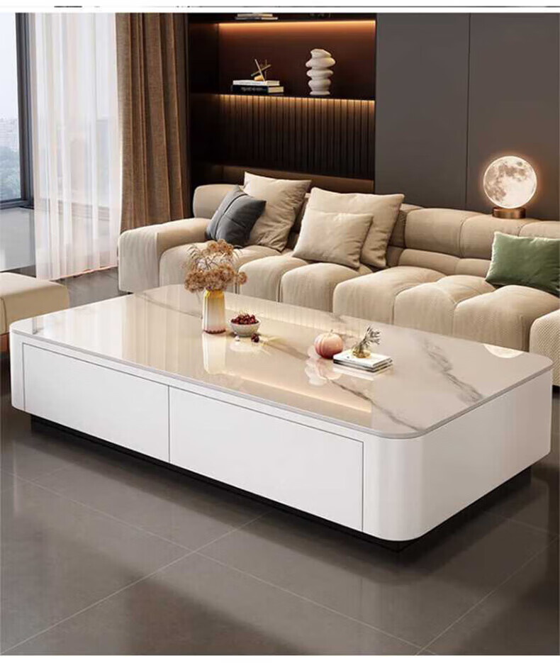 奥维伊琦现代简约岩板茶几客厅家用轻奢2025新款椭圆茶桌网红小户型茶几桌 【100*50】雪山白+PU白软包柜