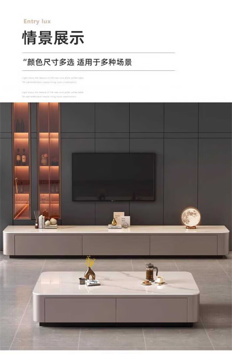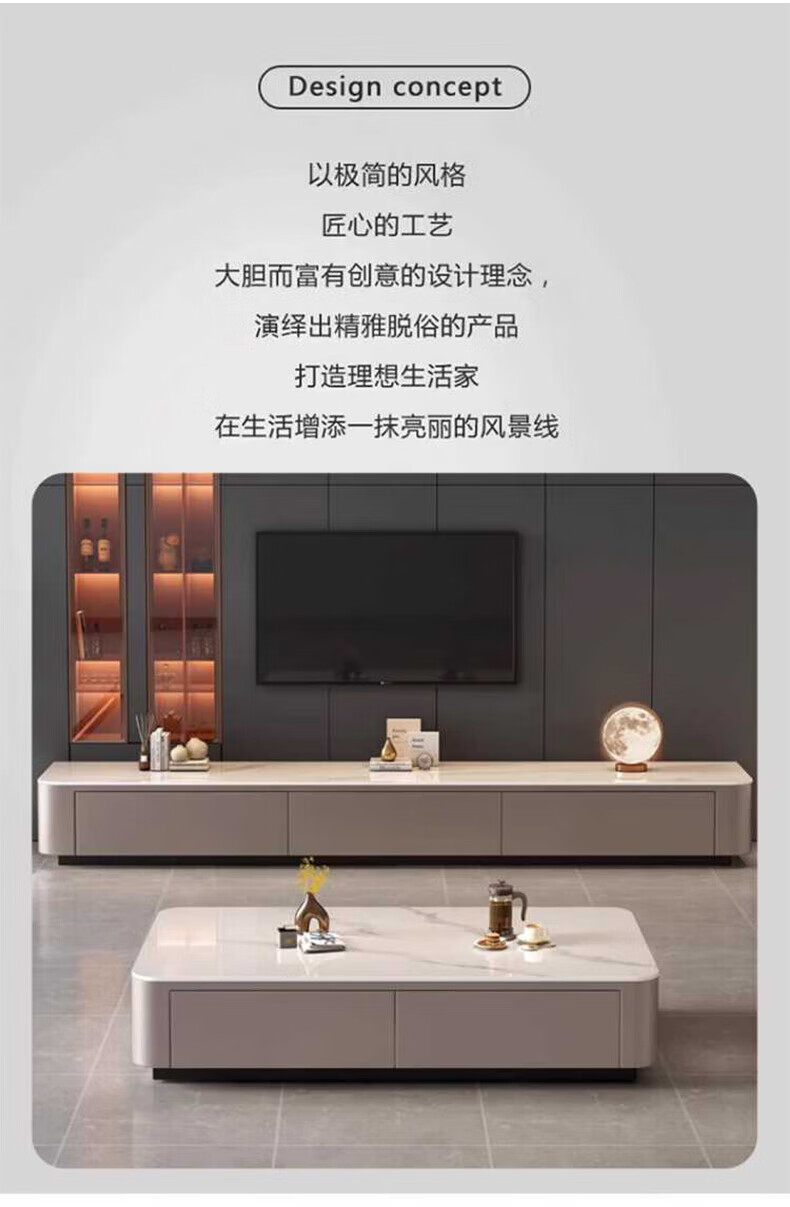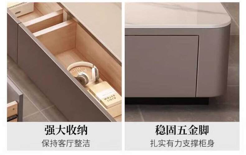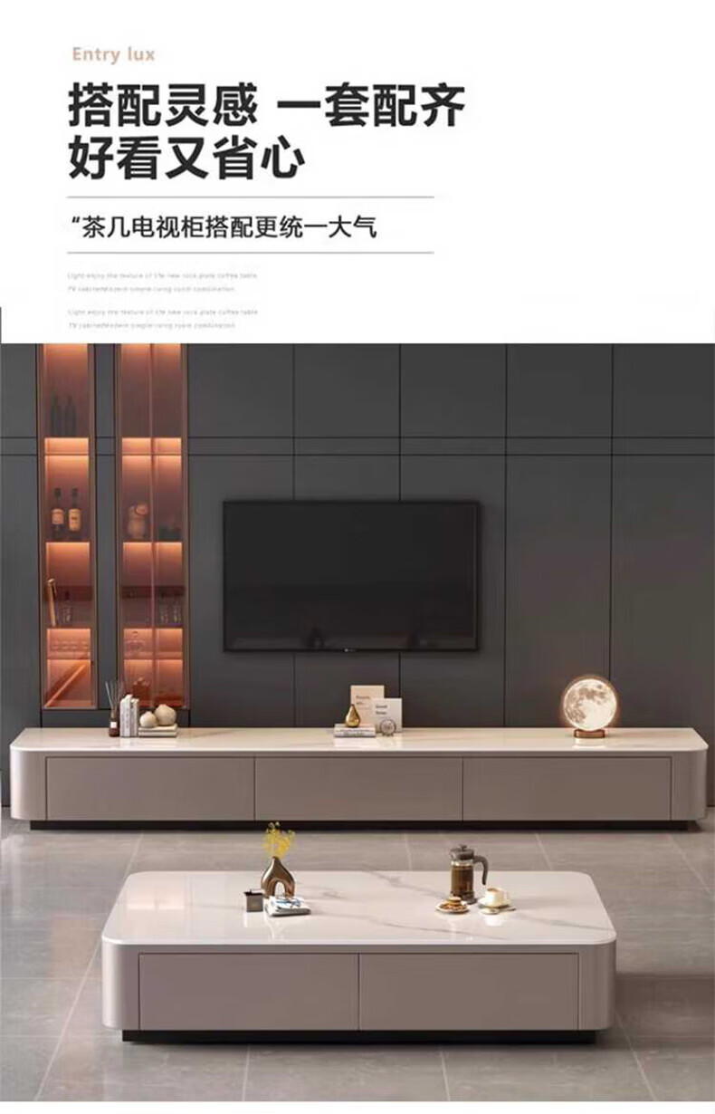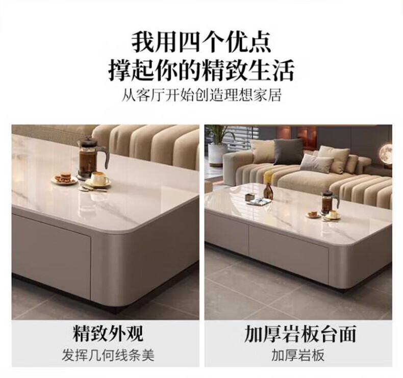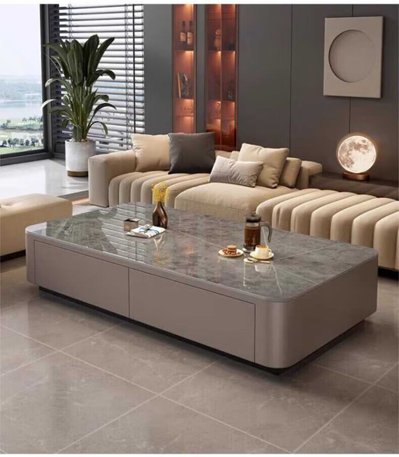 奥维伊琦现代简约岩板茶几客厅家用轻奢2025新款椭圆茶桌网红小户型茶几桌 【100*50】雪山白+PU白软包柜