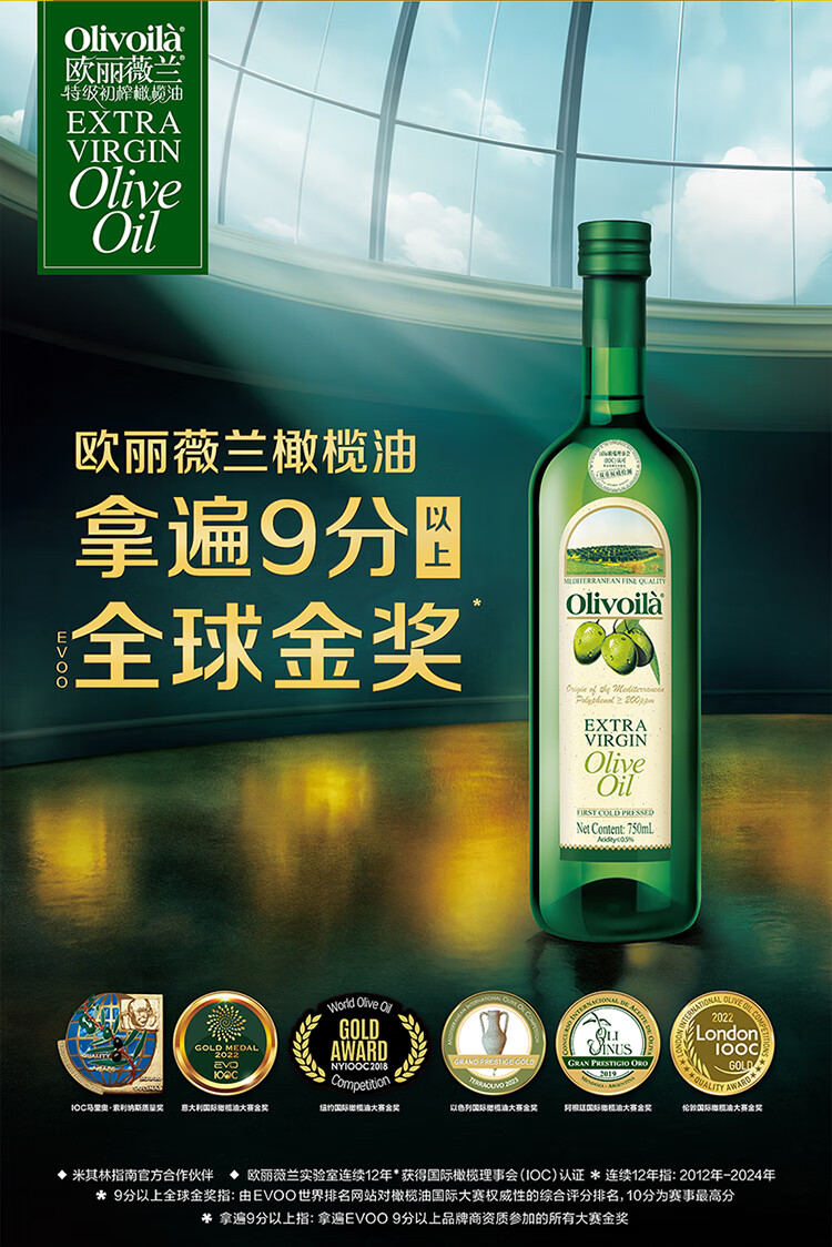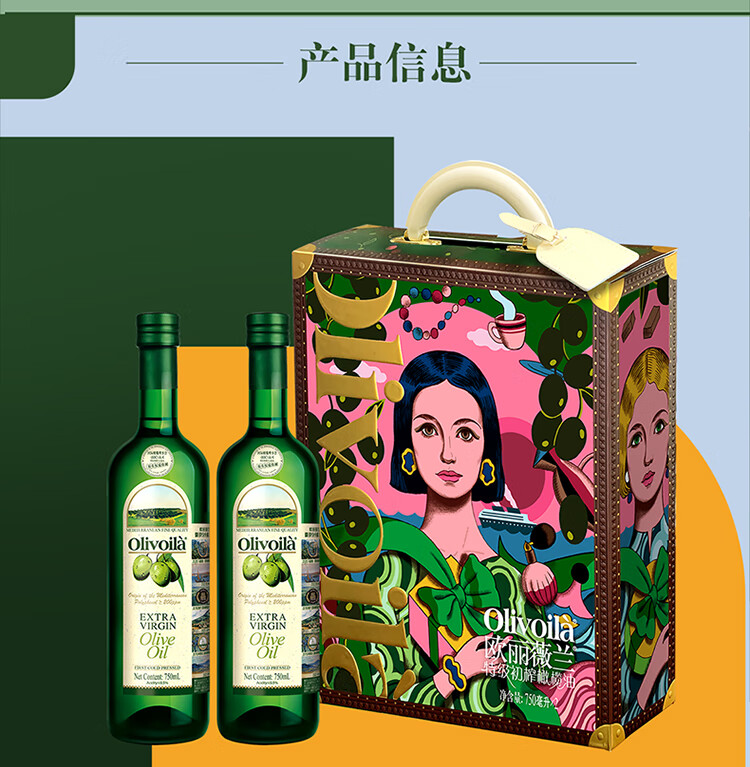 欧丽薇兰Olivoila 食用油 保真 特级初榨橄榄油 750ml*2瓶精选年货礼盒