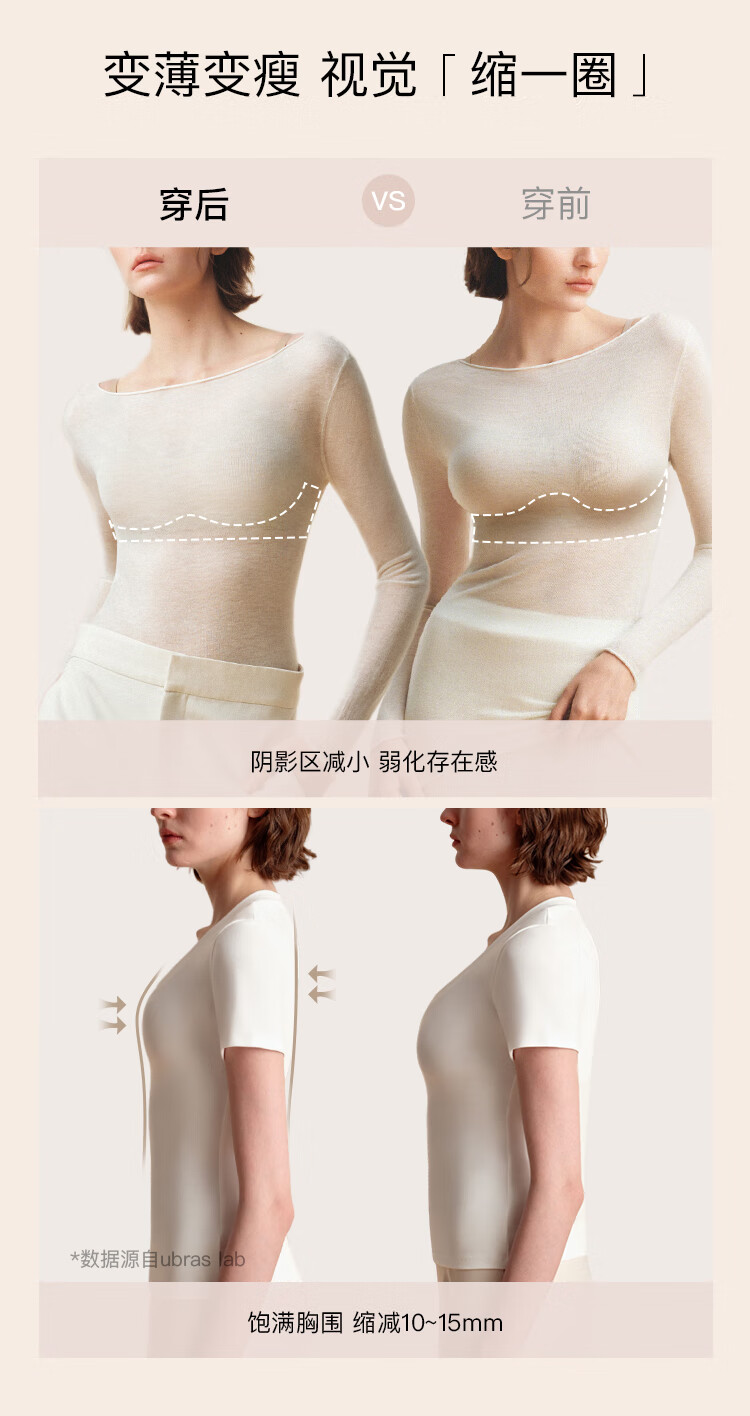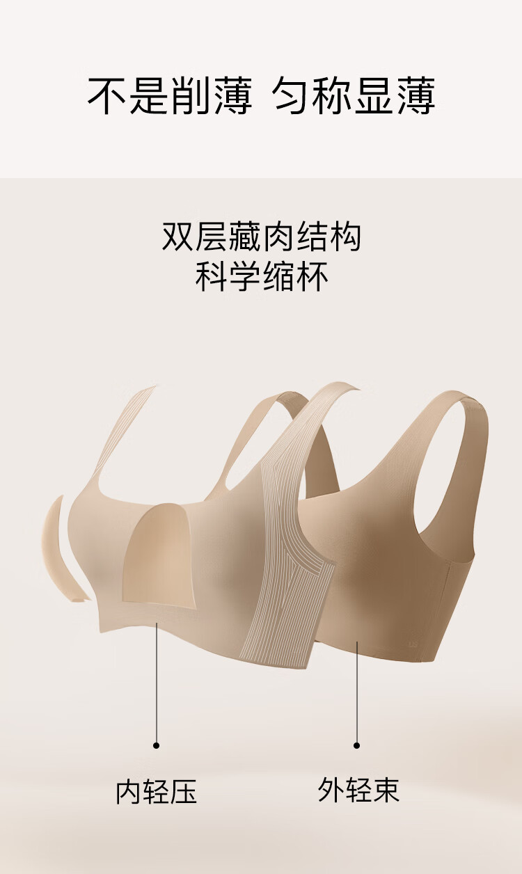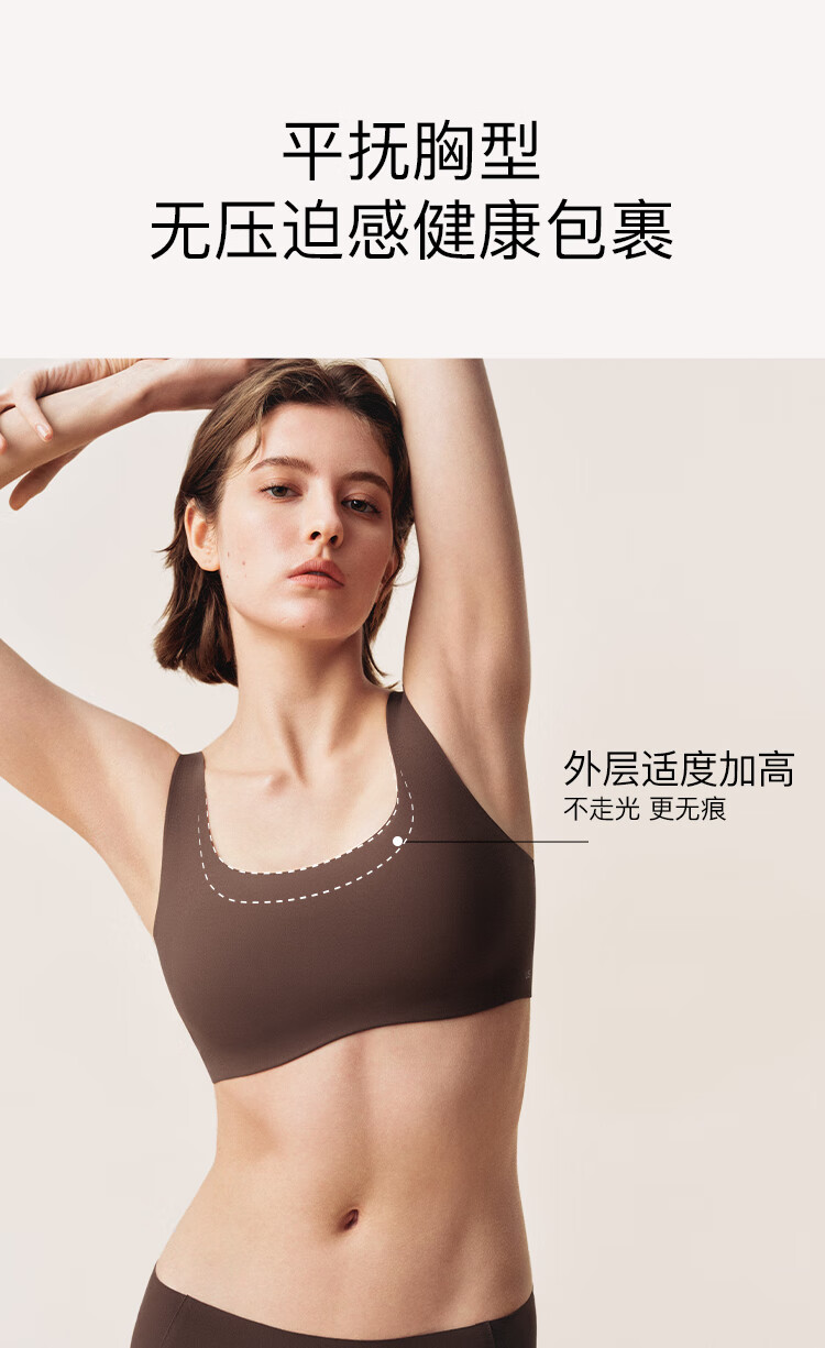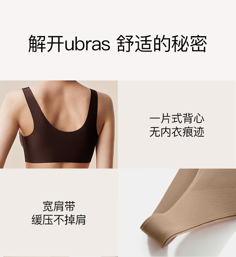 ubras无尺码小奶皮纸片人内衣显瘦显薄无痕隐形背心文胸女黑标准版