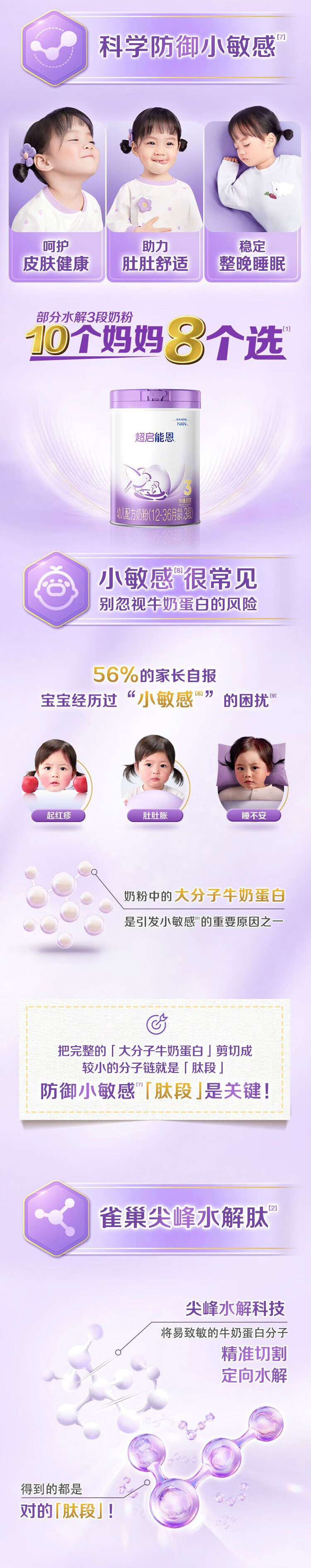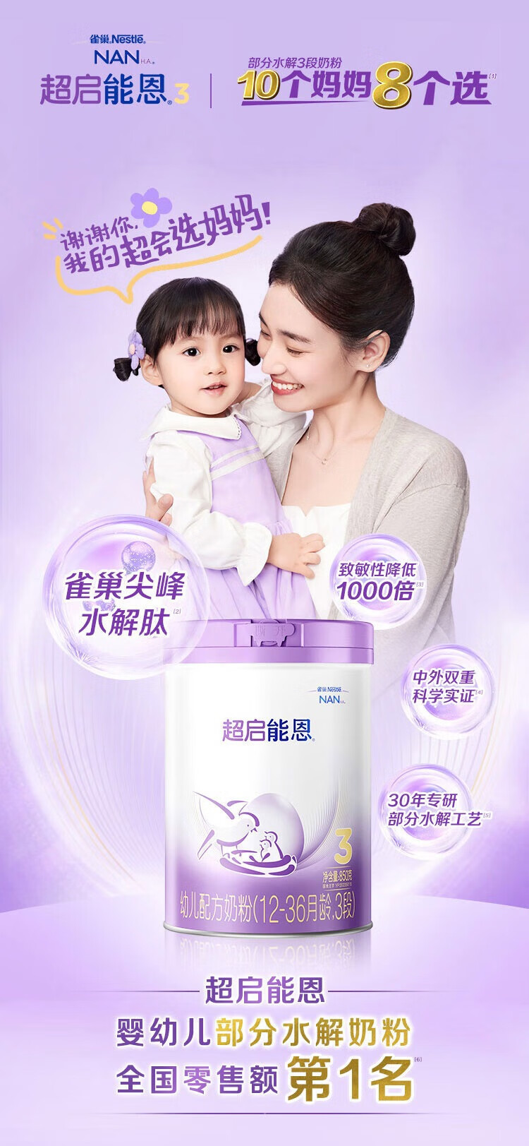 雀巢(Nestle)【超值加量】 超启能恩3段 适度水解配方奶粉 3倍DHA 12-36月850g