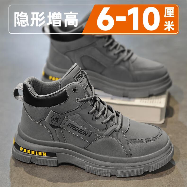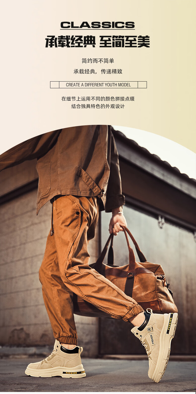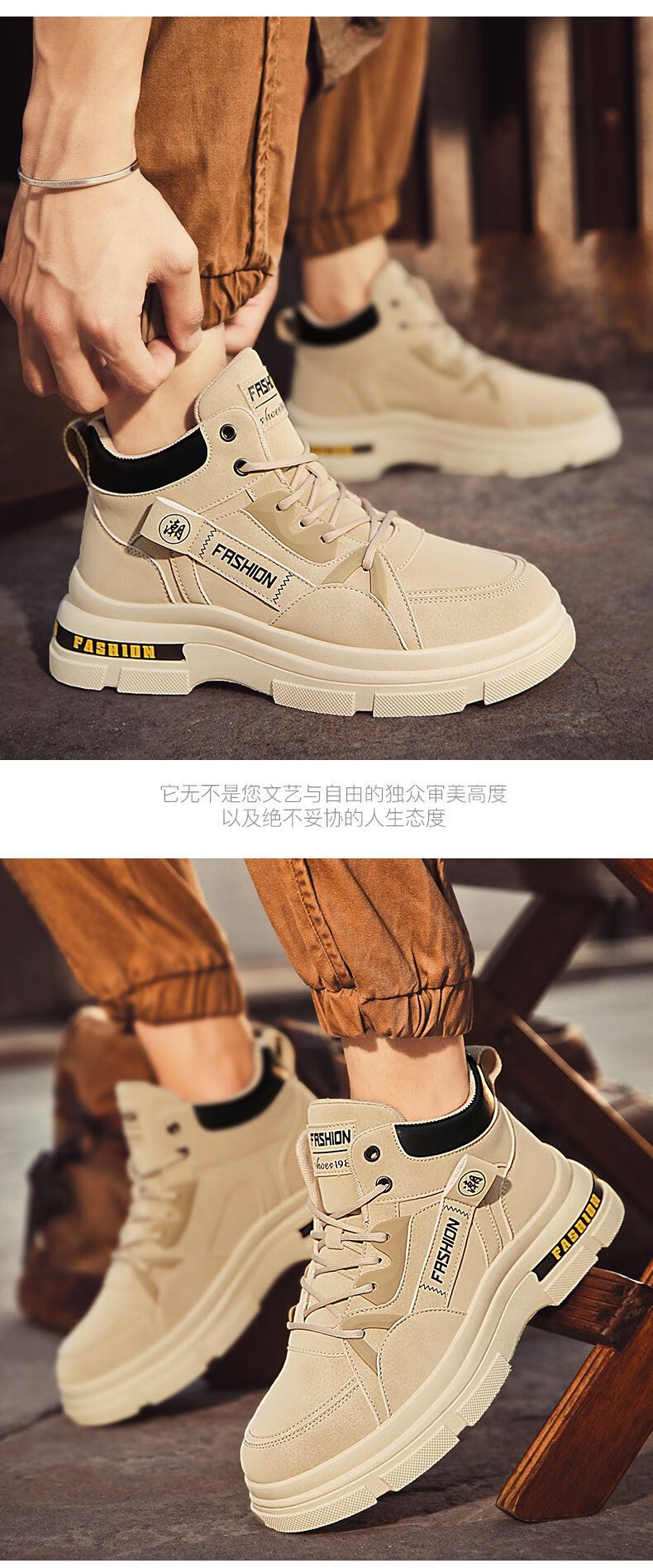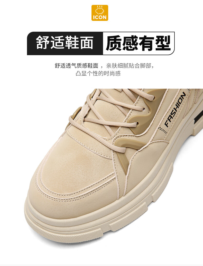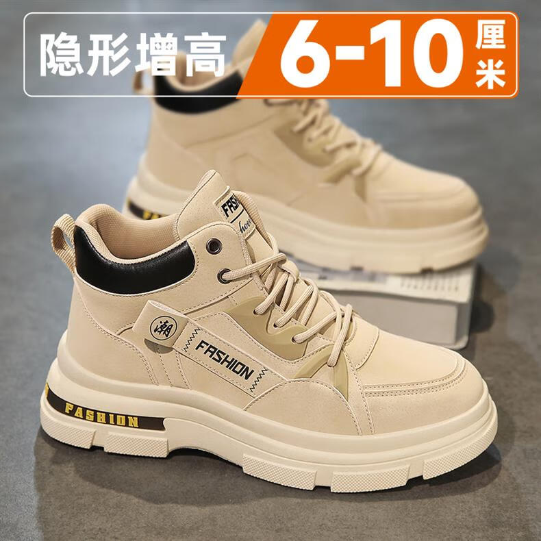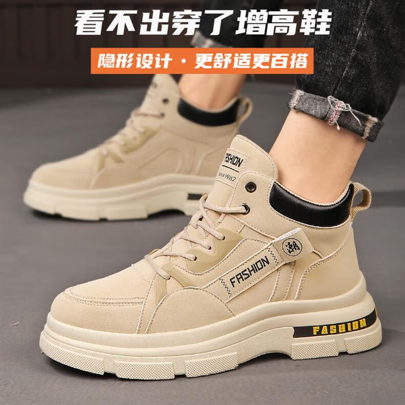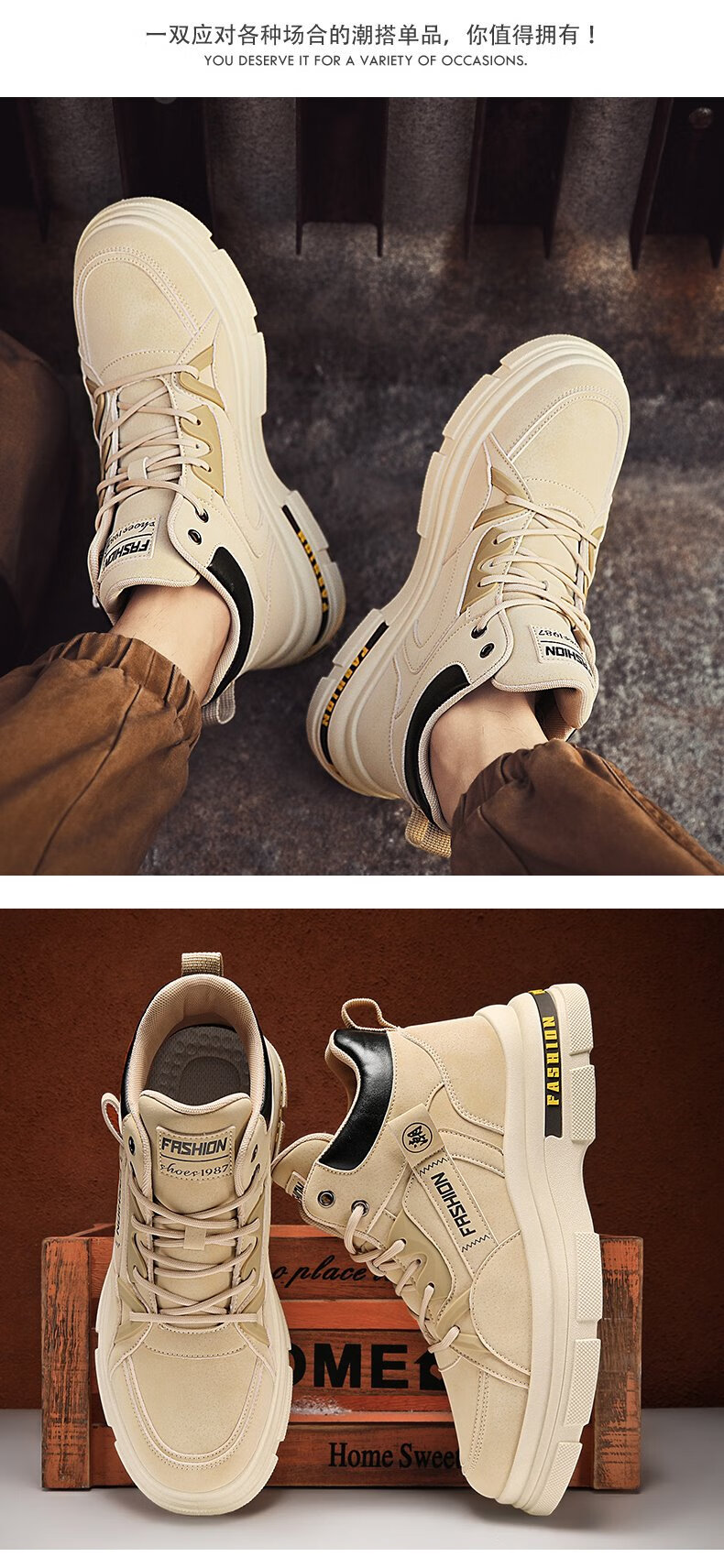 卡帝乐鳄鱼厚底马丁靴男隐形内增高男鞋10cm春季2026新款潮流运动休闲工装鞋 卡其【隐形内增高10cm】 39