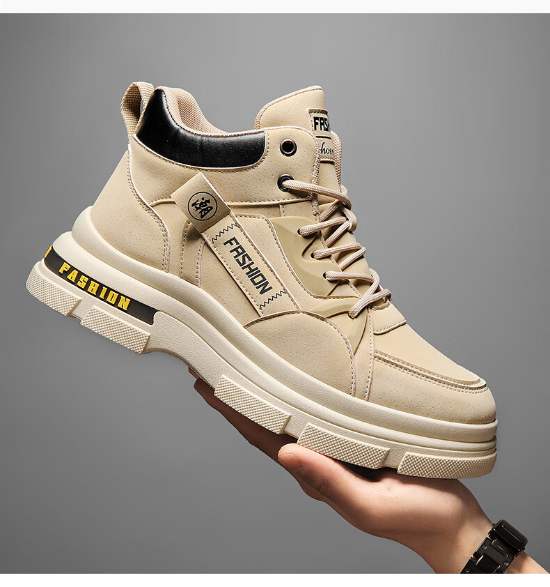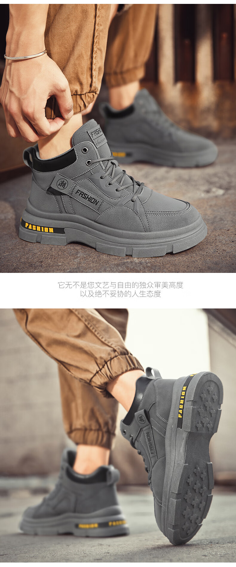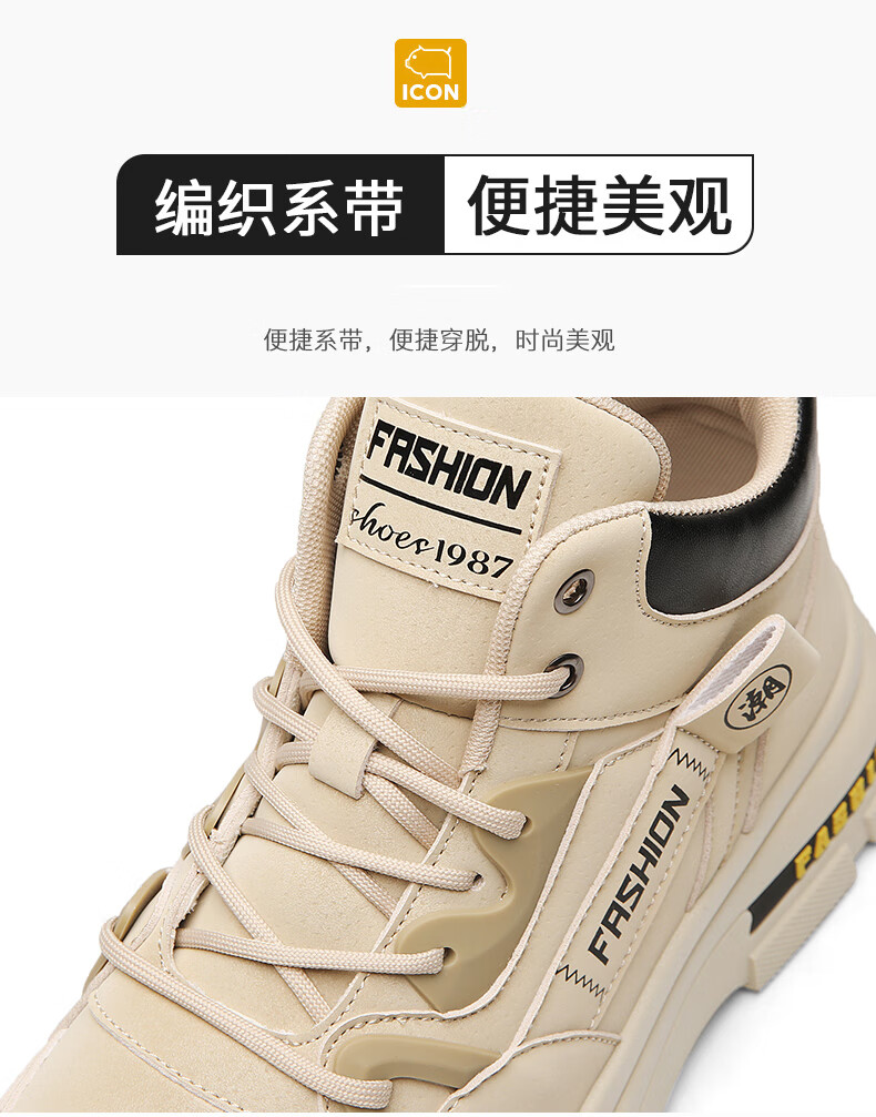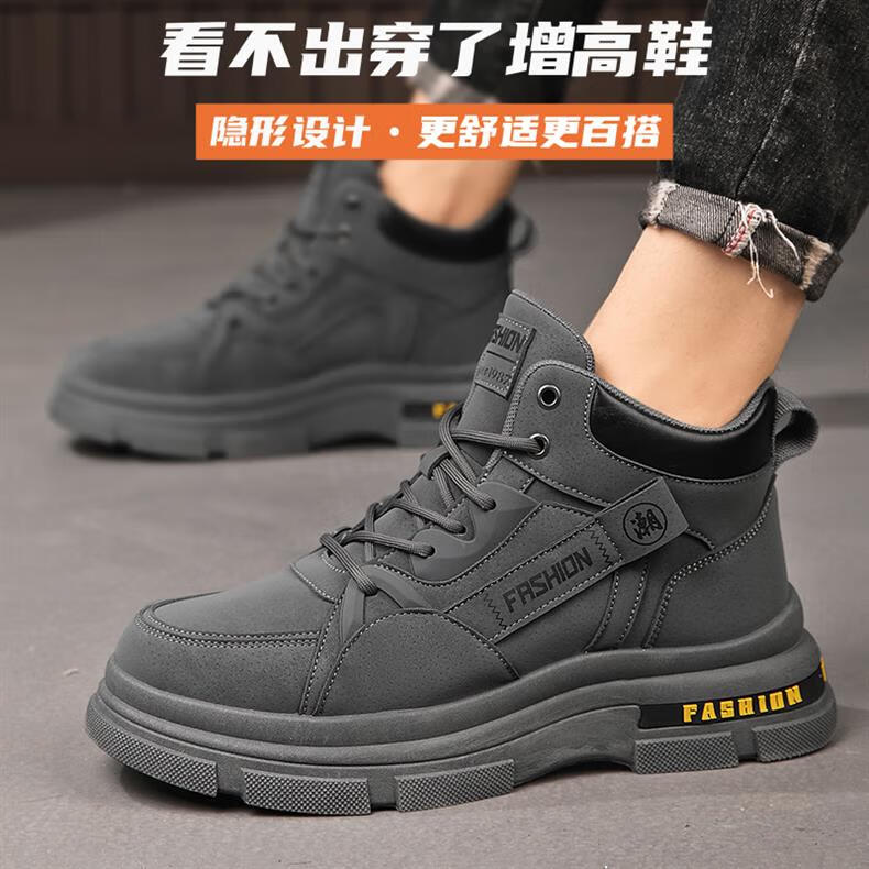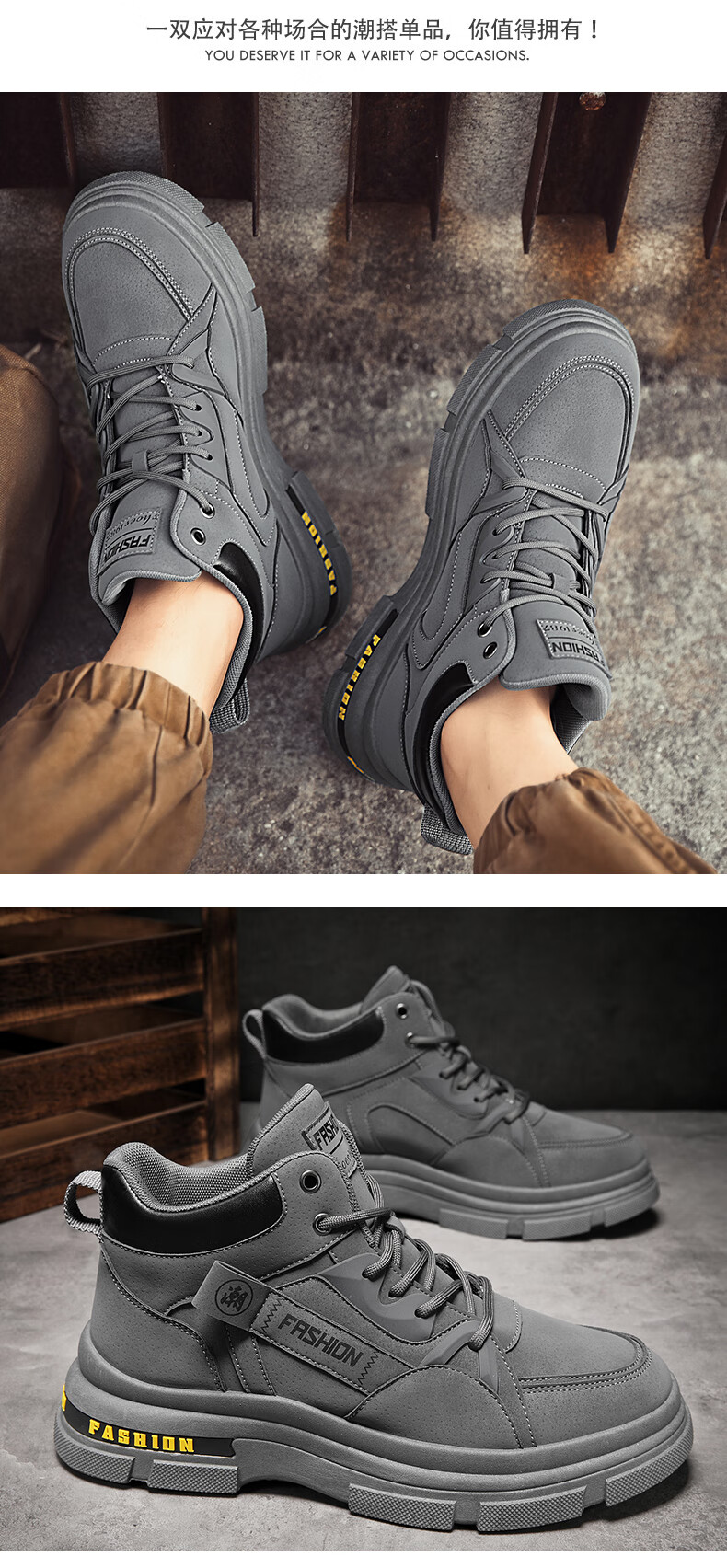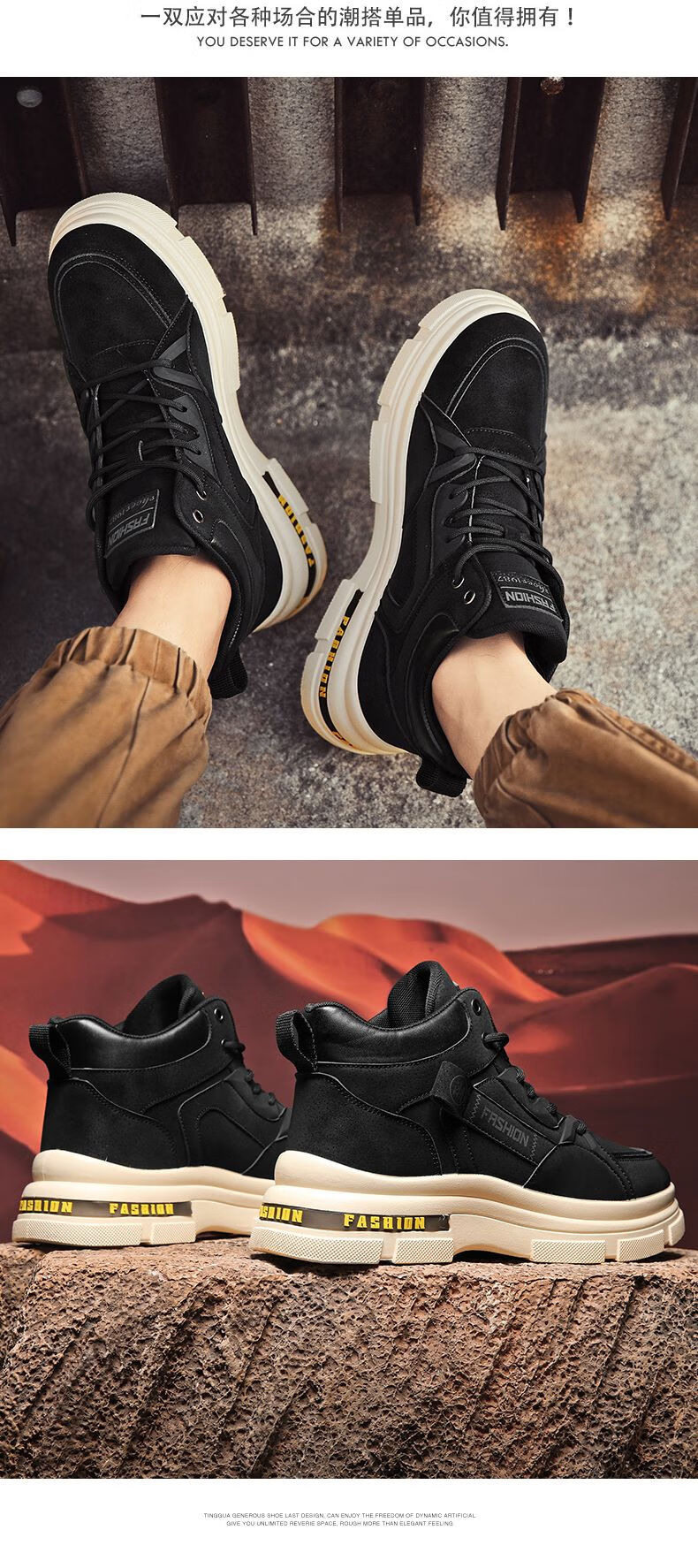 卡帝乐鳄鱼厚底马丁靴男隐形内增高男鞋10cm春季2026新款潮流运动休闲工装鞋 卡其【隐形内增高10cm】 39