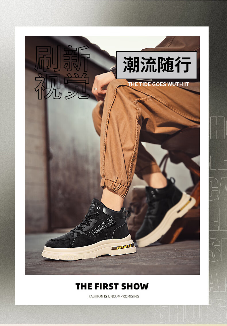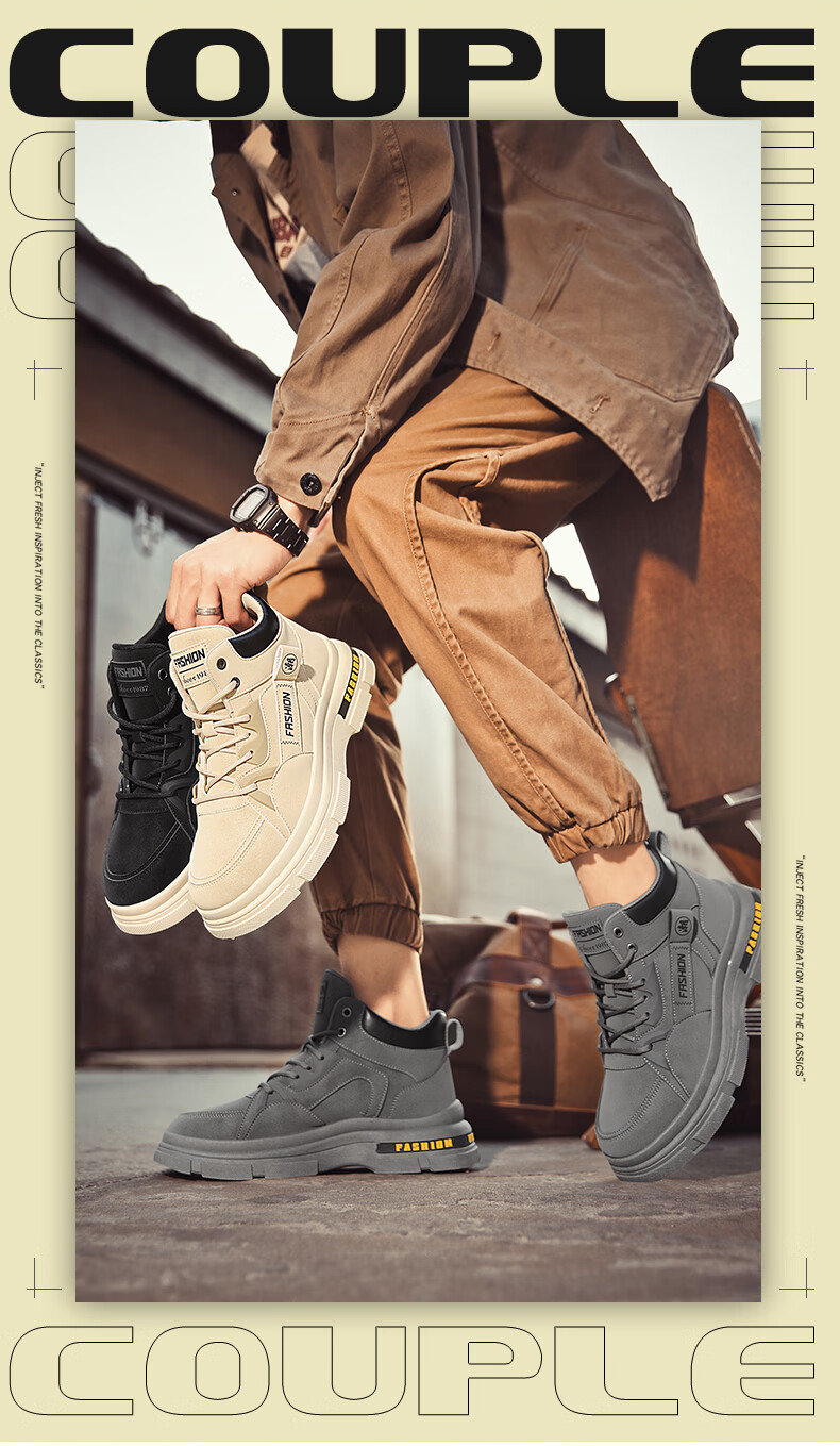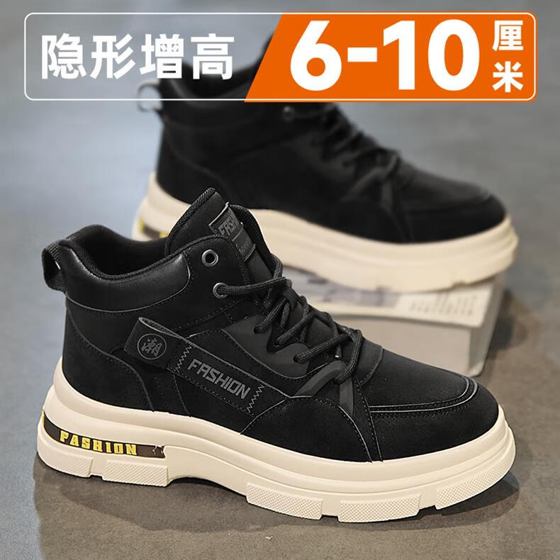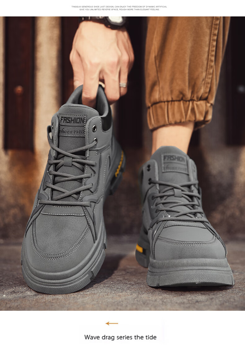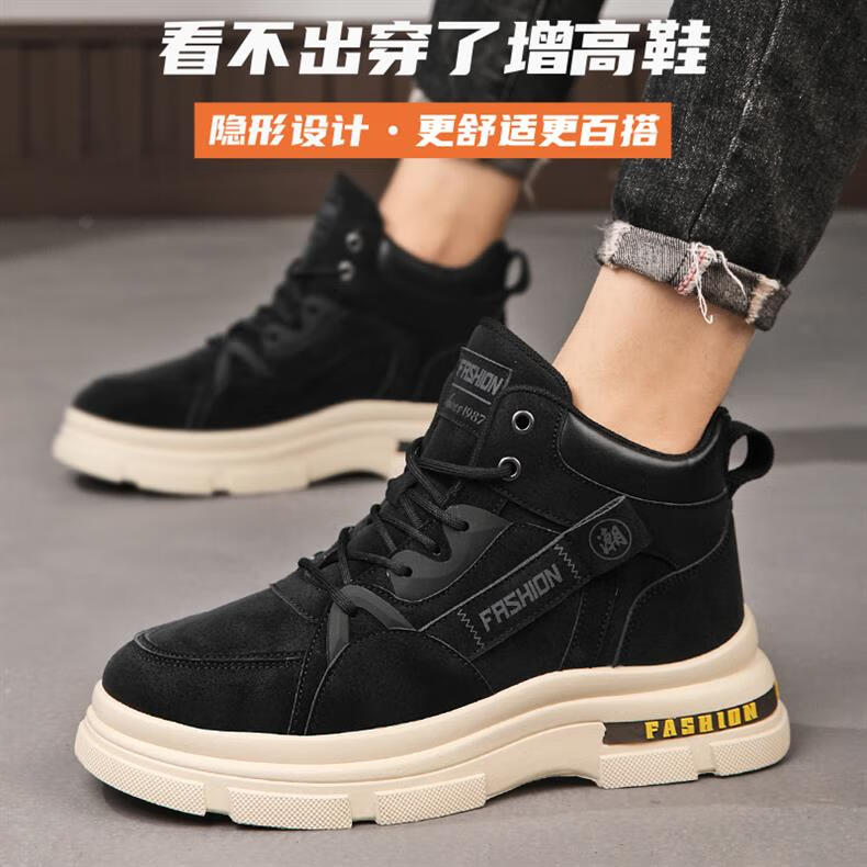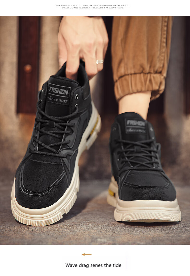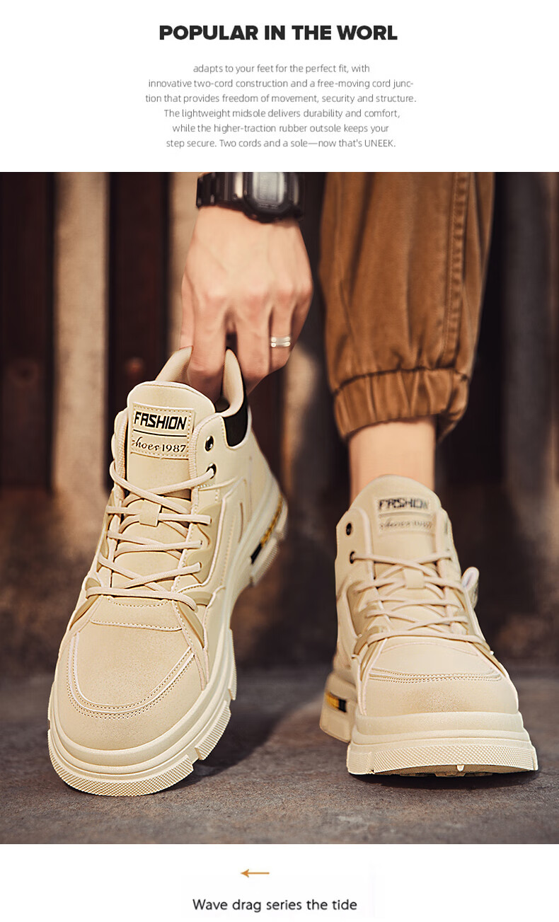 卡帝乐鳄鱼厚底马丁靴男隐形内增高男鞋10cm春季2026新款潮流运动休闲工装鞋 卡其【隐形内增高10cm】 39