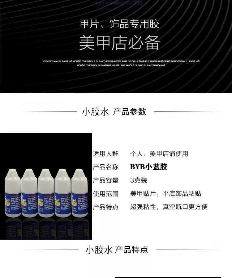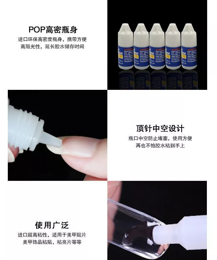 【实用】美甲店专用套装贴指甲片粘钻饰品胶水牢固免烤持久速干胶 1件 美甲胶水【3瓶】