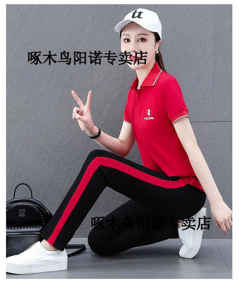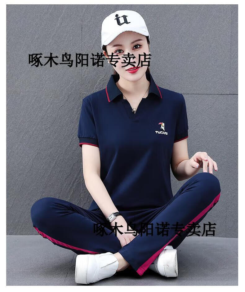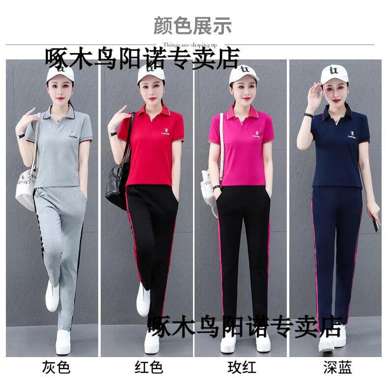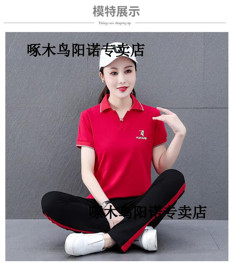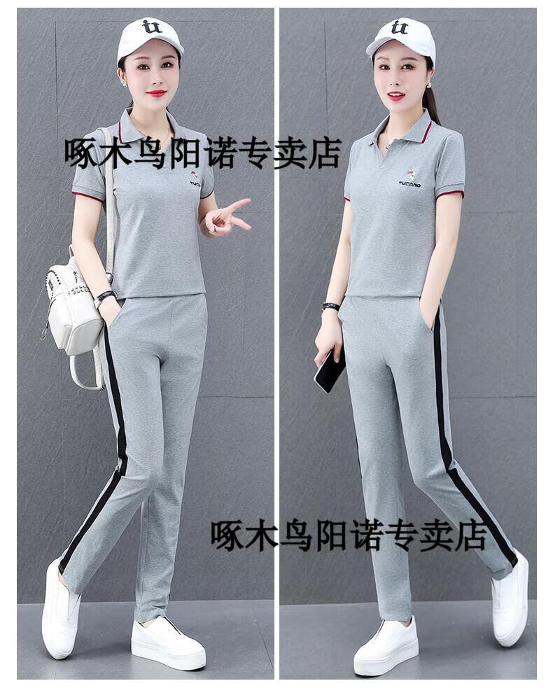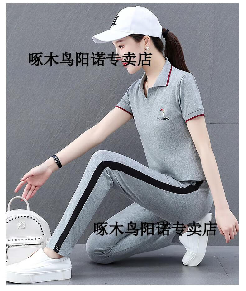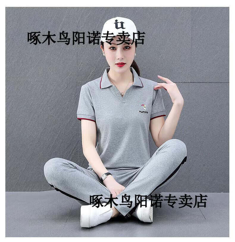 啄木鸟运动套装女纯棉2025年夏季新款时尚休闲显瘦团购POLO领两件套 GLF8926灰色 M(100斤以内)