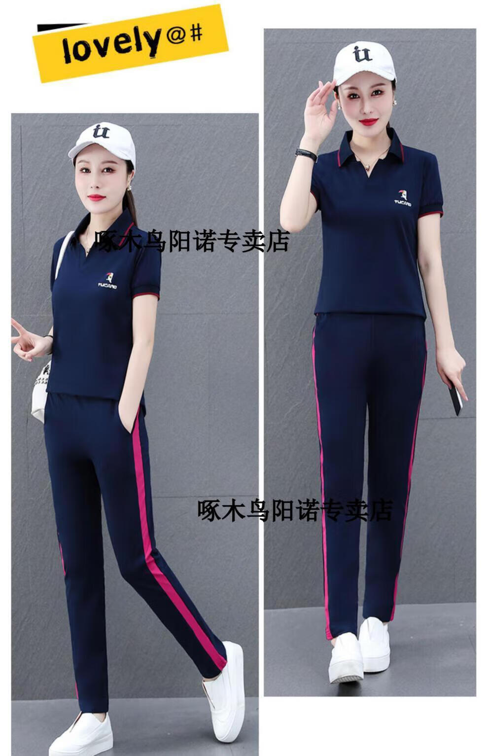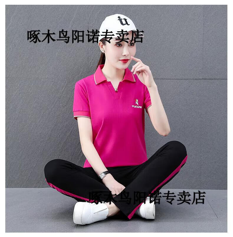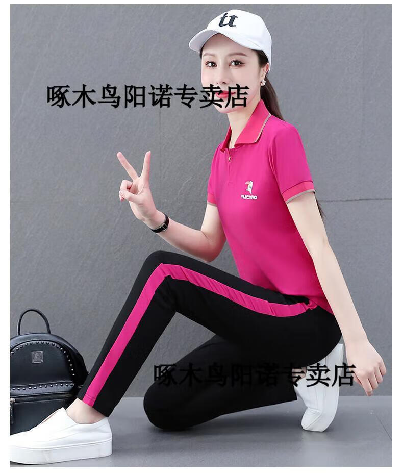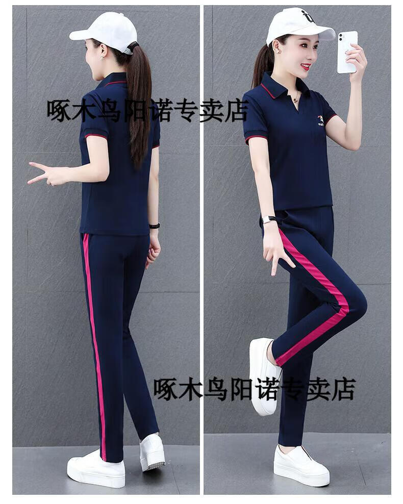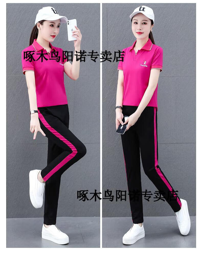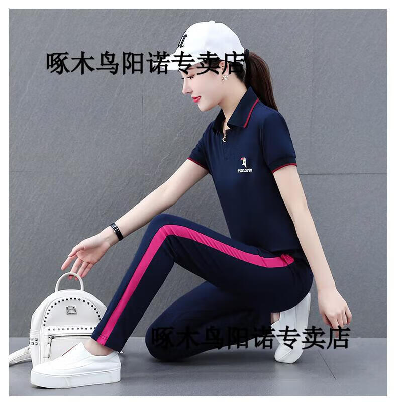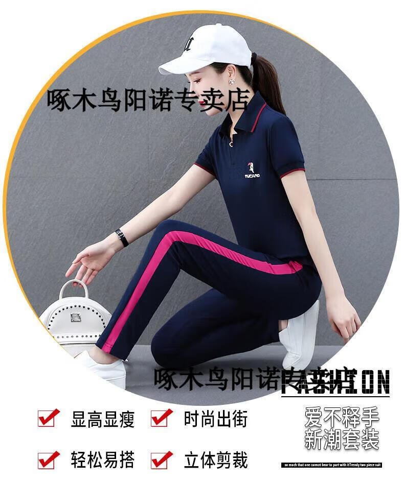 啄木鸟运动套装女纯棉2025年夏季新款时尚休闲显瘦团购POLO领两件套 GLF8926灰色 M(100斤以内)