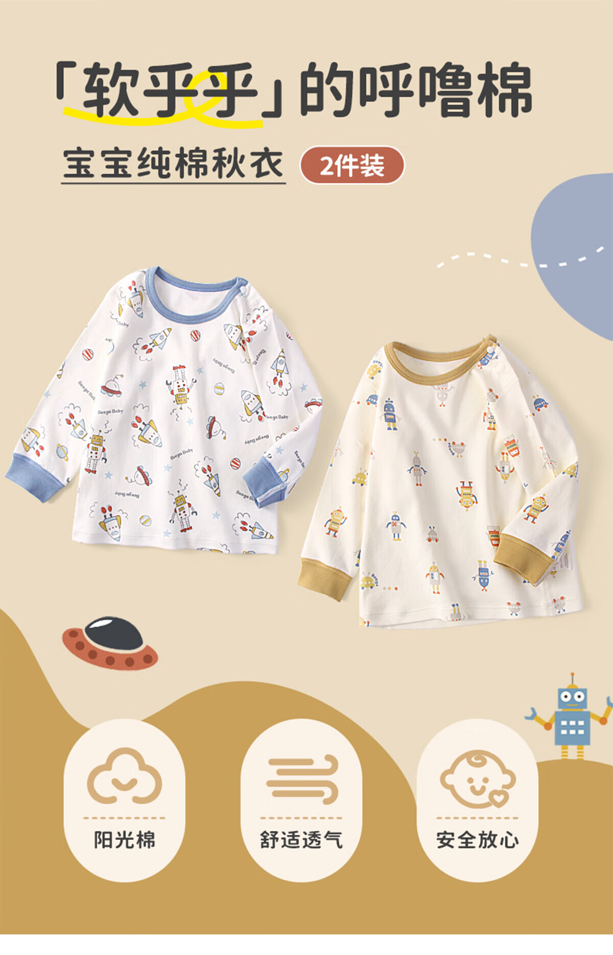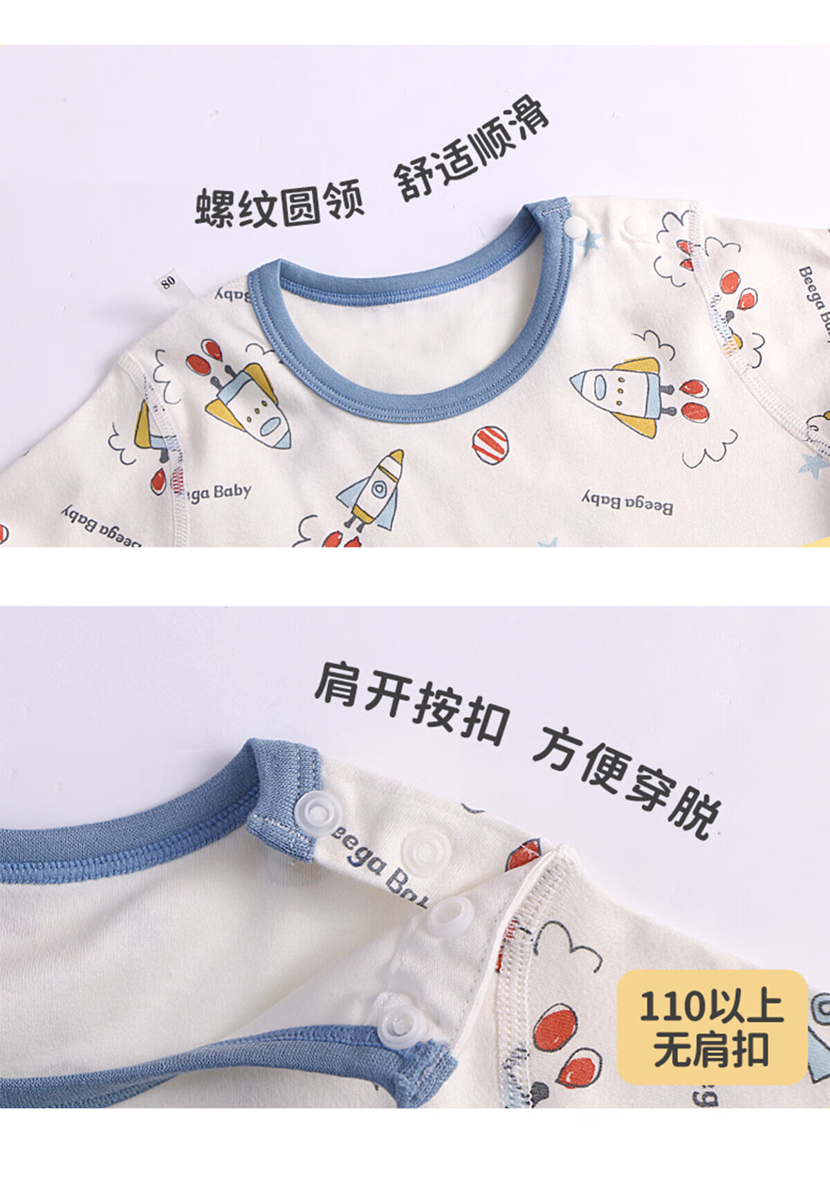 小狗比格(2件装)儿童秋衣纯棉春秋男童上衣女宝宝全棉打底无骨圆领衣 D组-小王子-1502 100