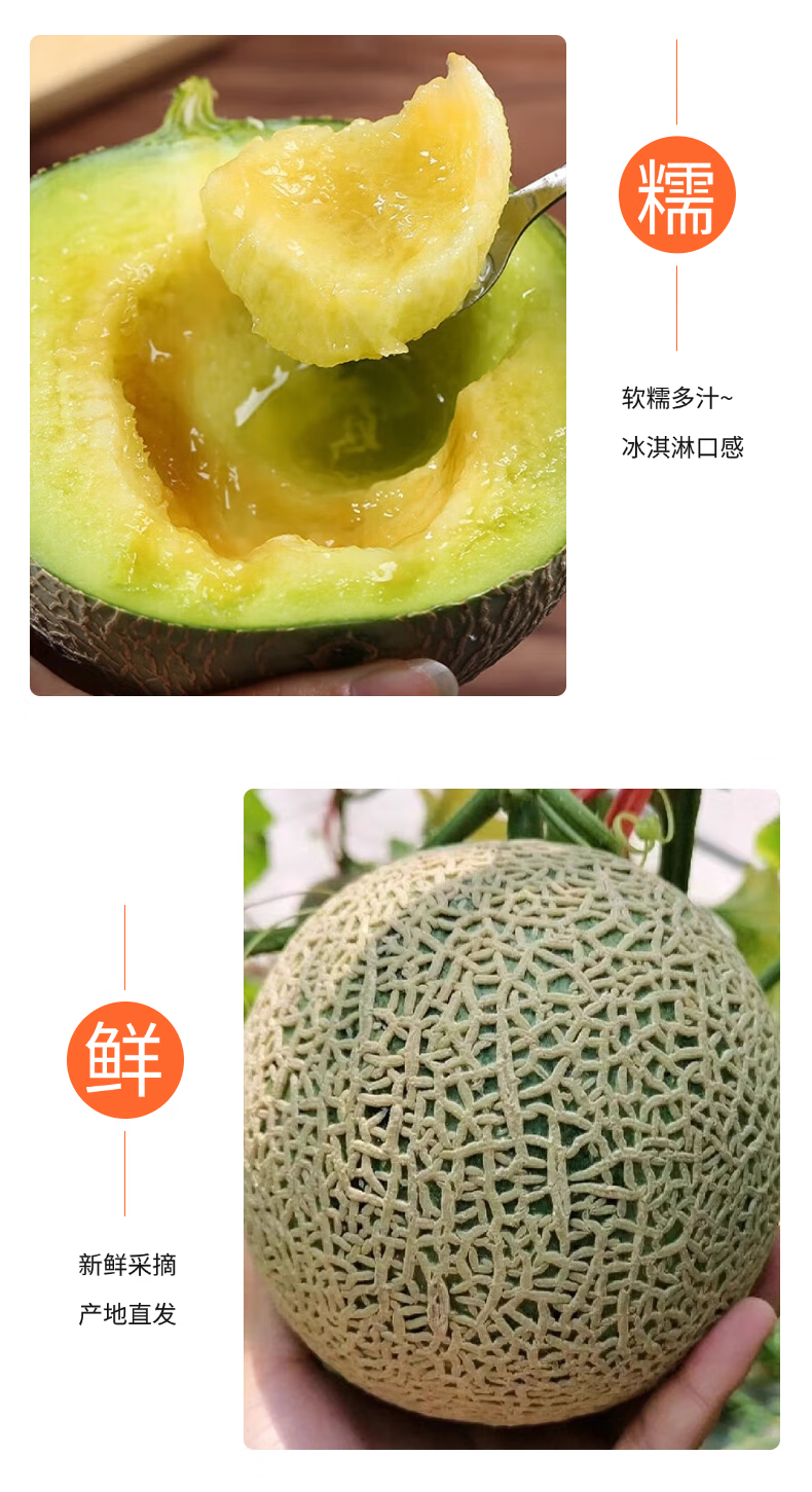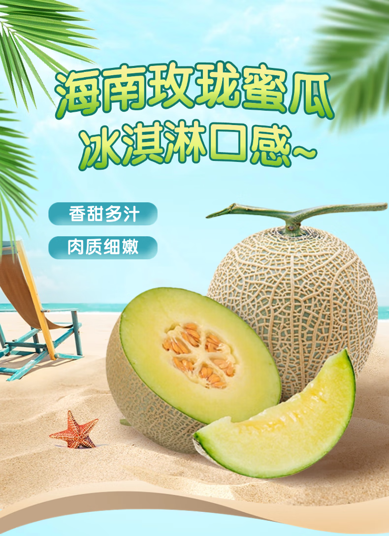 海南玫珑瓜冰淇淋哈密瓜网纹瓜新鲜水果当季甜营养 核心产区直发 4.5-5斤网纹瓜【2-4个】