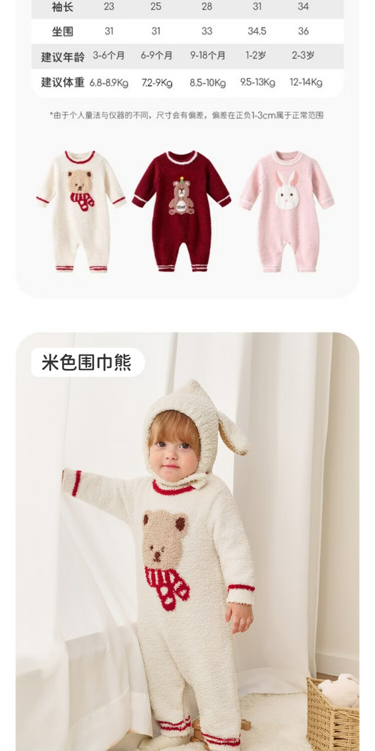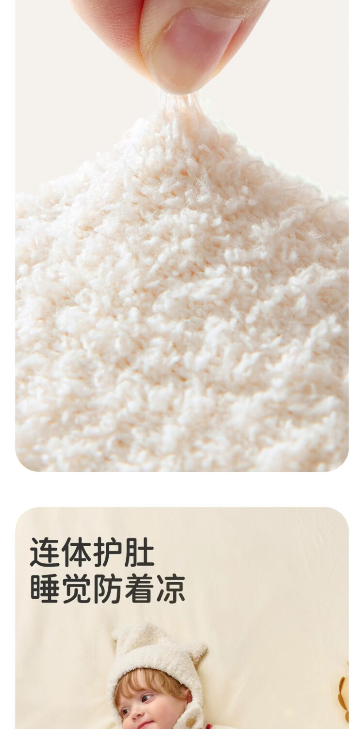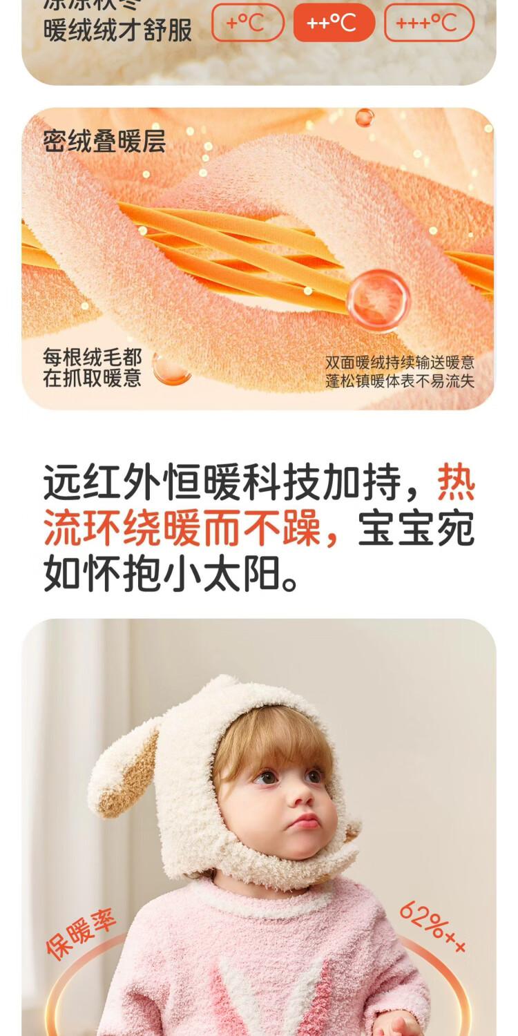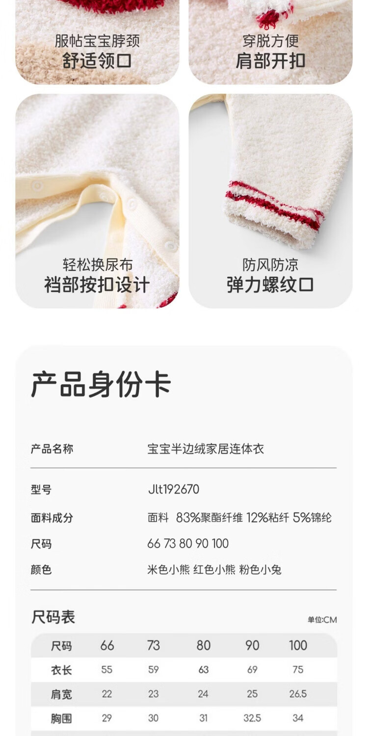 婧麒婴儿连体衣半边绒加绒保暖宝宝衣服男女哈衣外出家居爬服秋冬 粉色小兔+白色帽子 (48-50厘米) 73cm