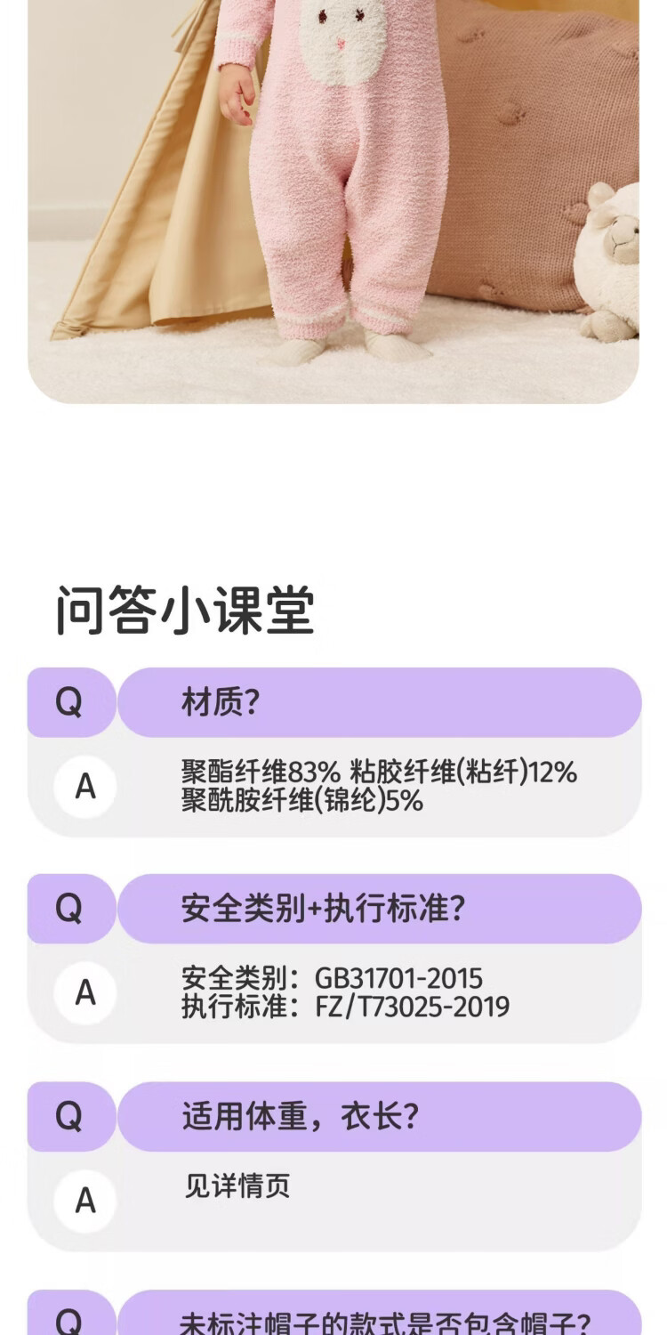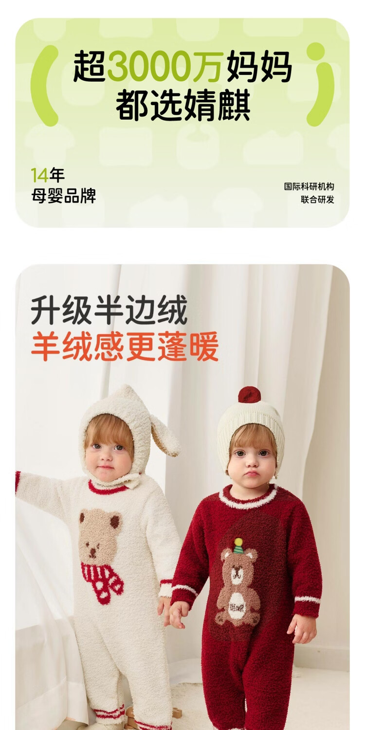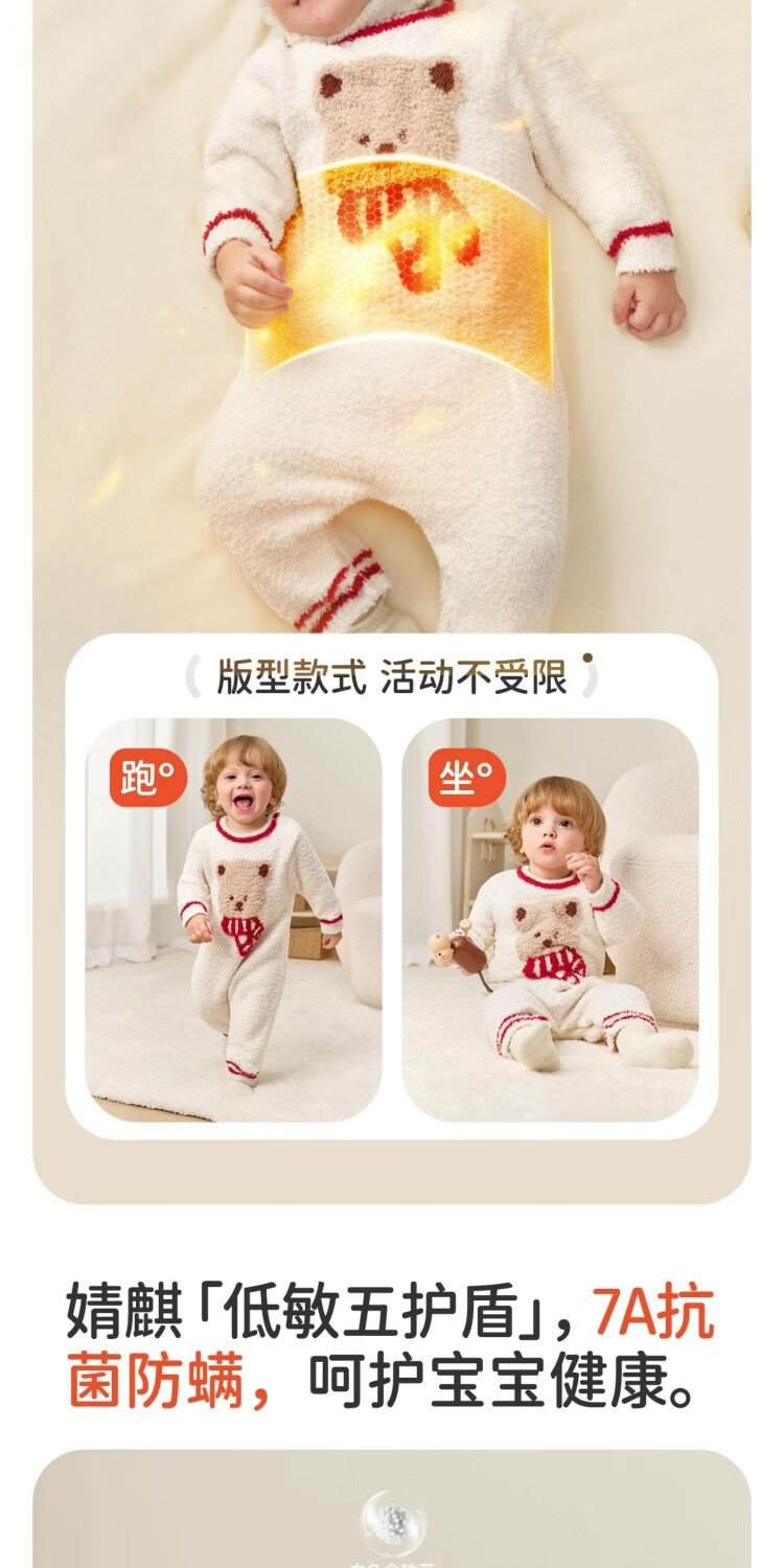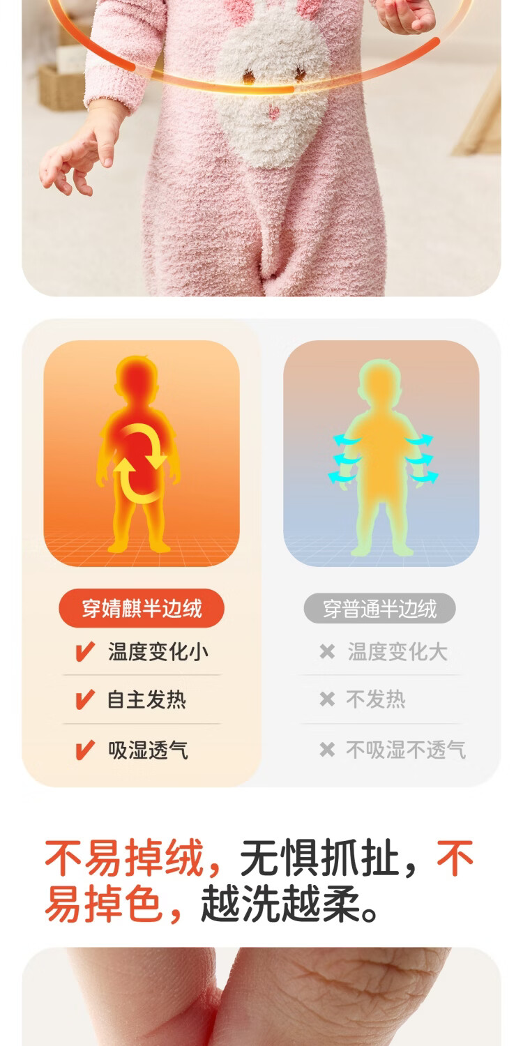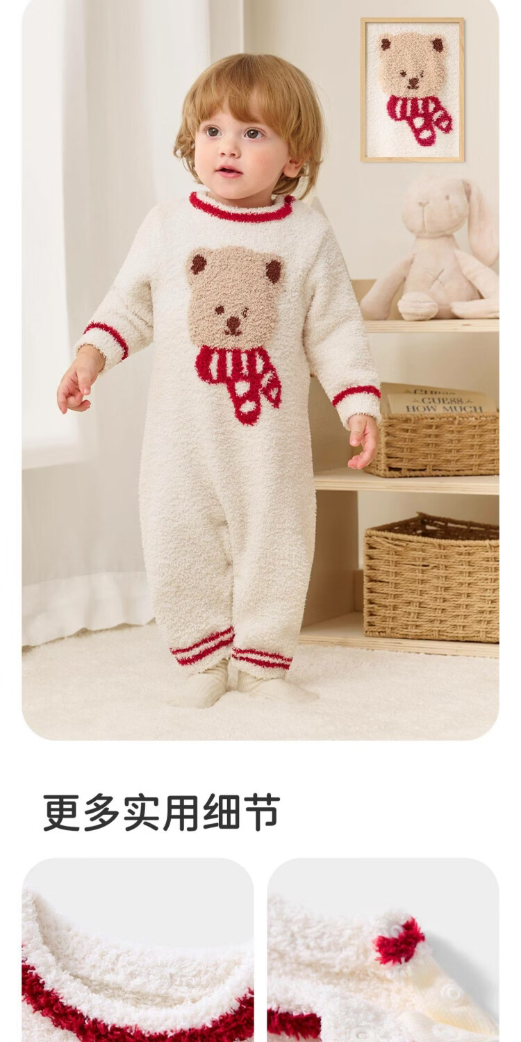 婧麒婴儿连体衣半边绒加绒保暖宝宝衣服男女哈衣外出家居爬服秋冬 粉色小兔+白色帽子 (48-50厘米) 73cm