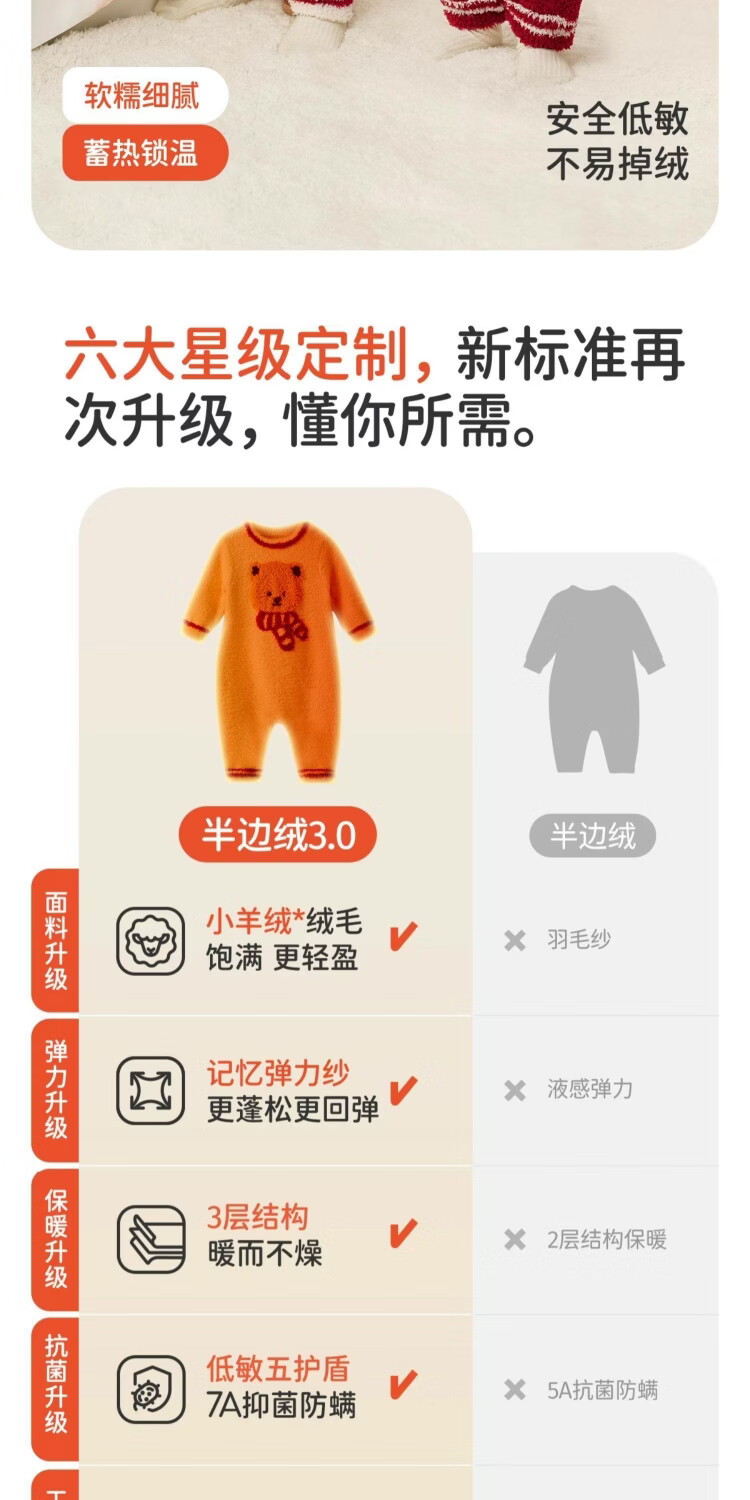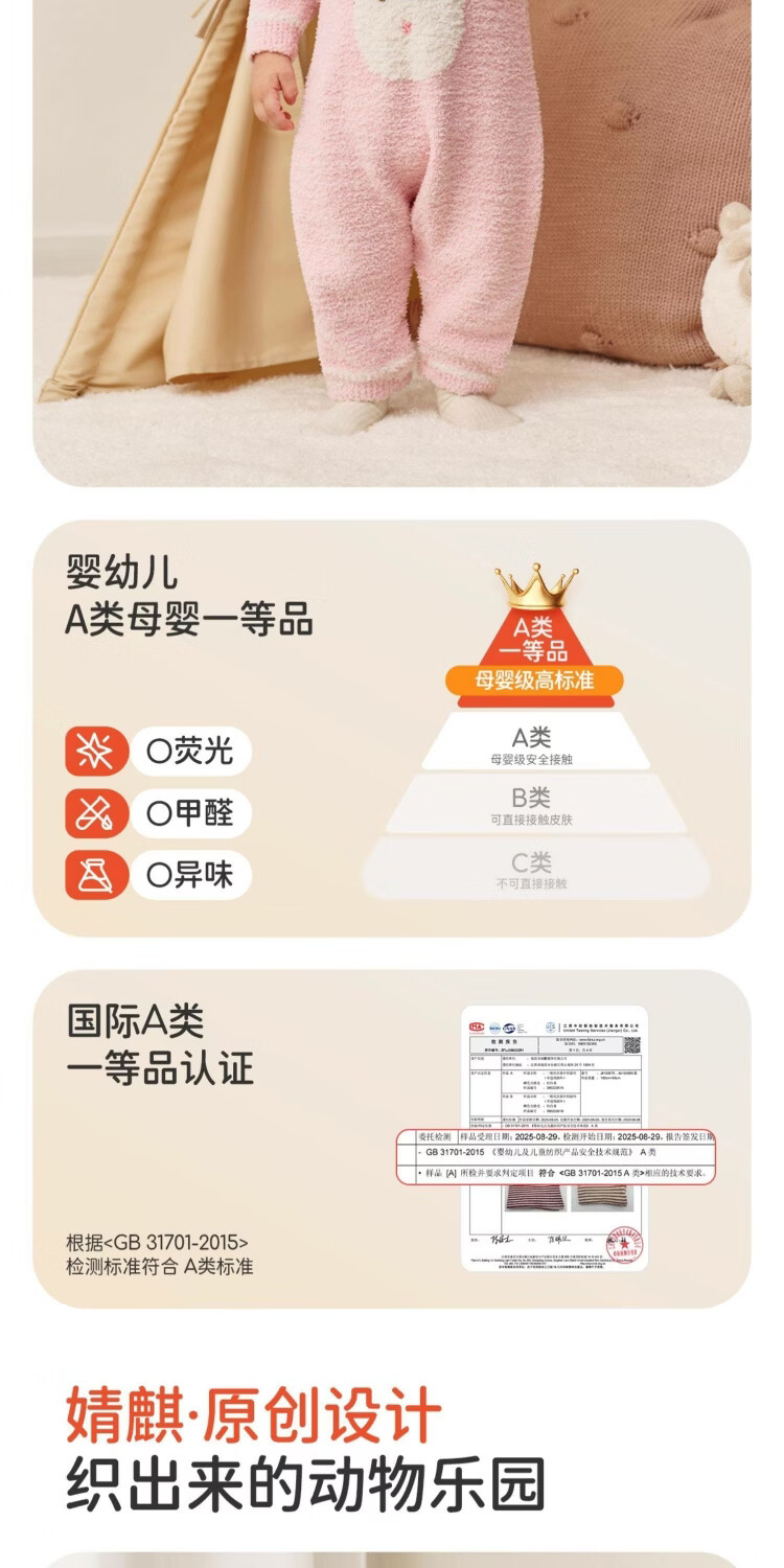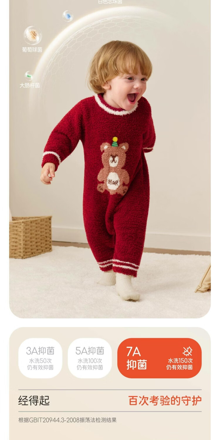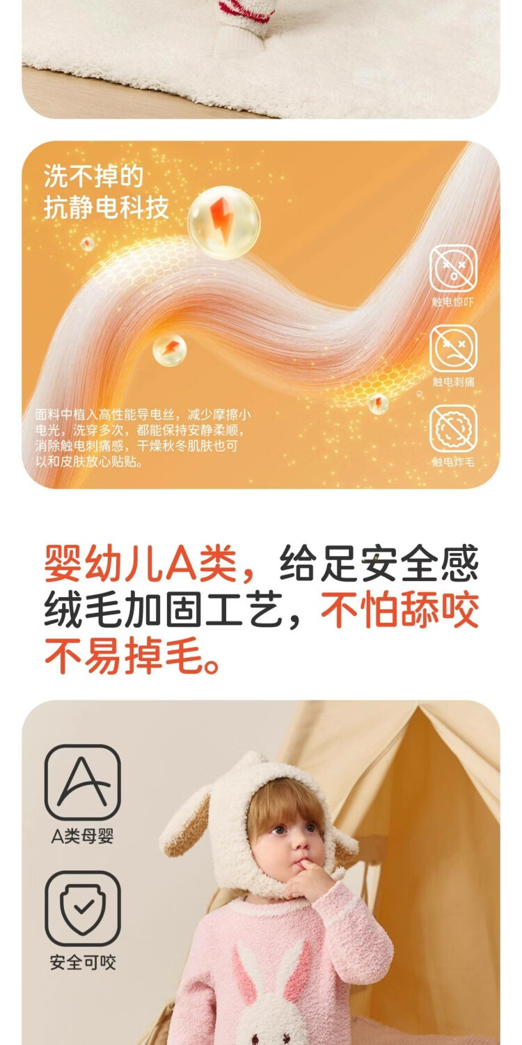 婧麒婴儿连体衣半边绒加绒保暖宝宝衣服男女哈衣外出家居爬服秋冬 粉色小兔+白色帽子 (48-50厘米) 73cm