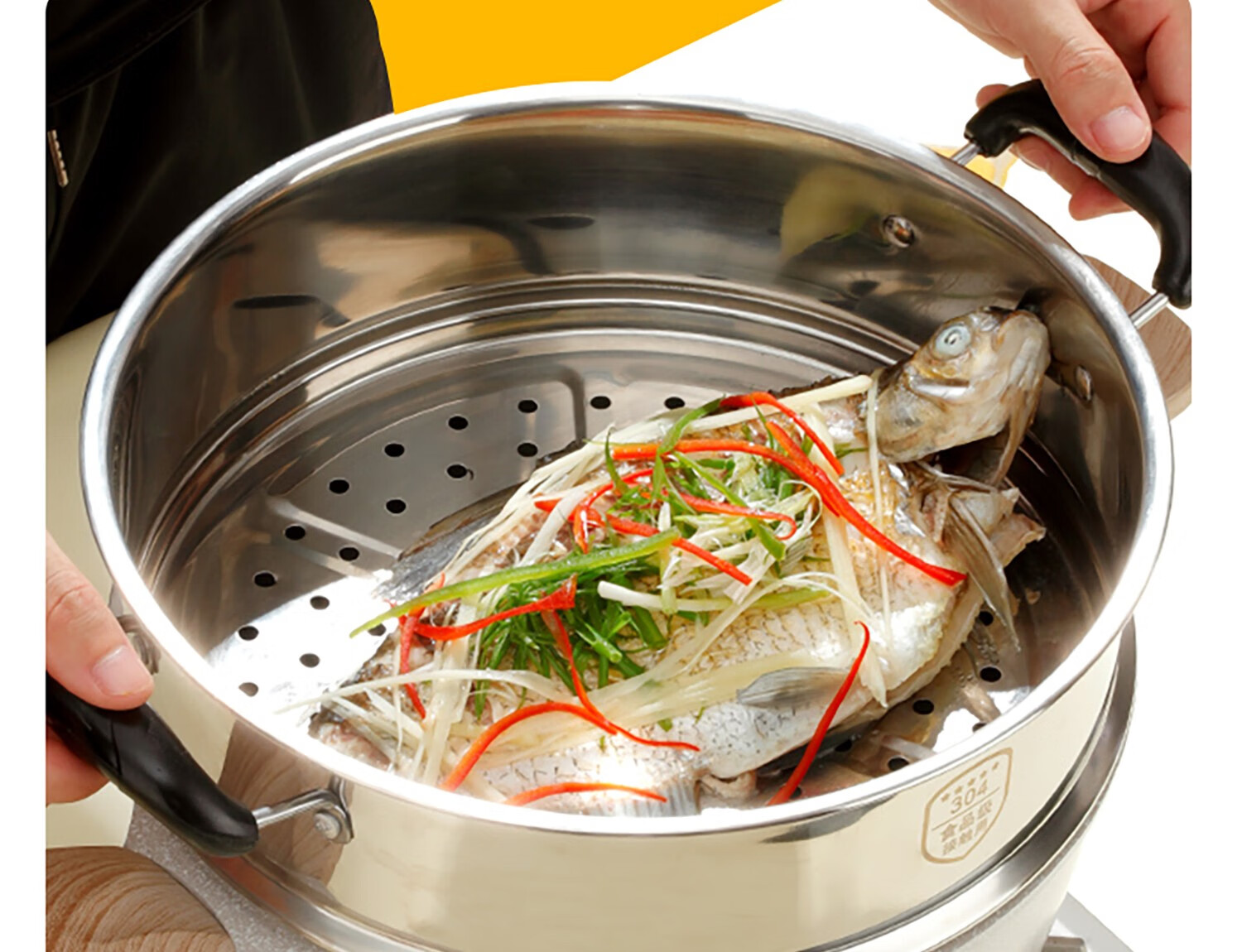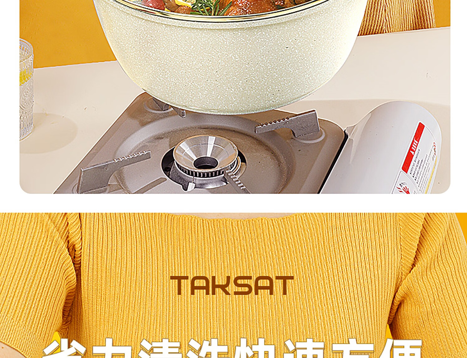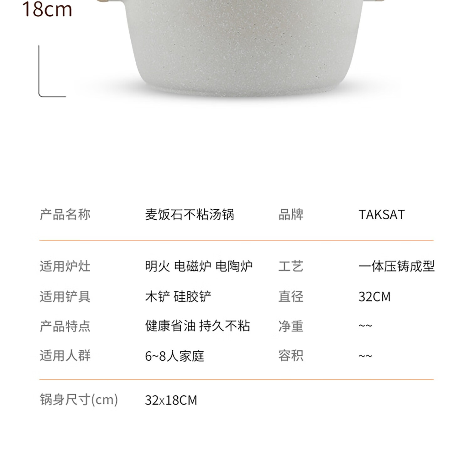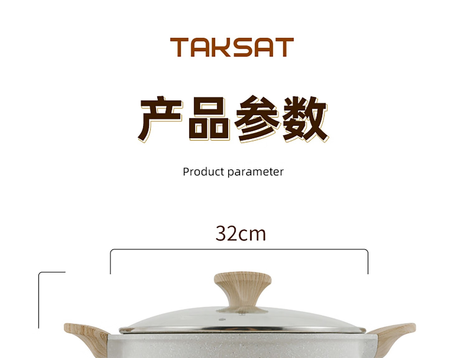 TAKSAT汤锅煮锅不粘锅炖煮锅烧水锅卤肉锅煮肉锅小汤锅燃气灶电磁炉通用 (6-8人适用)汤锅白+蒸笼 32cm