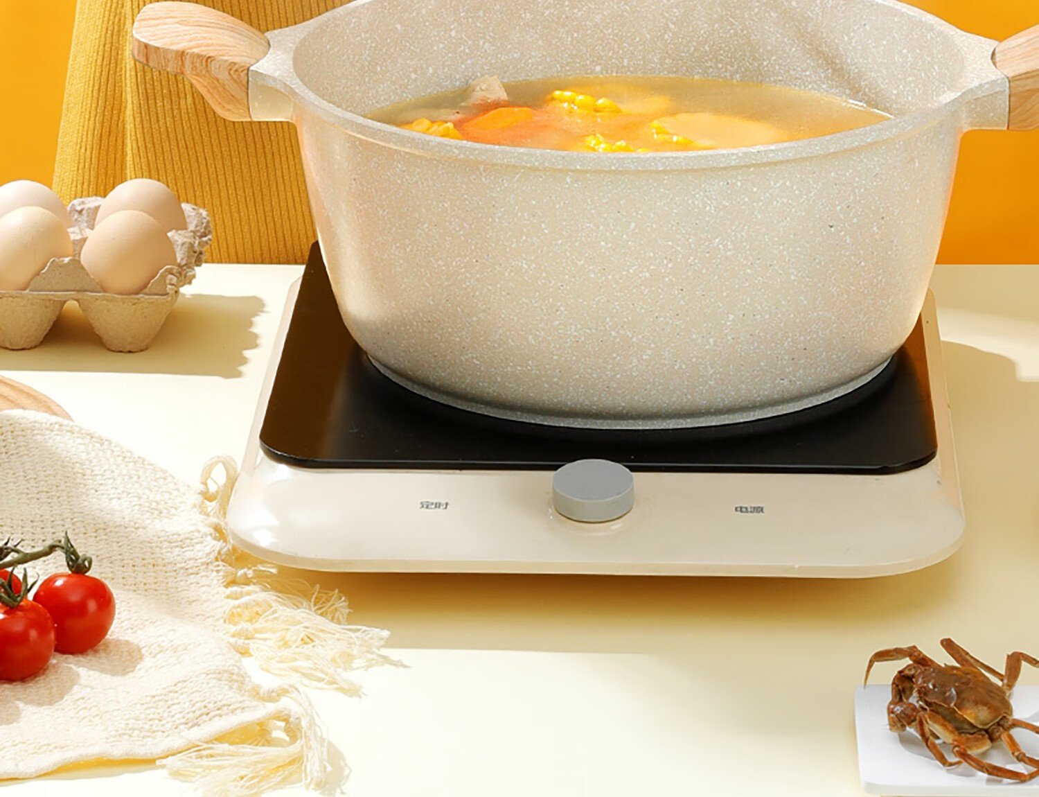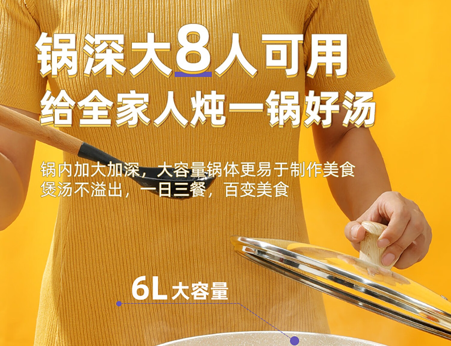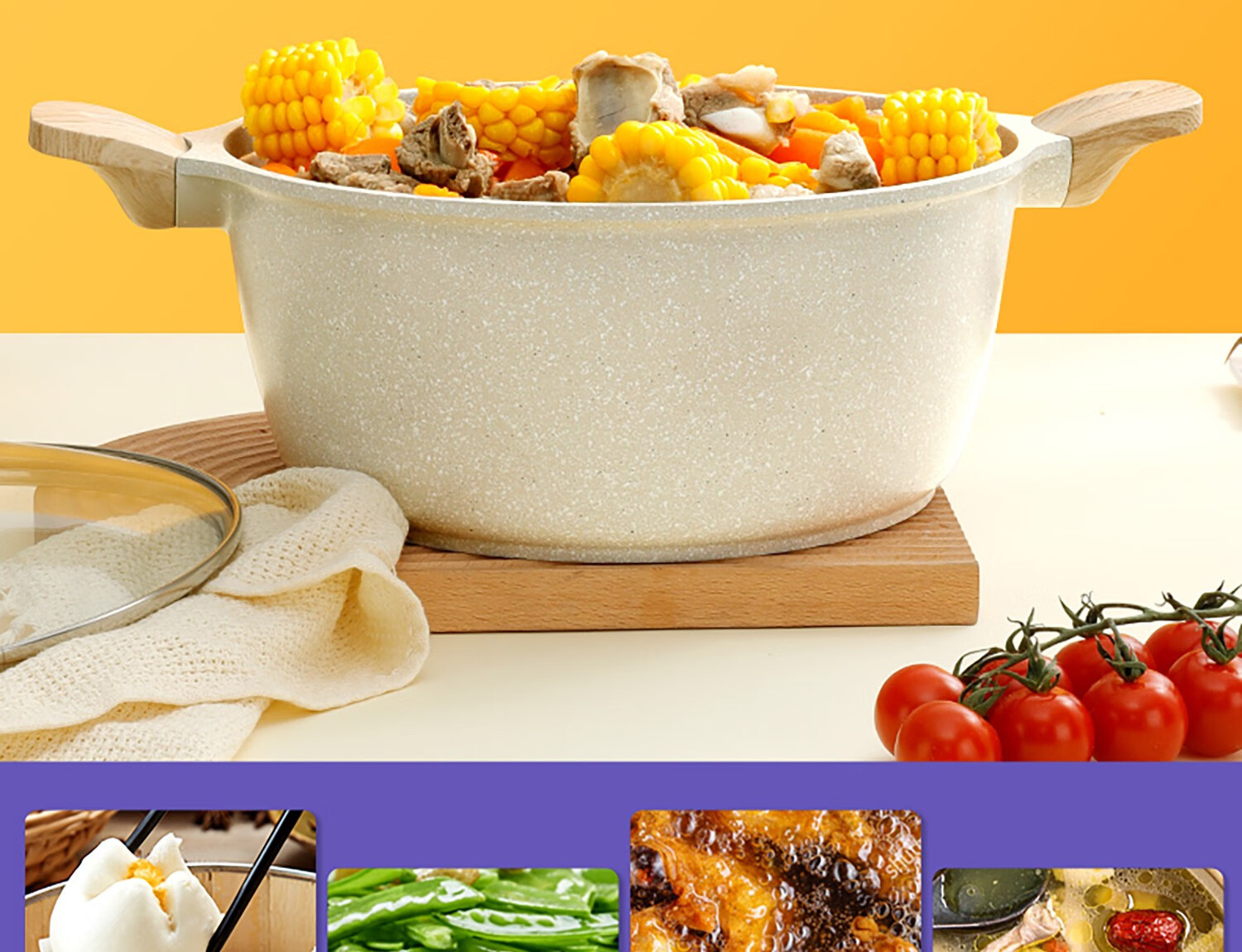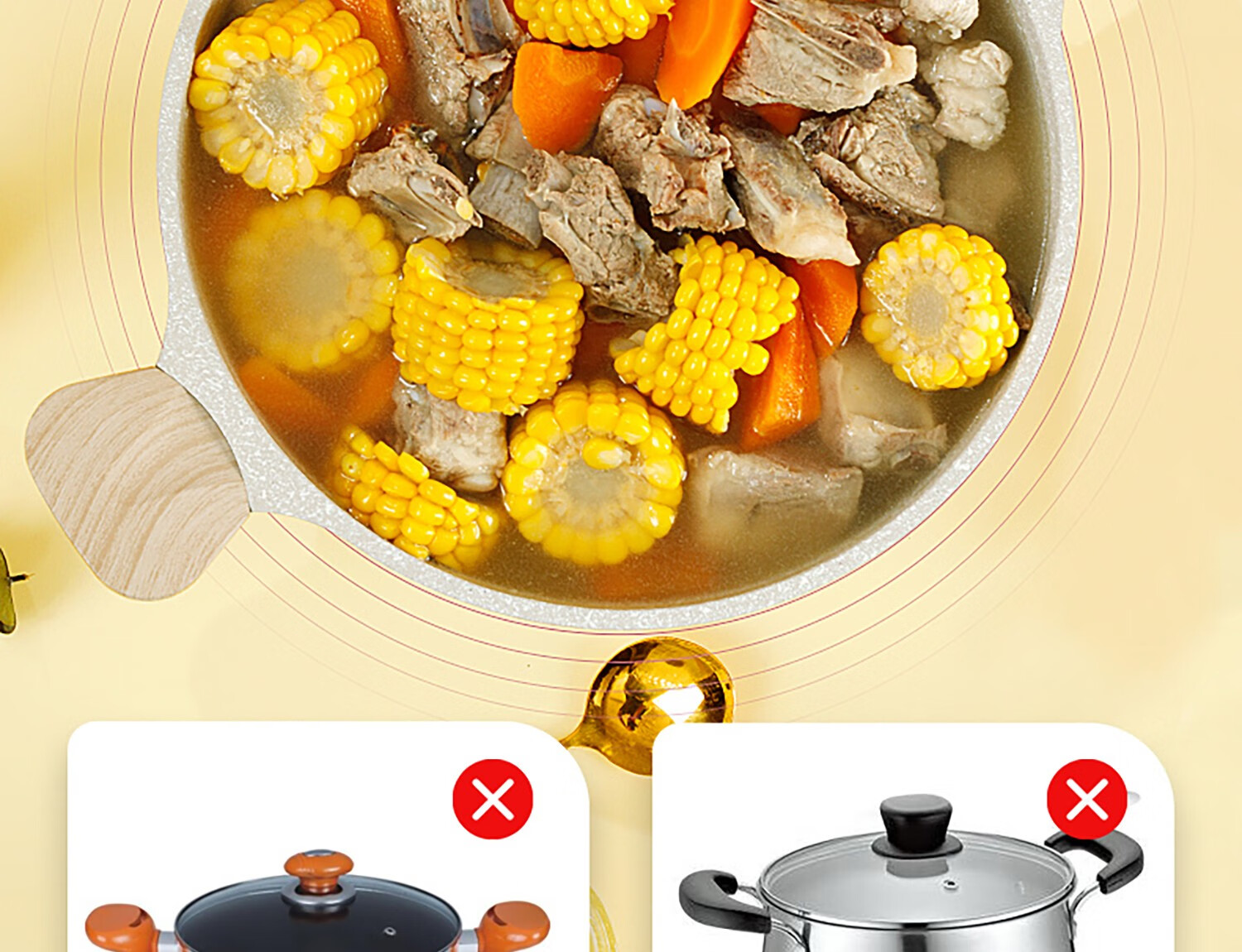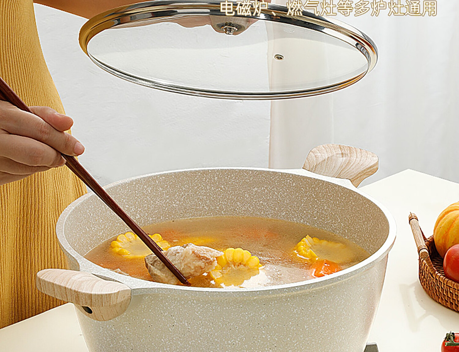 TAKSAT汤锅煮锅不粘锅炖煮锅烧水锅卤肉锅煮肉锅小汤锅燃气灶电磁炉通用 (6-8人适用)汤锅白+蒸笼 32cm