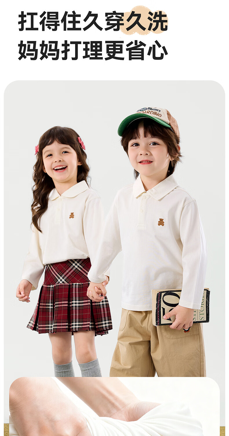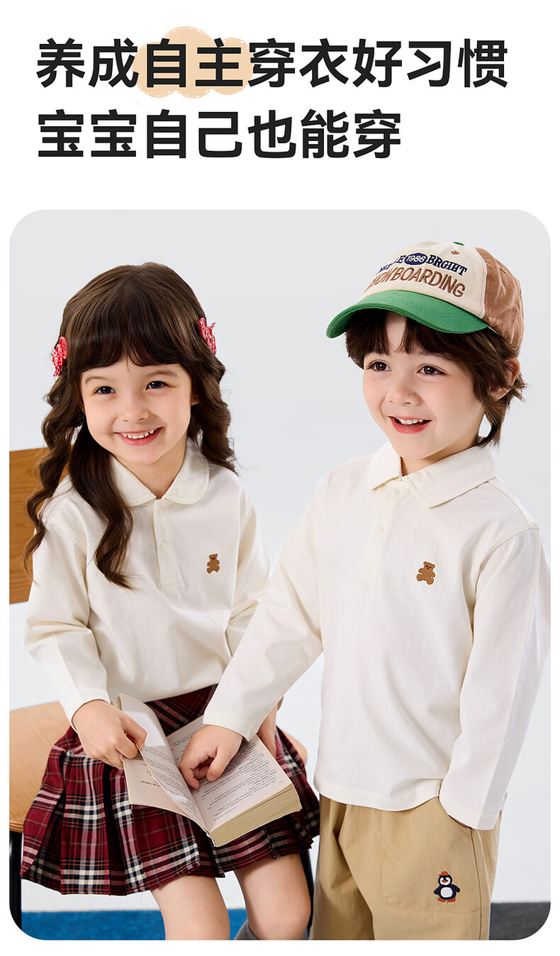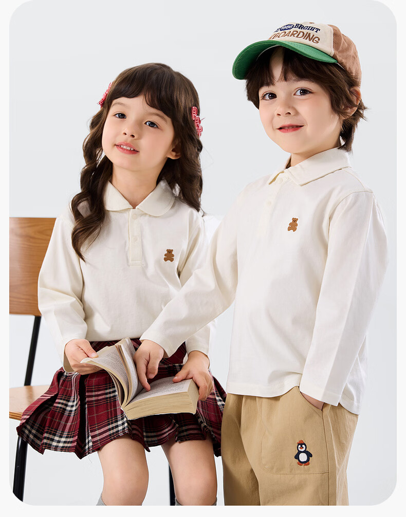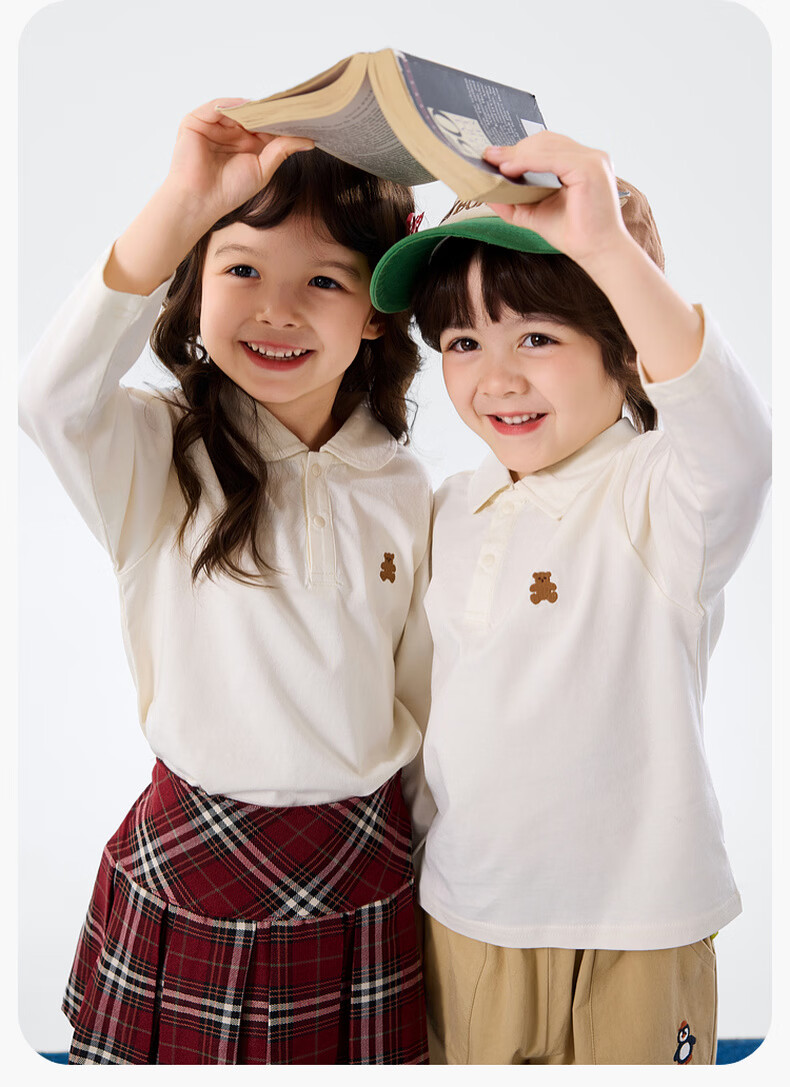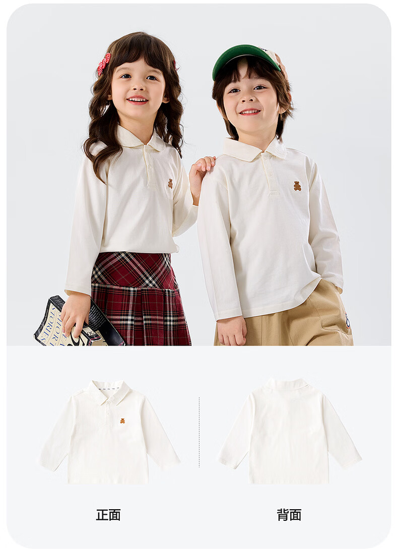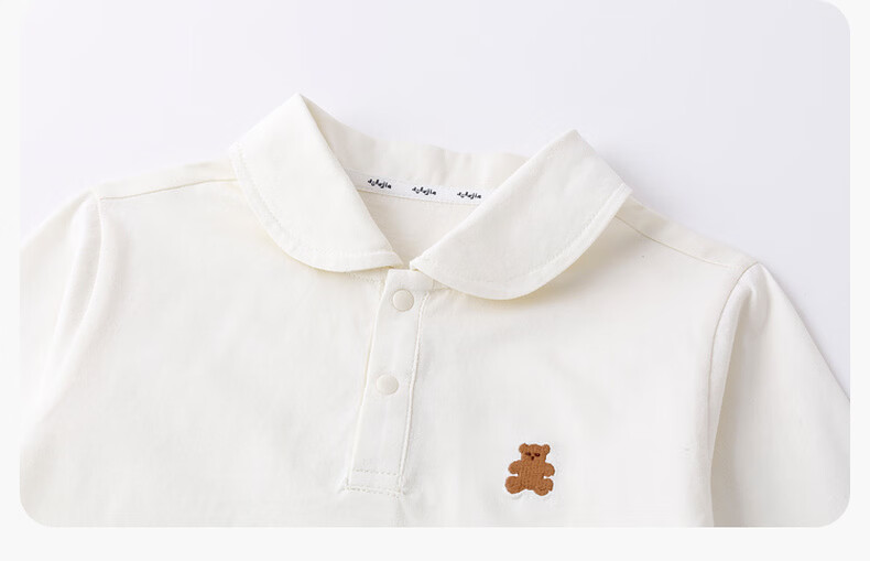 嘟嘟家儿童T恤学院风春装男童polo衫春款女童长袖上衣宝宝衣服童装洋气 大白 90