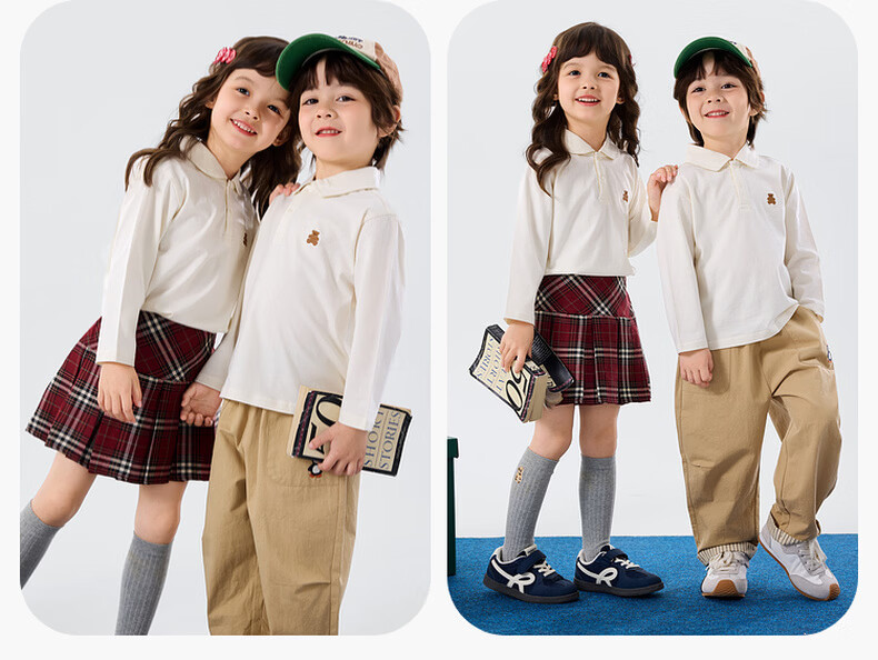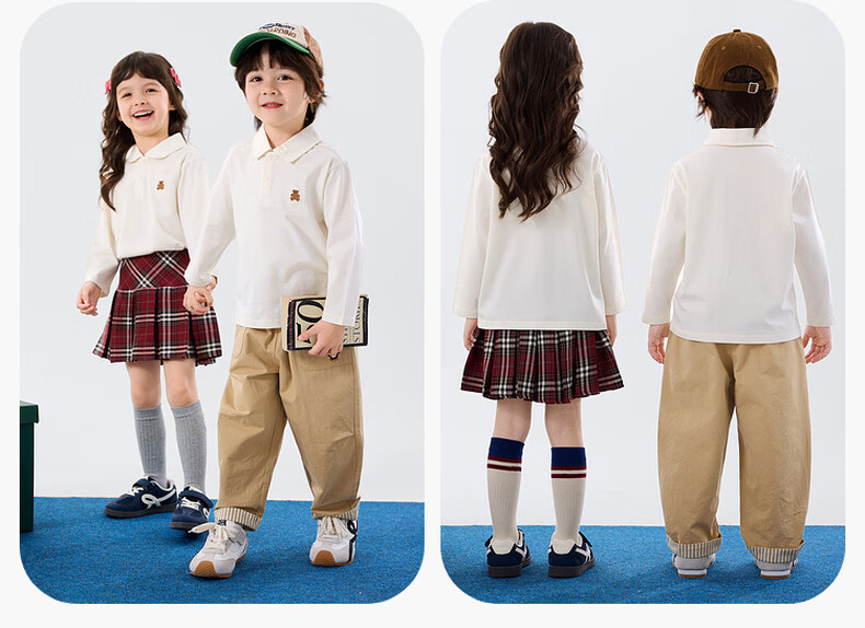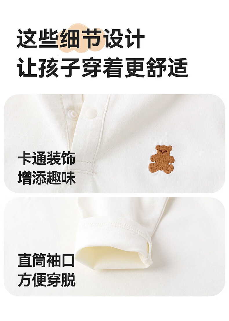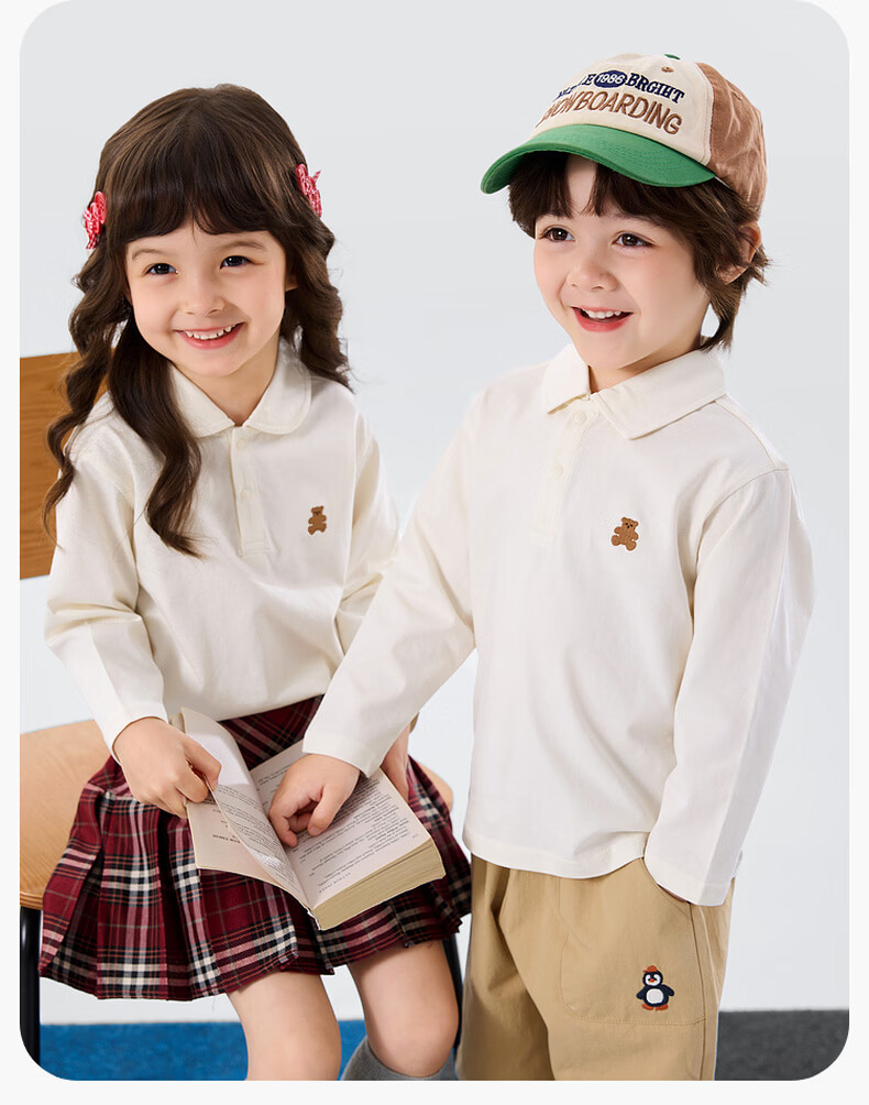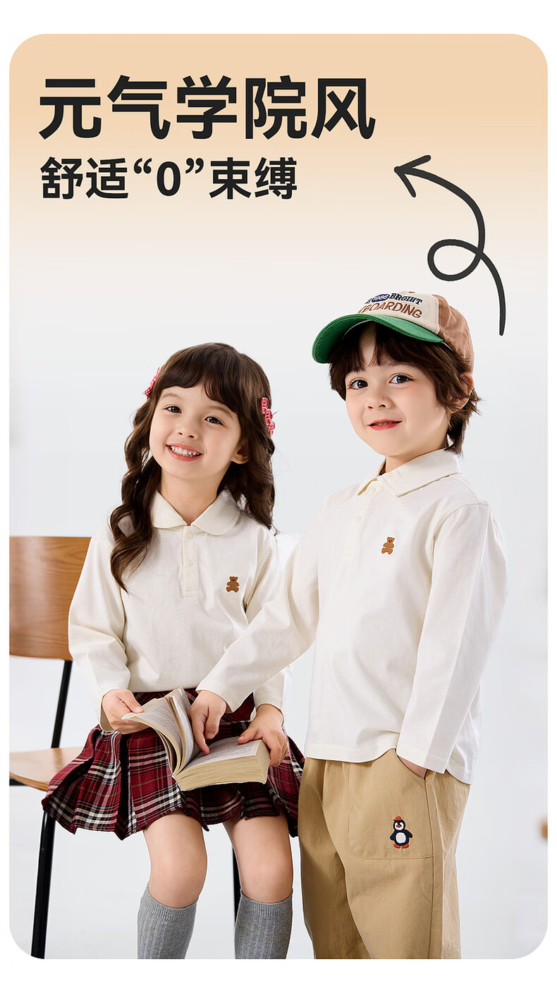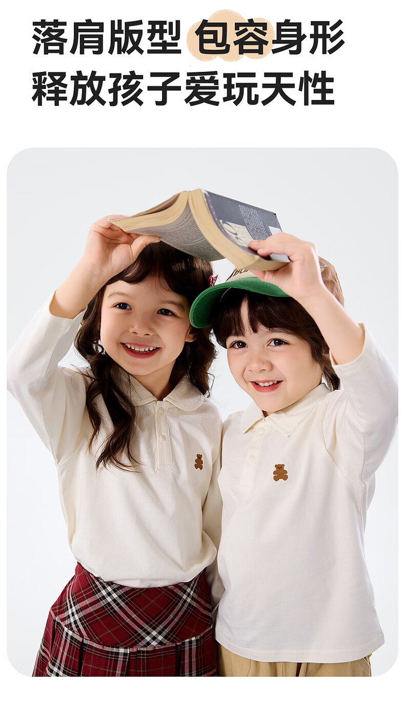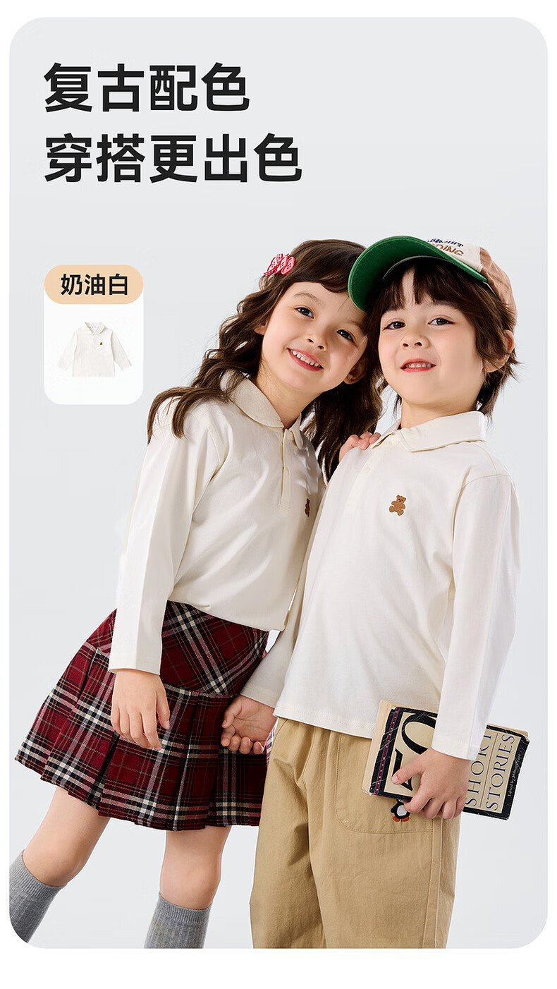 嘟嘟家儿童T恤学院风春装男童polo衫春款女童长袖上衣宝宝衣服童装洋气 大白 90