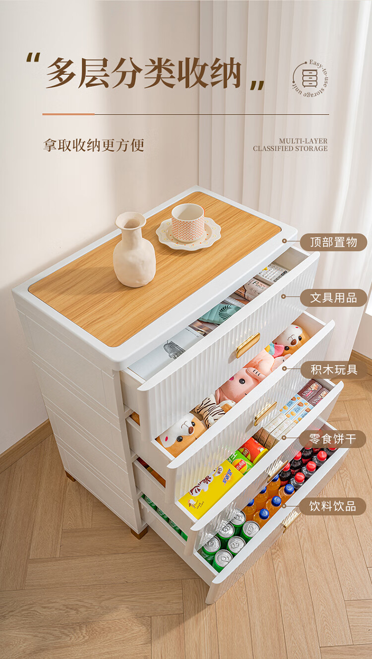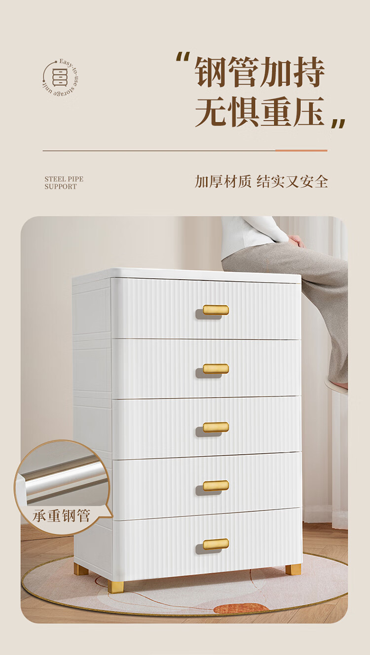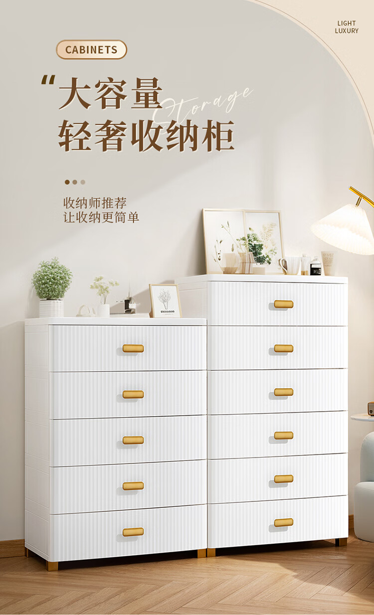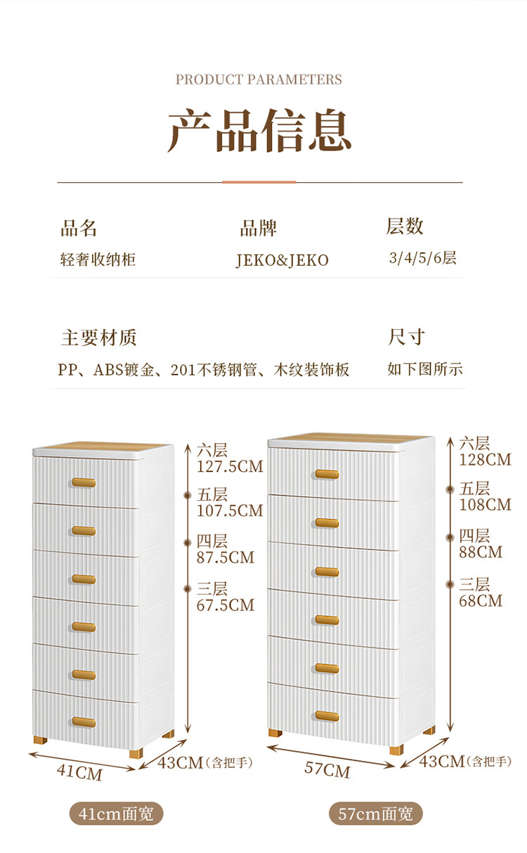 JEKO&JEKO抽屉式收纳柜特大号加厚卧室儿童衣柜喂养台玩具整理箱衣物储物柜 面宽57cm 轻奢五层柜