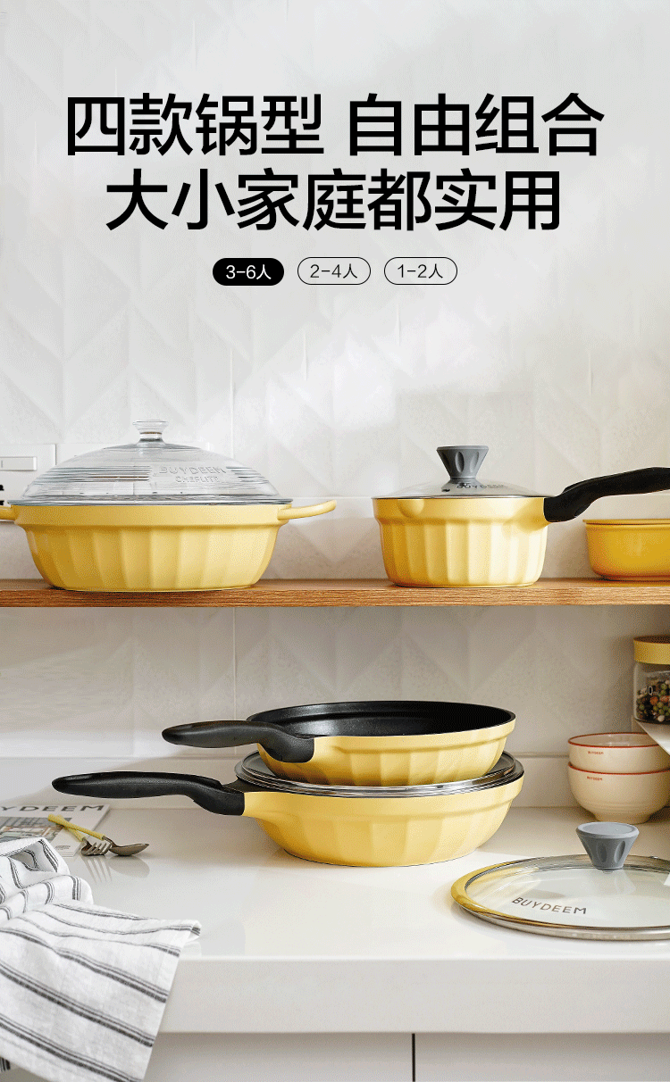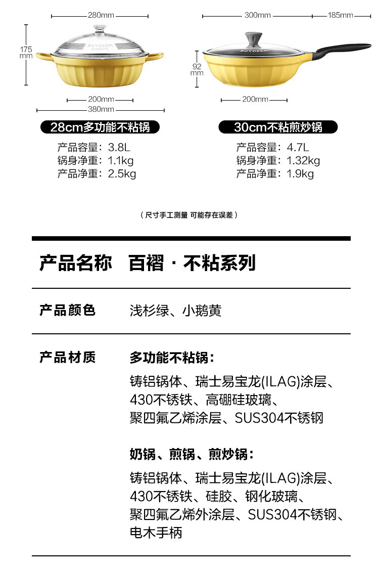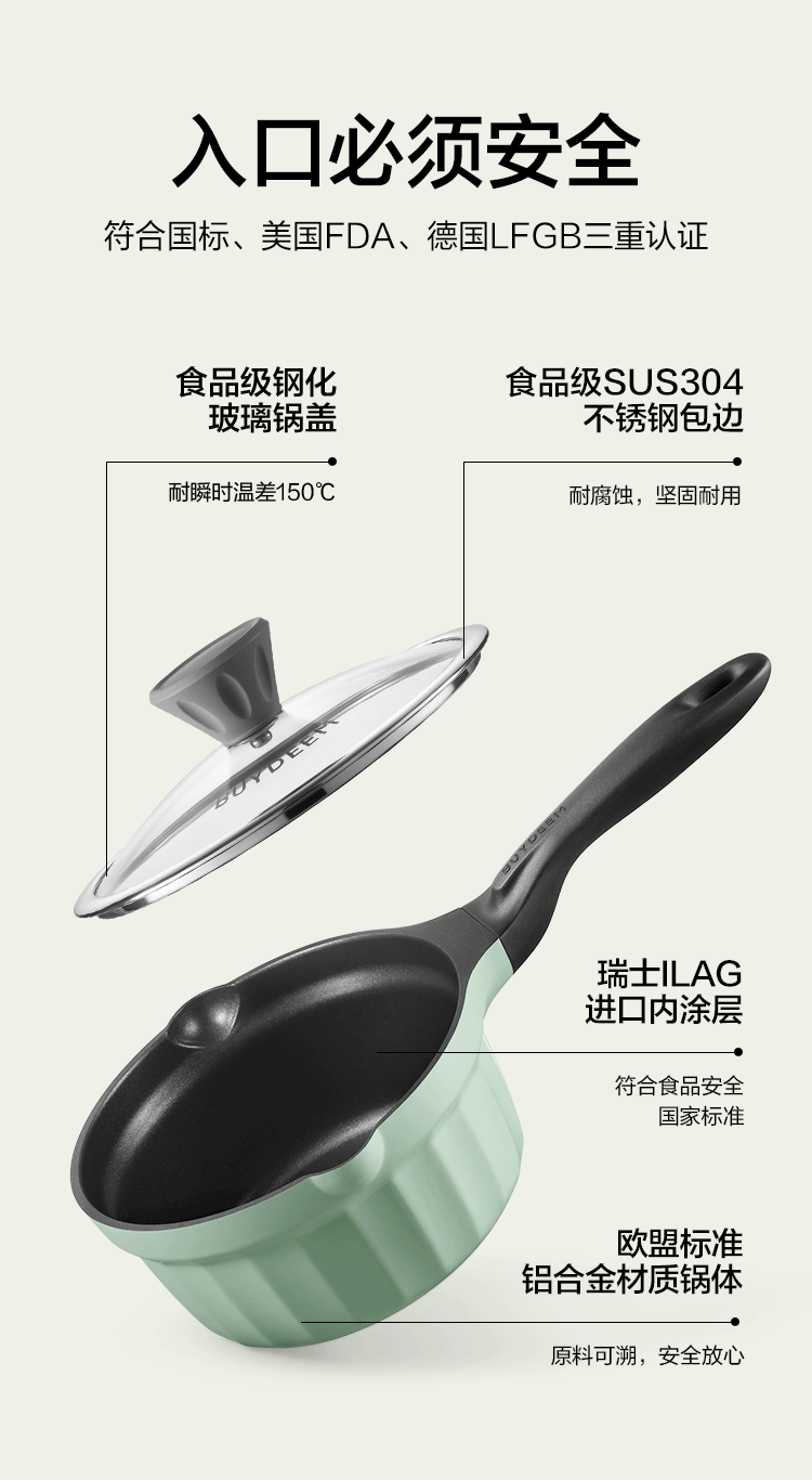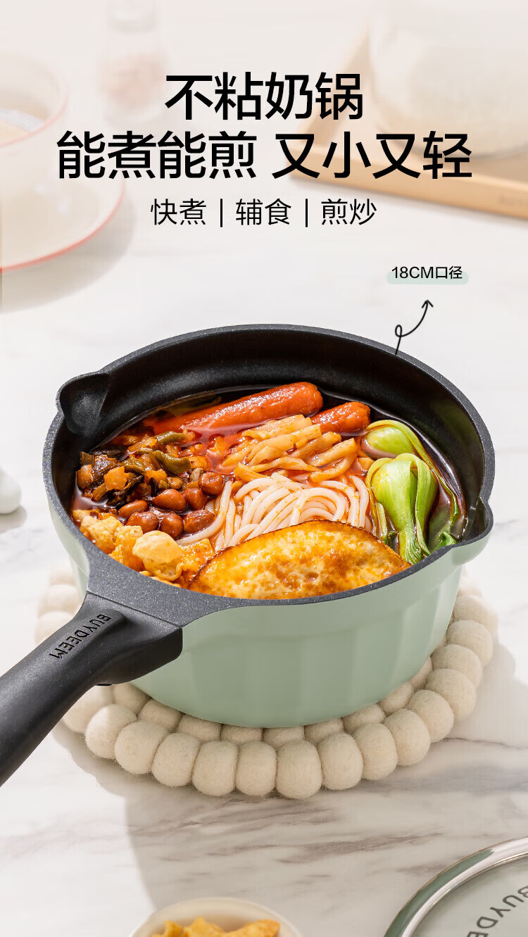 北鼎(Buydeem)烹饪锅具套装家用平底不粘锅厨具套装炒菜锅煎锅奶锅汤锅火锅套锅 【浅杉绿4件套】18cm奶锅+26cm煎锅+30cm炒锅+28cm火锅
