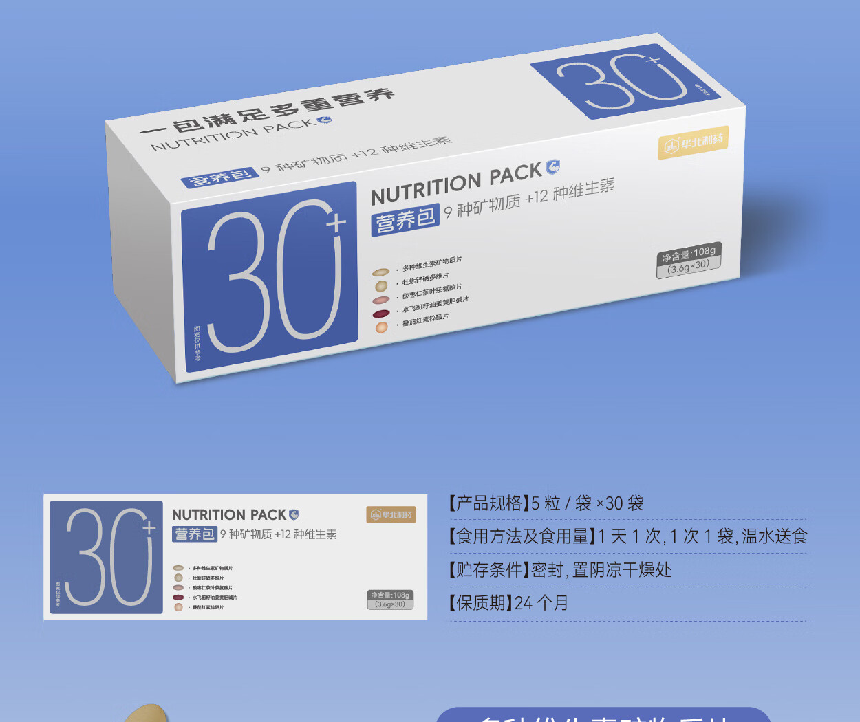 华北制药30+男士营养包30天复合维生素矿物质熬夜应酬呵护肝送男友送老公