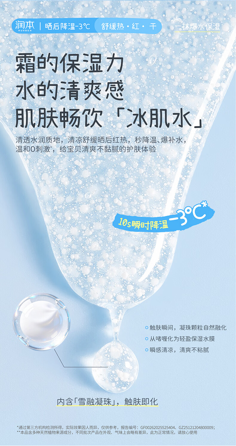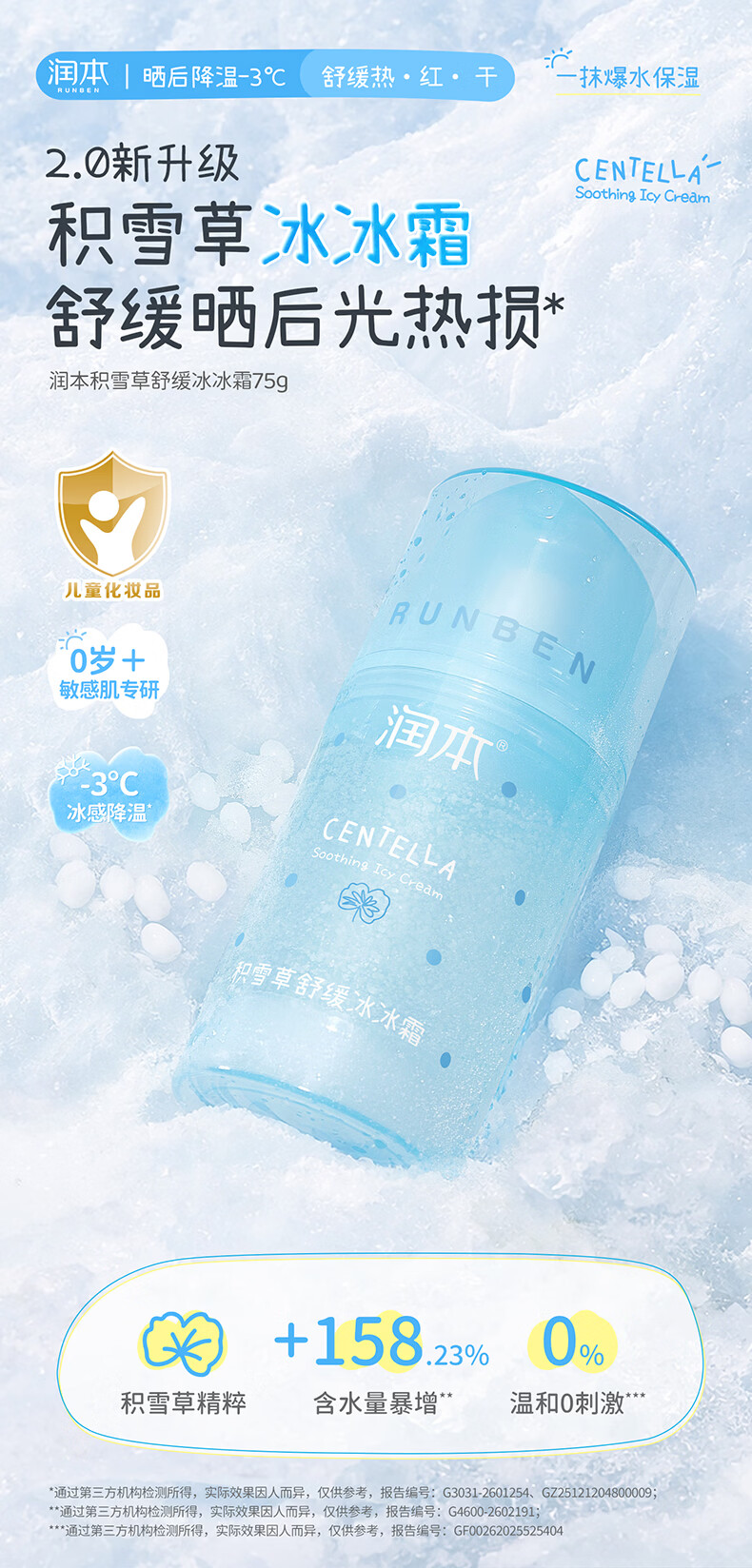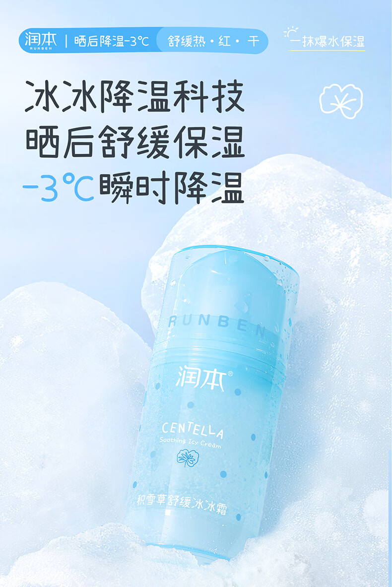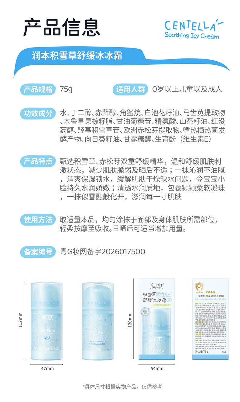 润本儿童宝宝婴儿面霜母婴舒缓保湿积雪草冰冰霜75g春夏补水护肤