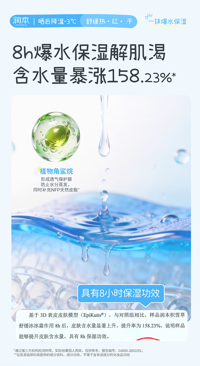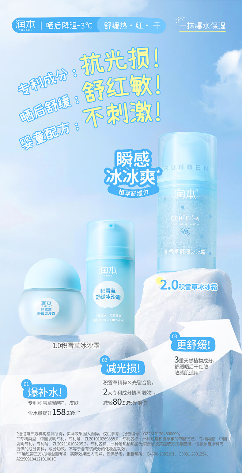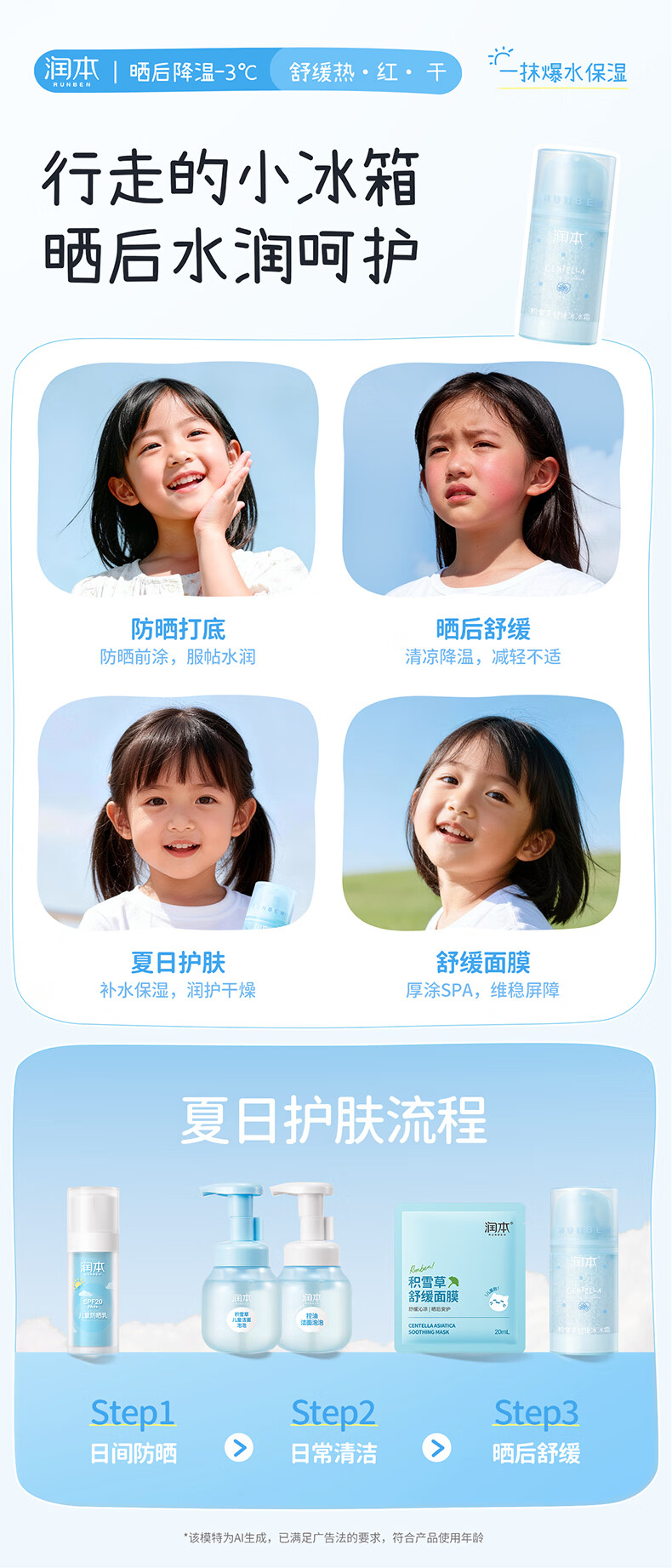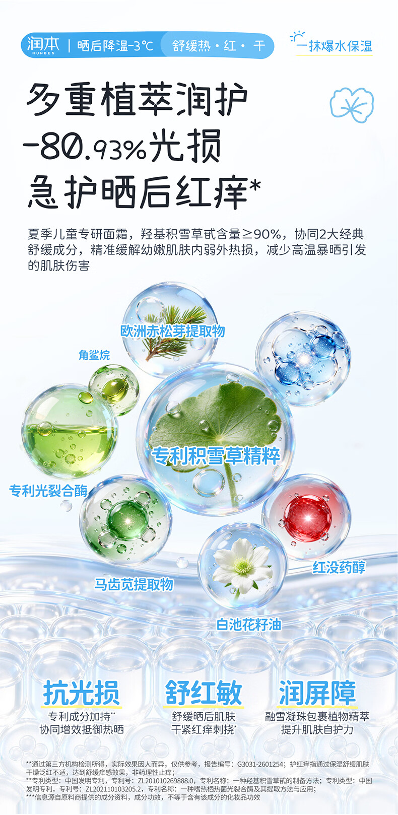 润本儿童宝宝婴儿面霜母婴舒缓保湿积雪草冰冰霜75g春夏补水护肤