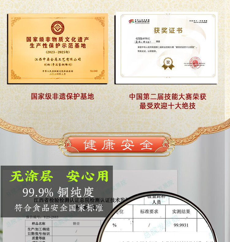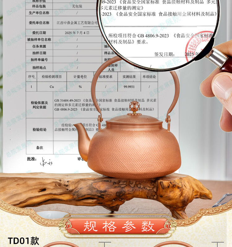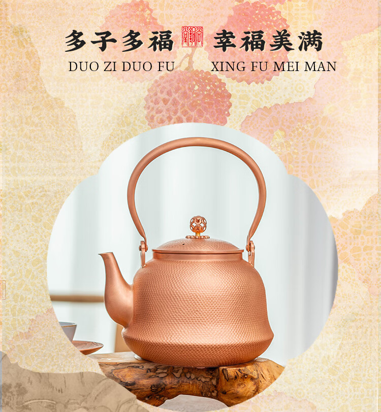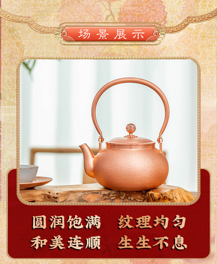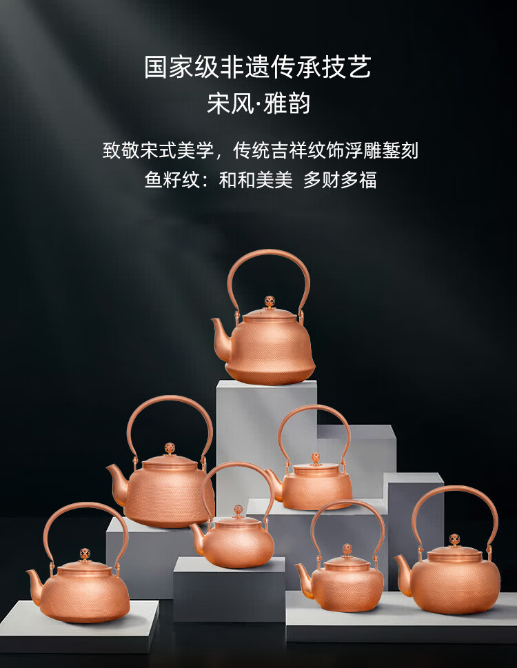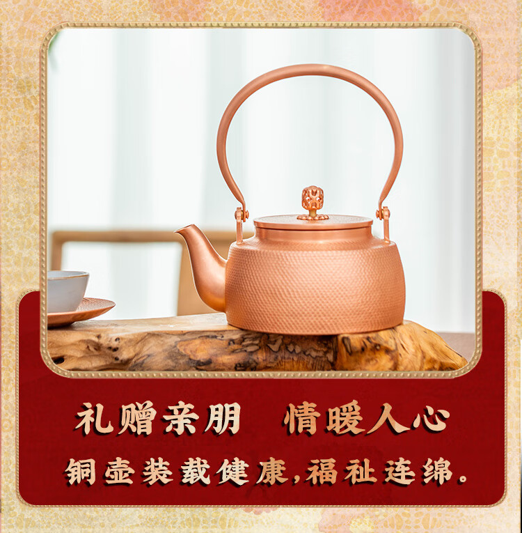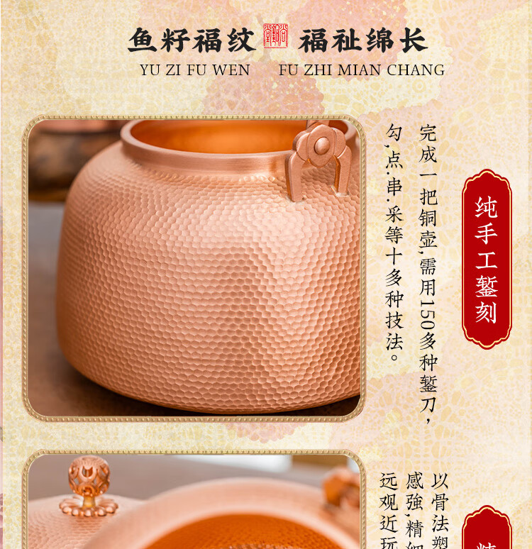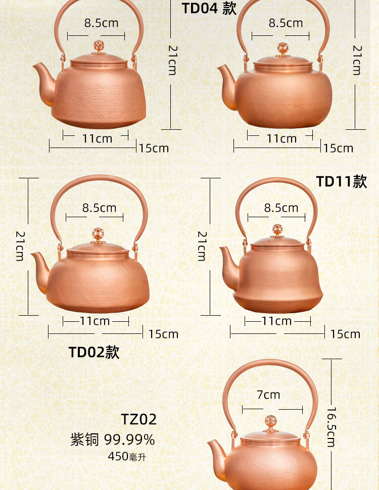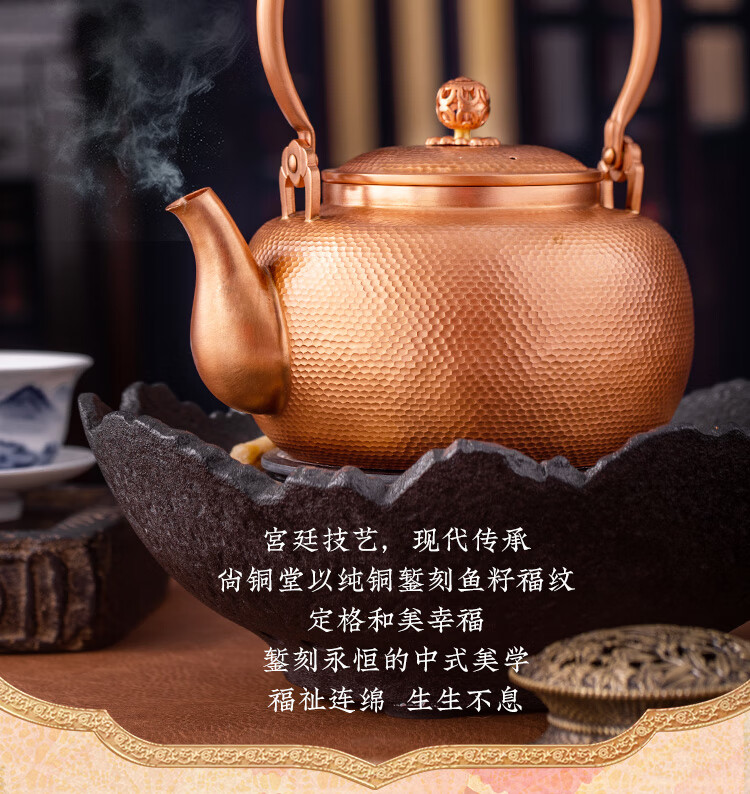 尚铜堂技能大师工作室錾刻泡茶壶套装电陶炉耐高温普洱白茶用紫铜壶 td01 1200ml 66