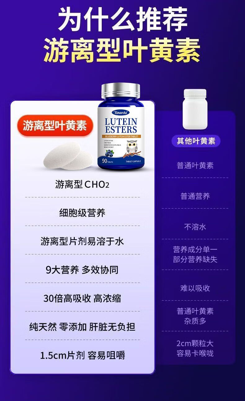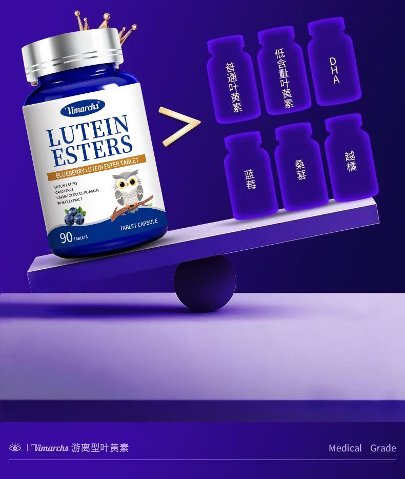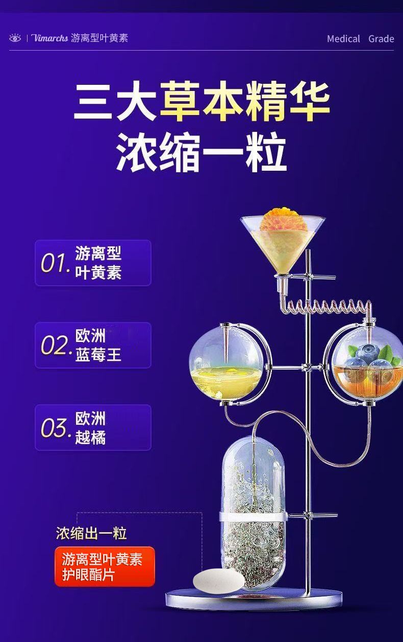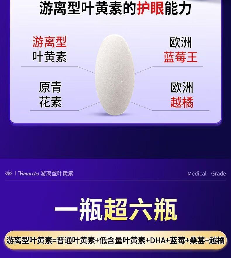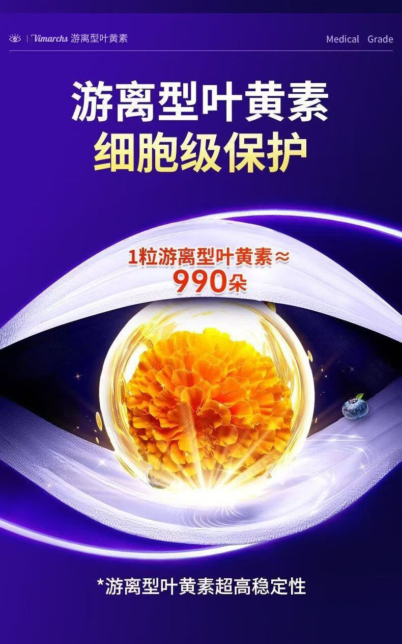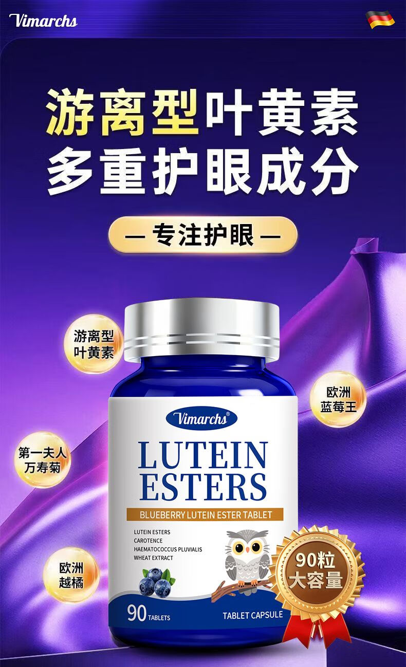 VIMARCHS德国蓝莓叶黄素成人叶黄素护眼缓解眼酸涩疲劳中老年视力模糊 90片*2瓶