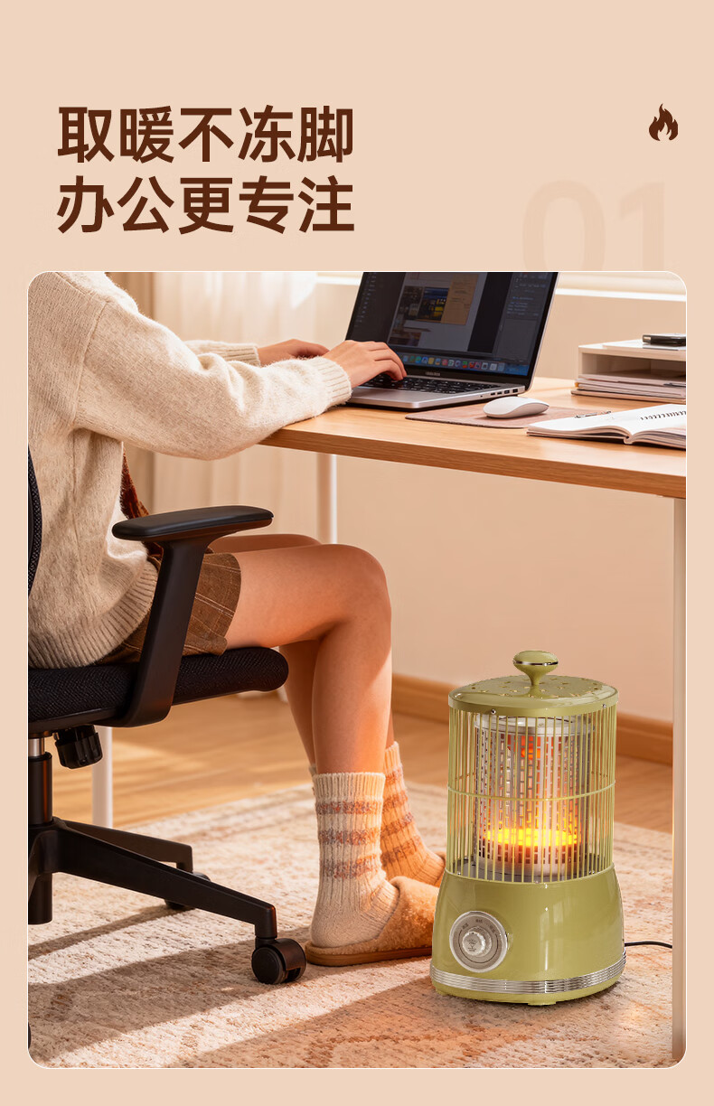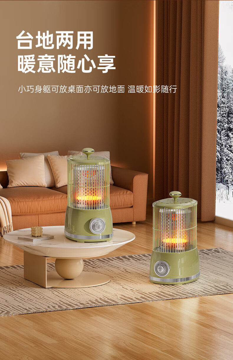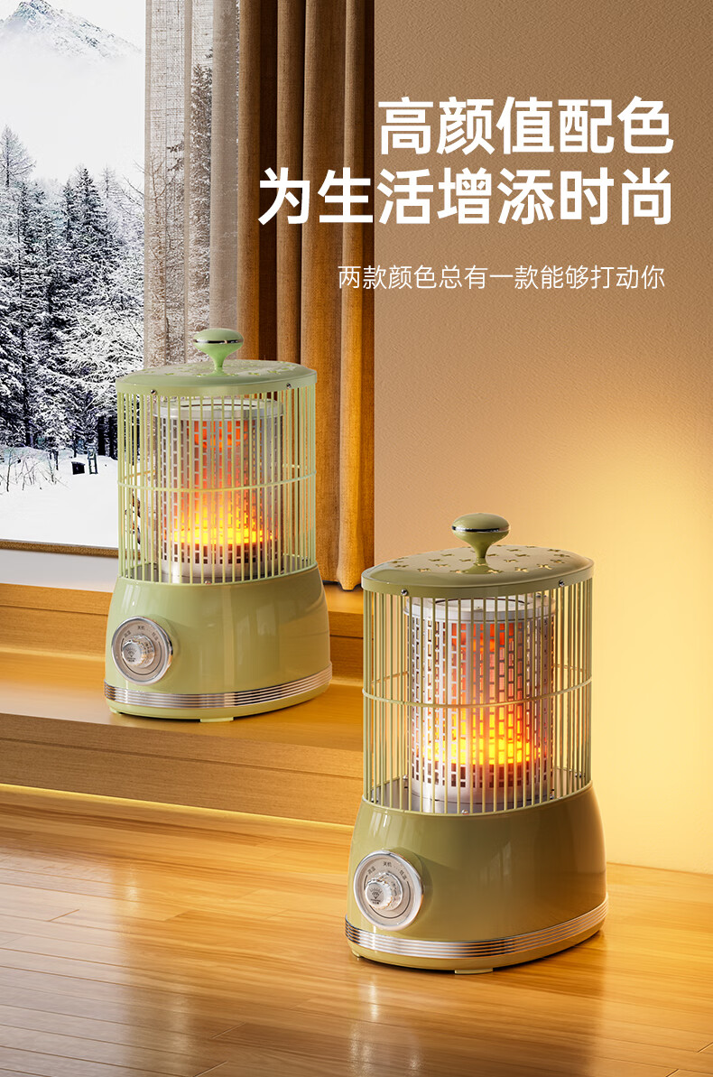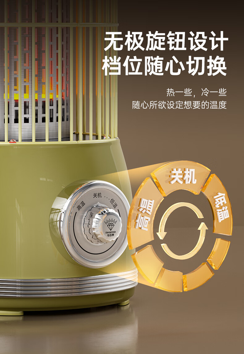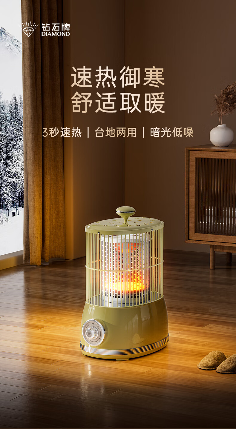 钻石牌(DIAMOND)鸟笼取暖器小太阳小型烤火炉家用室内速热电暖器节能省电电暖炉冬季取暖烤火神器 复古色【360°环绕取暖】无极调温+延长线