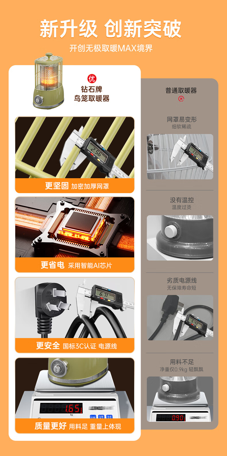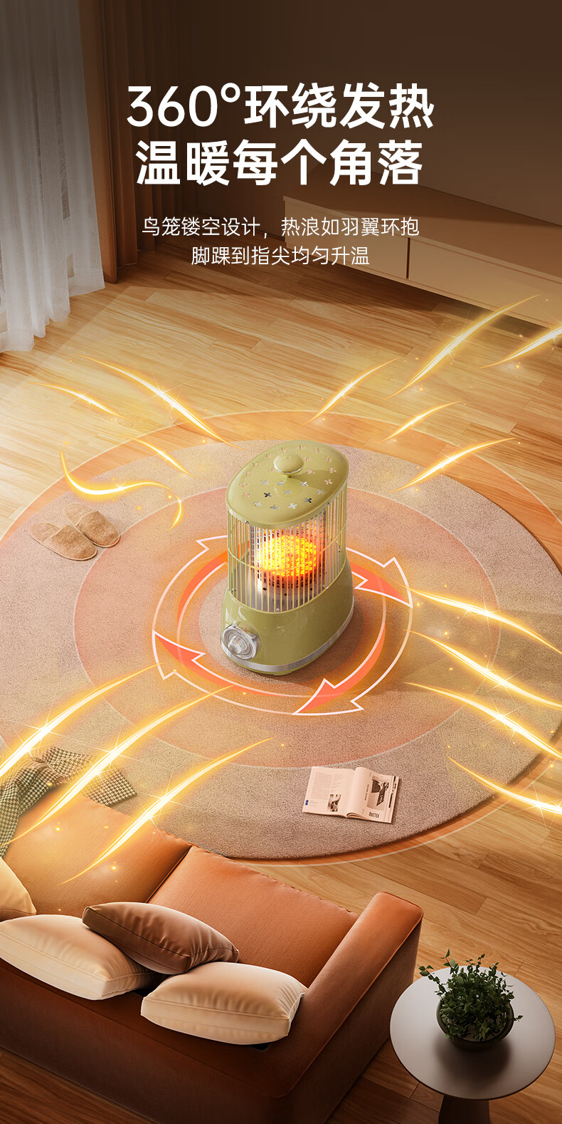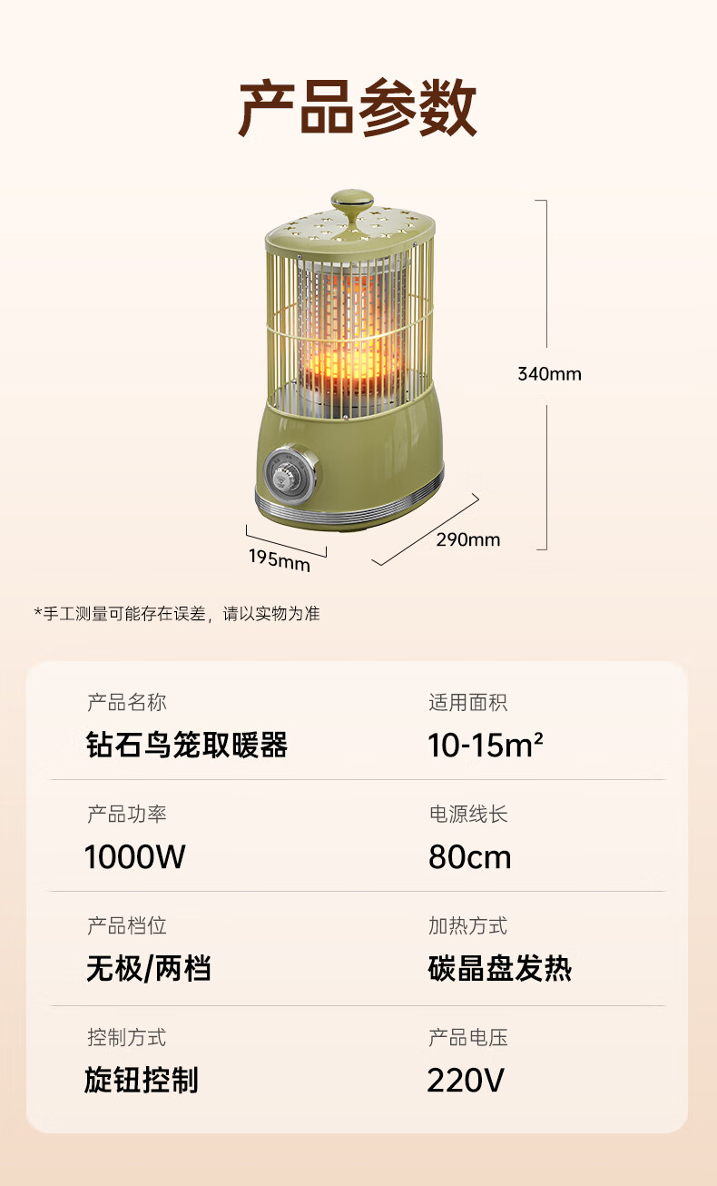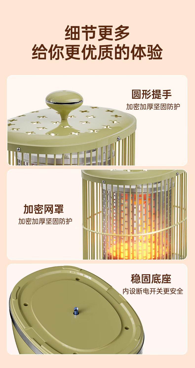 钻石牌(DIAMOND)鸟笼取暖器小太阳小型烤火炉家用室内速热电暖器节能省电电暖炉冬季取暖烤火神器 复古色【360°环绕取暖】无极调温+延长线
