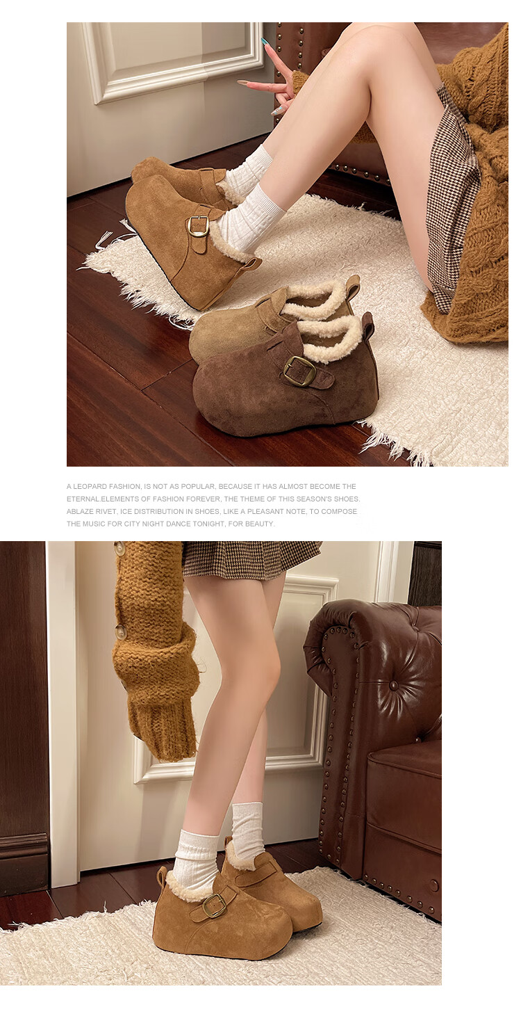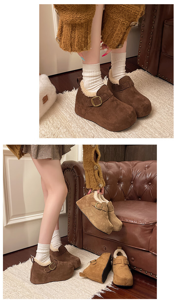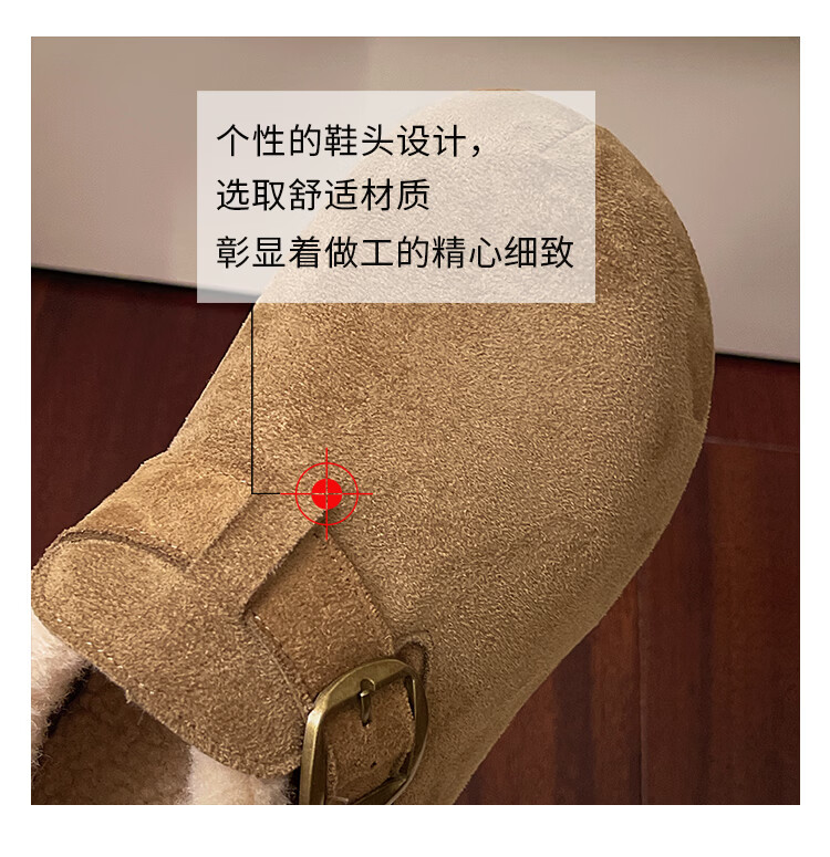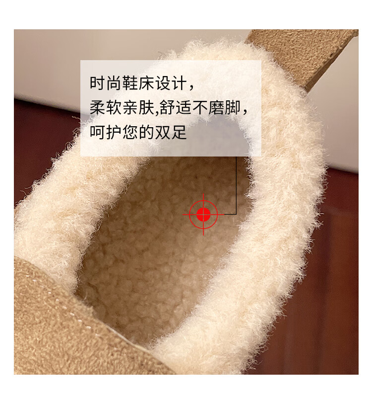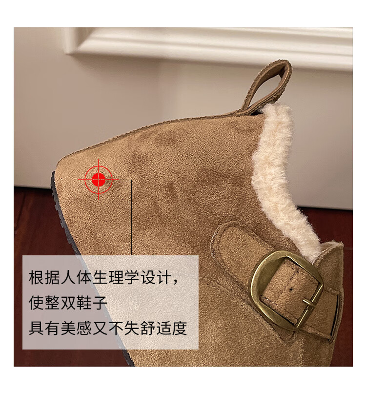 稻草人(MEXICAN)厚底内增高加绒保暖勃肯鞋女鞋2026冬季新款小个子雪地靴毛毛棉鞋 卡其色【升级版】 店主推荐95%买家选择 35