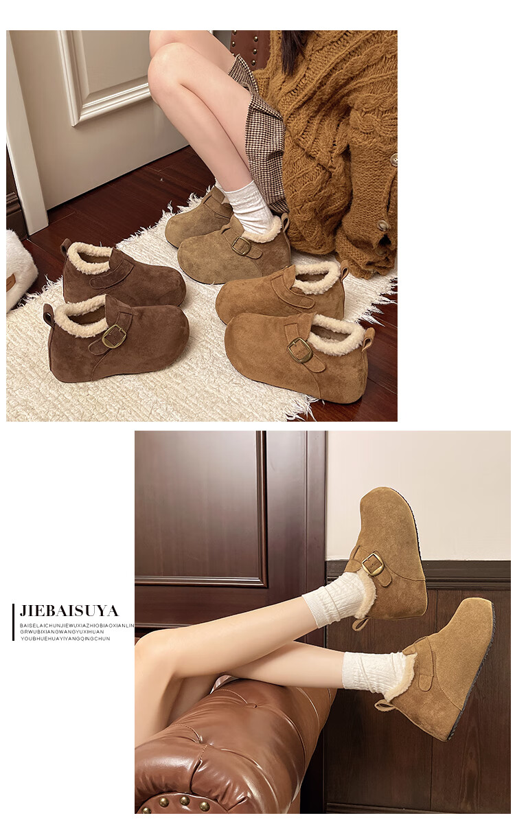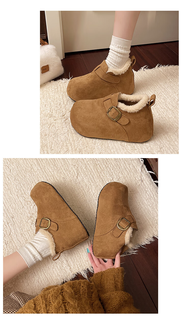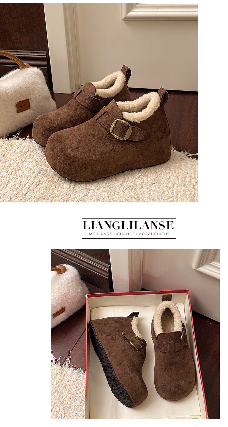 稻草人(MEXICAN)厚底内增高加绒保暖勃肯鞋女鞋2026冬季新款小个子雪地靴毛毛棉鞋 卡其色【升级版】 店主推荐95%买家选择 35