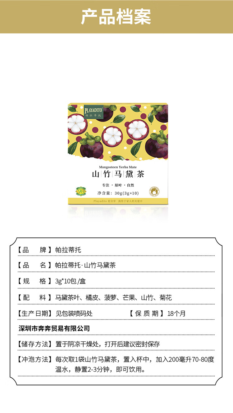 帕拉蒂托PLAYADITO山竹马黛茶30g(10袋*3g) 清爽解腻