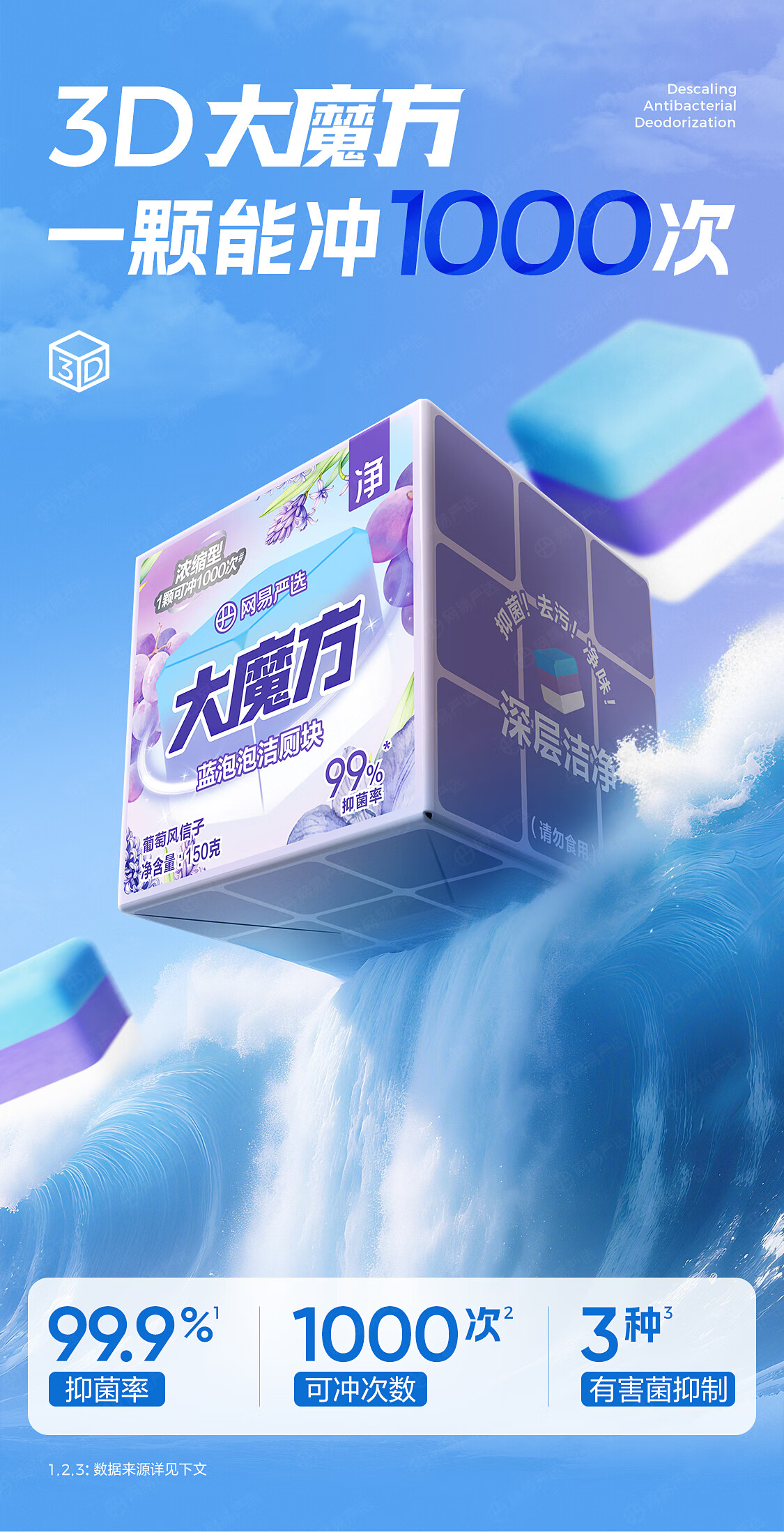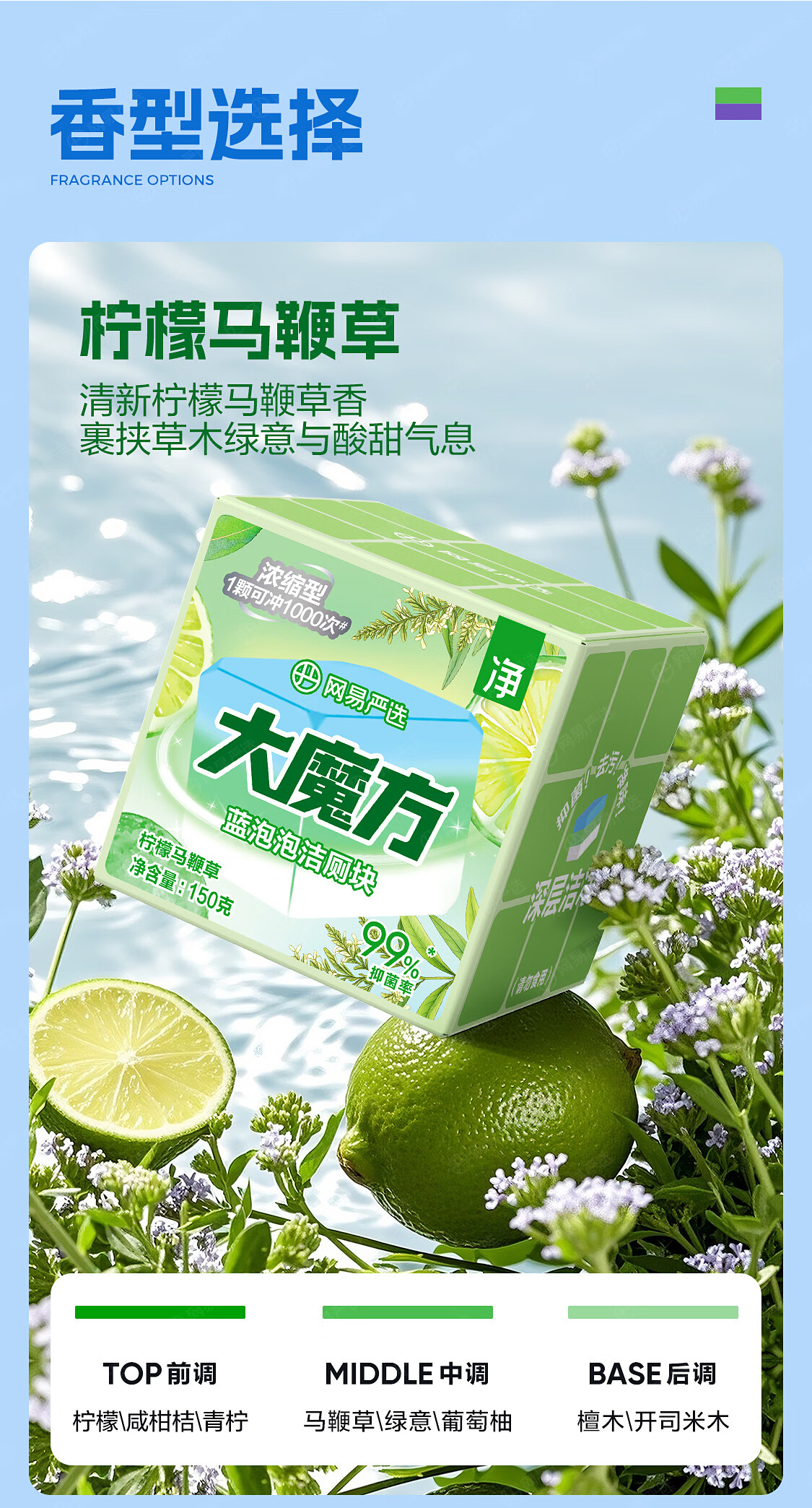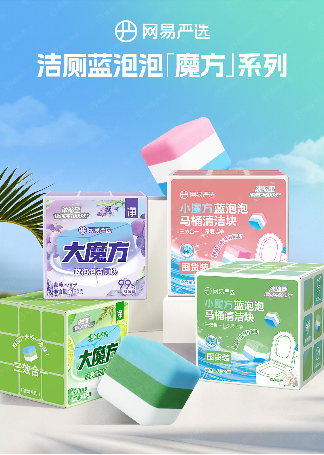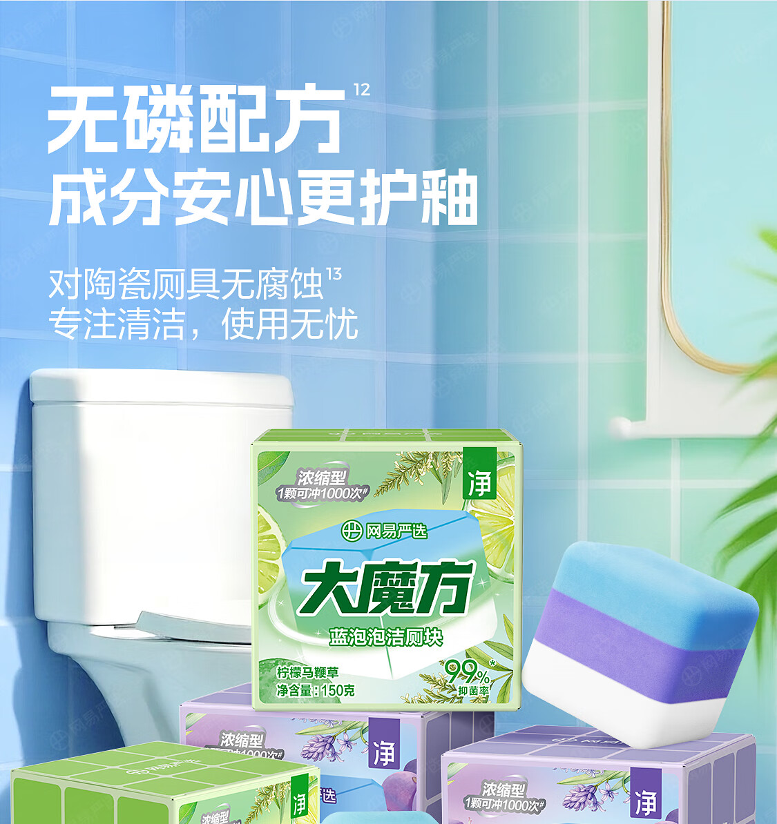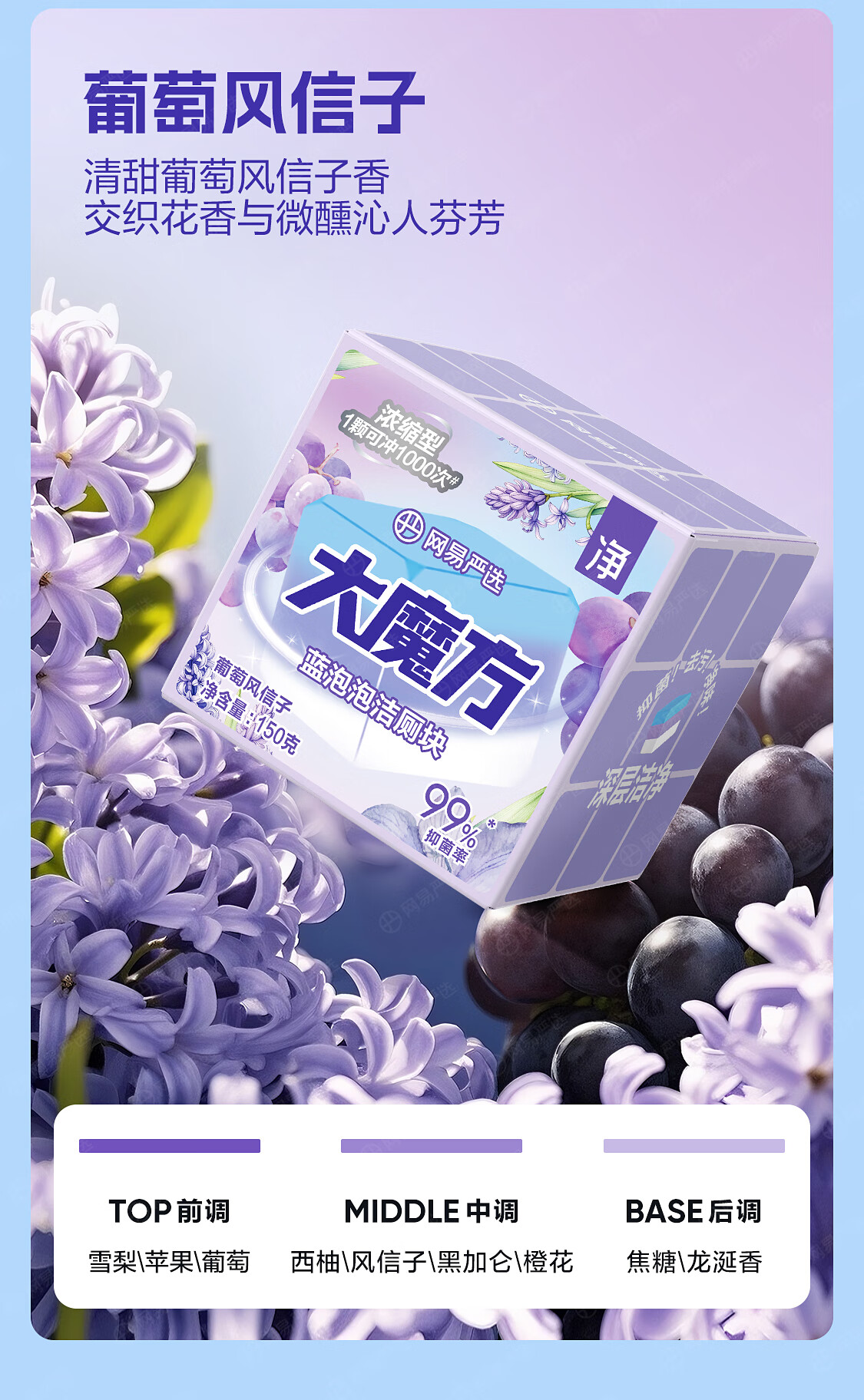 网易严选大魔方蓝泡泡厕所马桶清洁剂除垢洁厕灵马桶洁厕块150g葡萄风信子