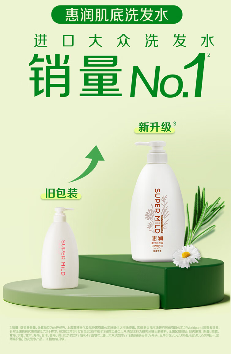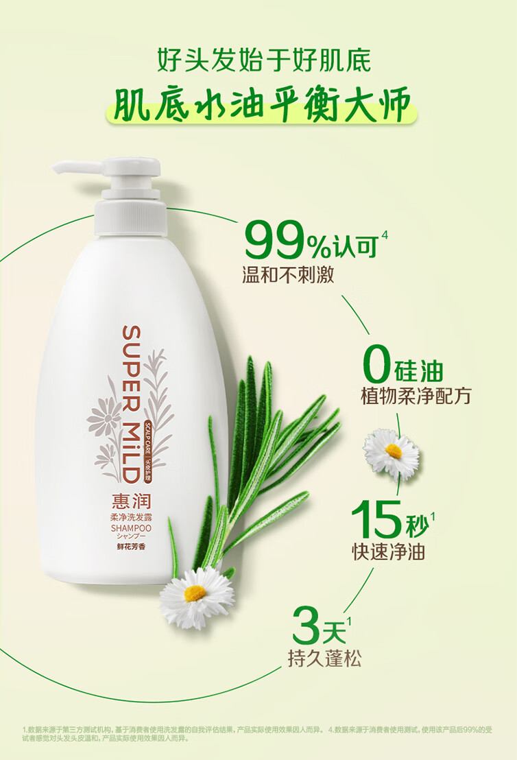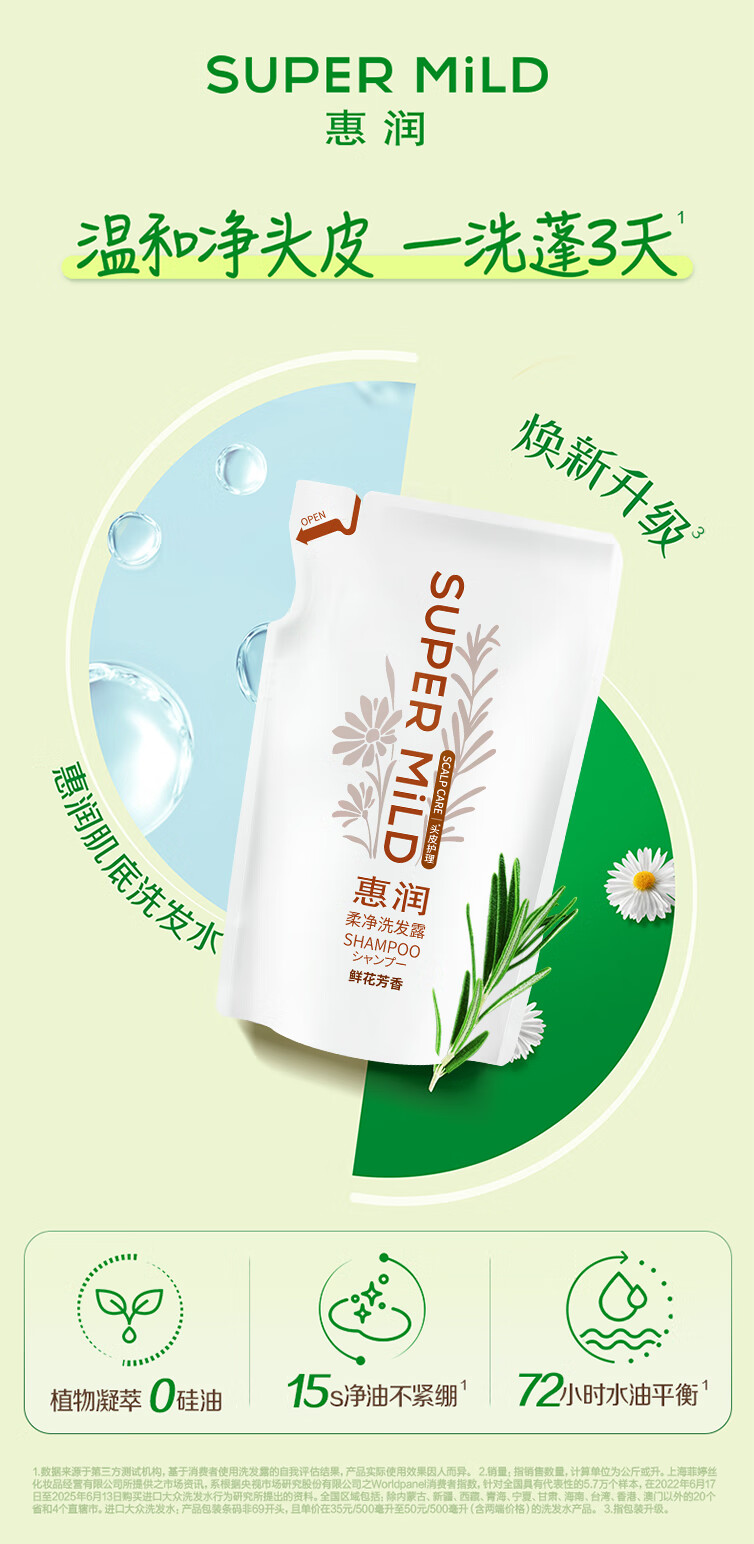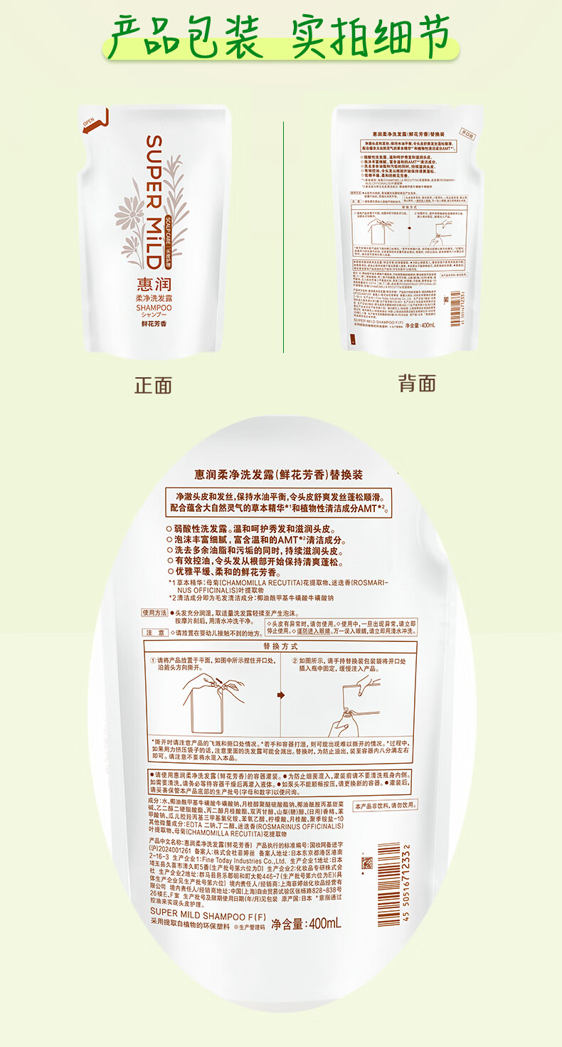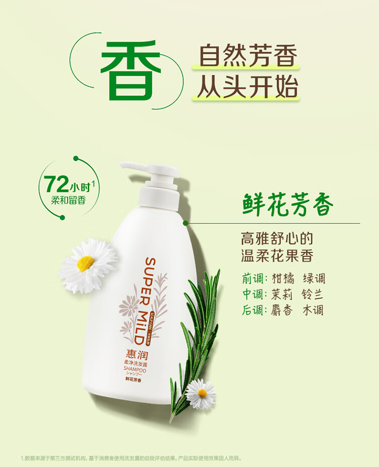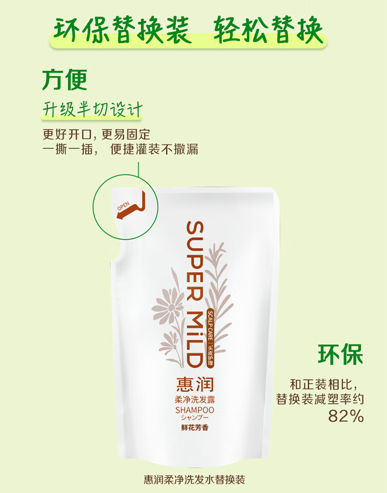惠润(SUPER MiLD)柔净洗发露(鲜花芳香)400mL持久蓬松洗发水花果留香环保替换装
