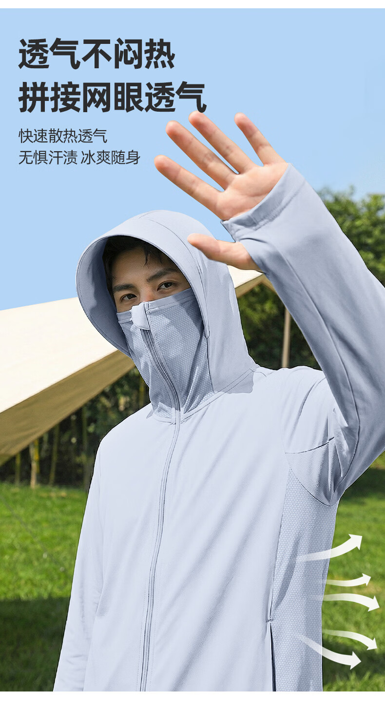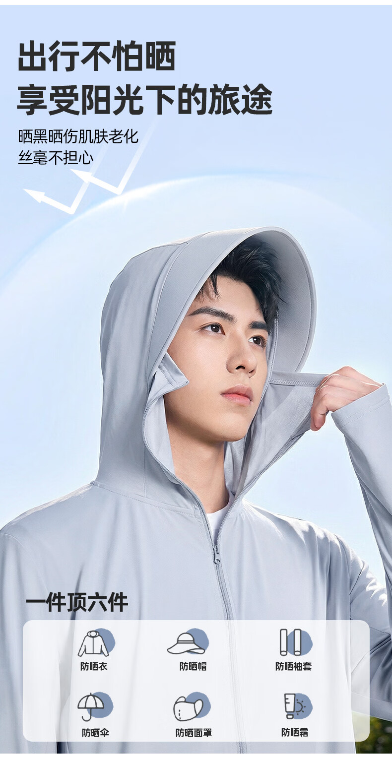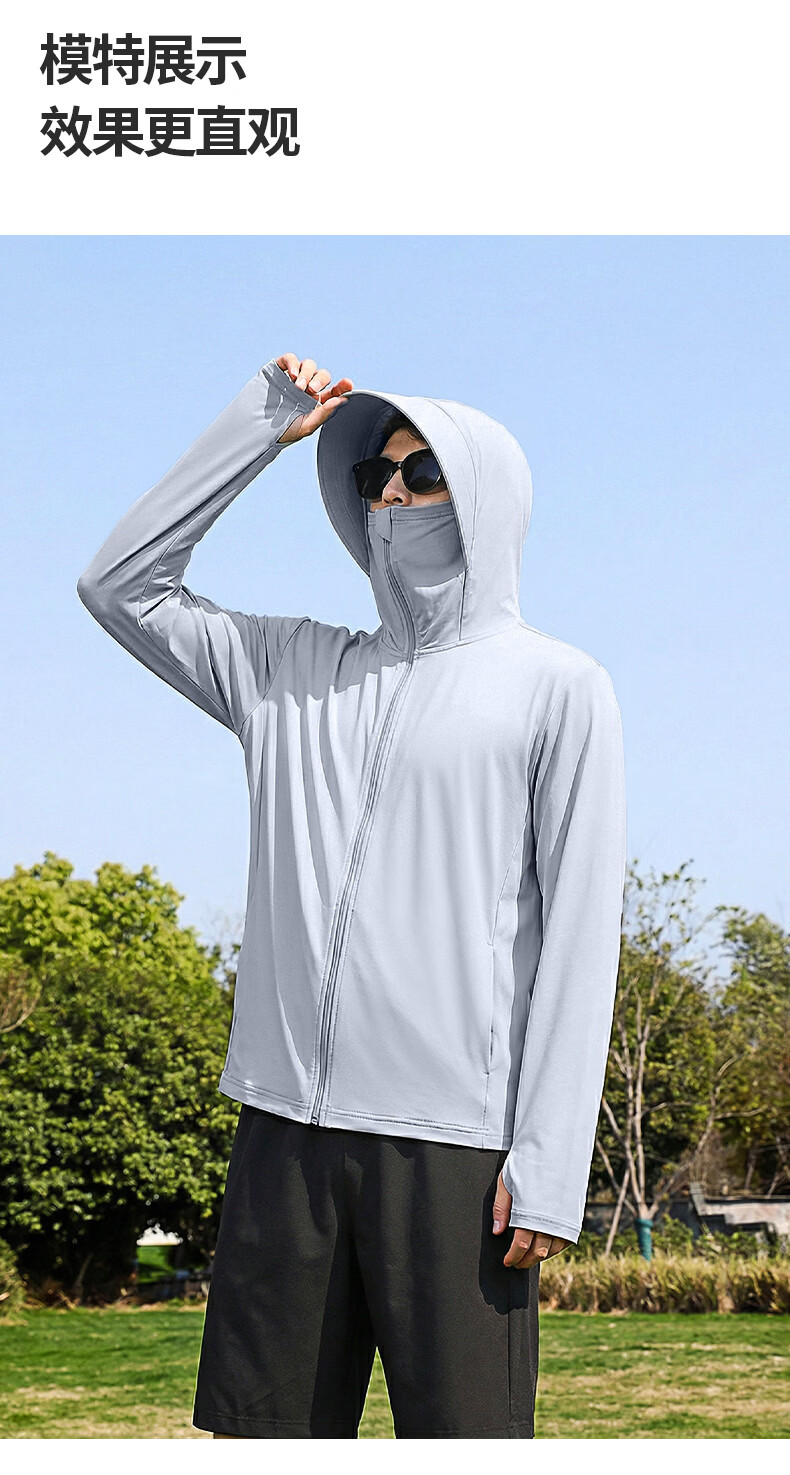 真维斯(Jeanswest)冰丝防晒衣男款2026新款夏轻薄款防紫外线男士通勤户外连帽防晒服 橄榄绿 灰斜杠_K S
