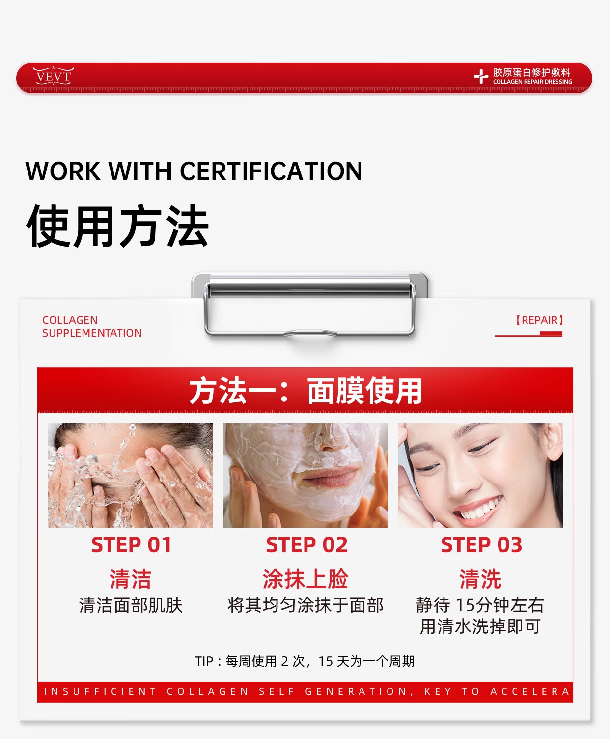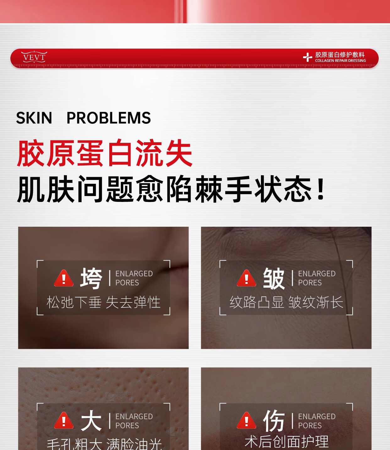 VEVT胶原膜vevt护理膜细腻毛孔淡化纹路vvt胶原蛋白护理膜修复敷料 三盒装【改善纹路/粗毛孔】98%顾客选择