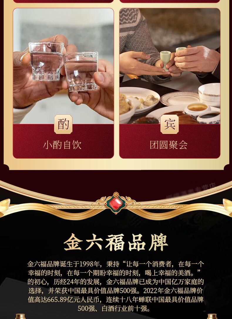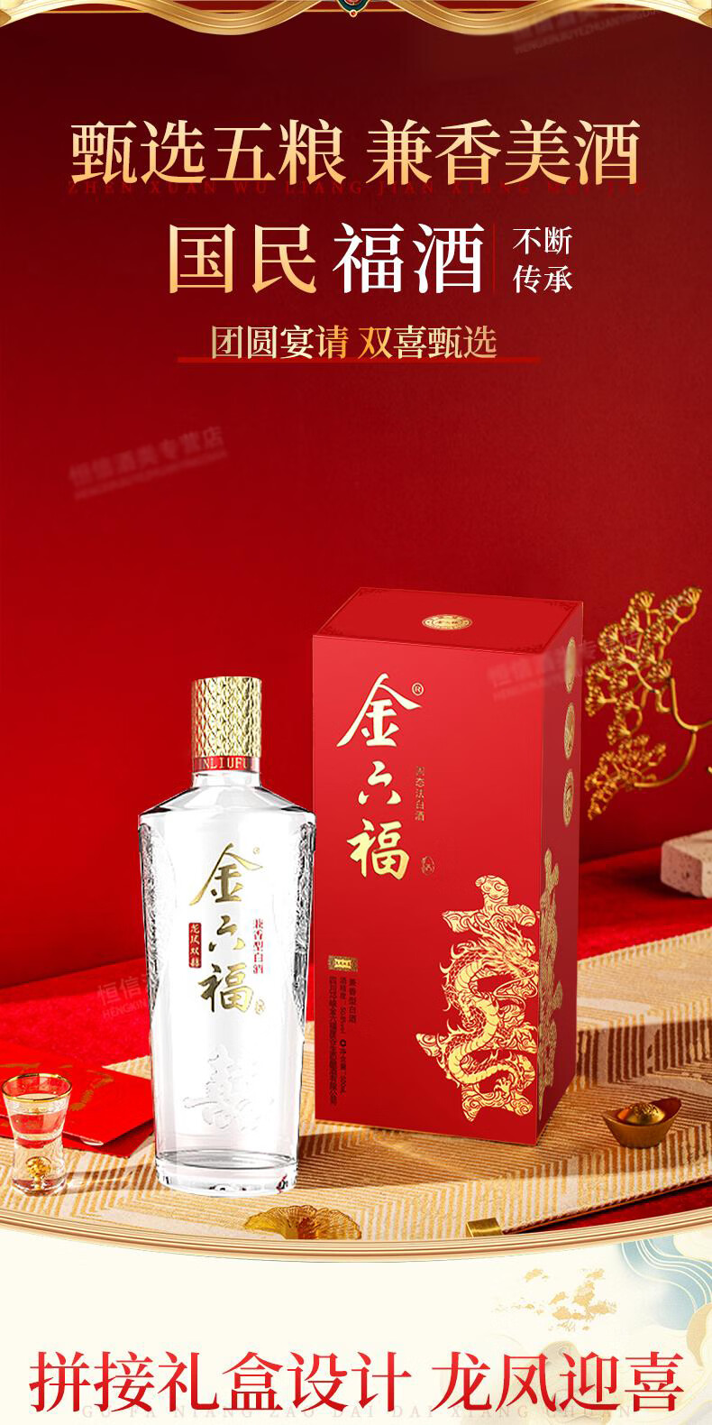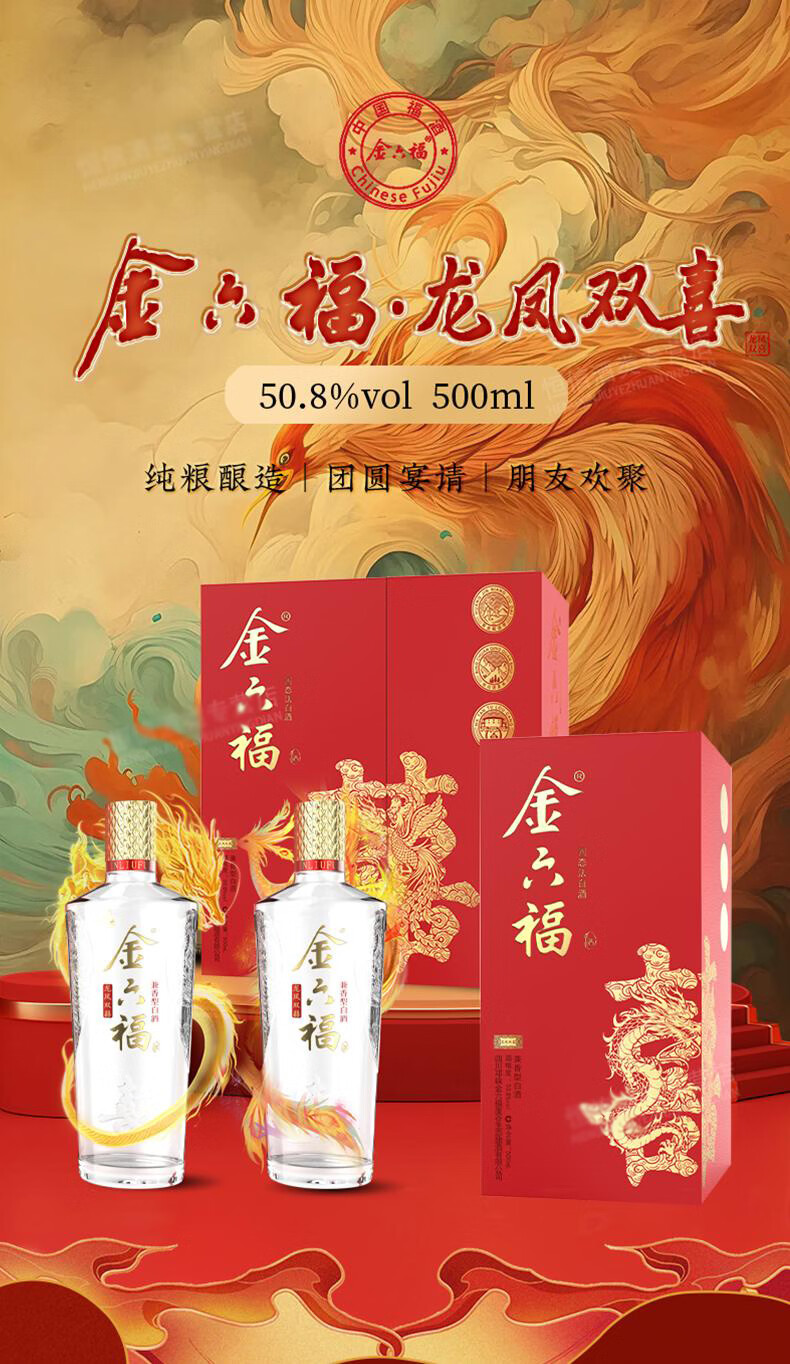 金六福白酒 兼香型优级酒 绵柔醇厚纯粮食酒 喜酒婚宴送礼 白酒整箱装 50.8度 500mL 2瓶 龙凤如意礼盒装