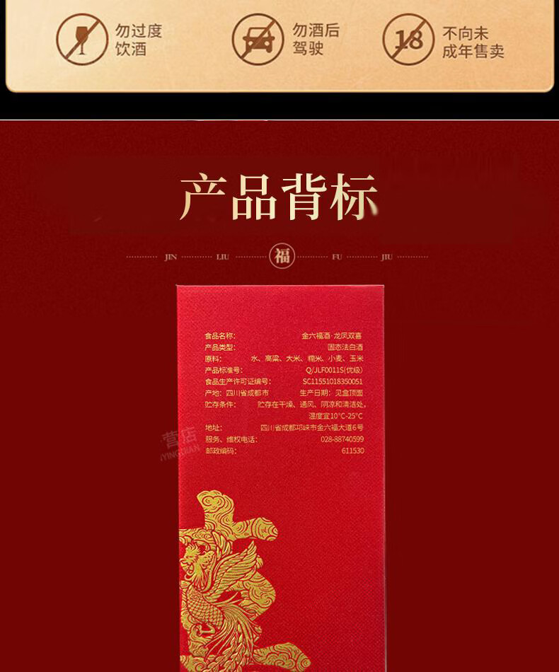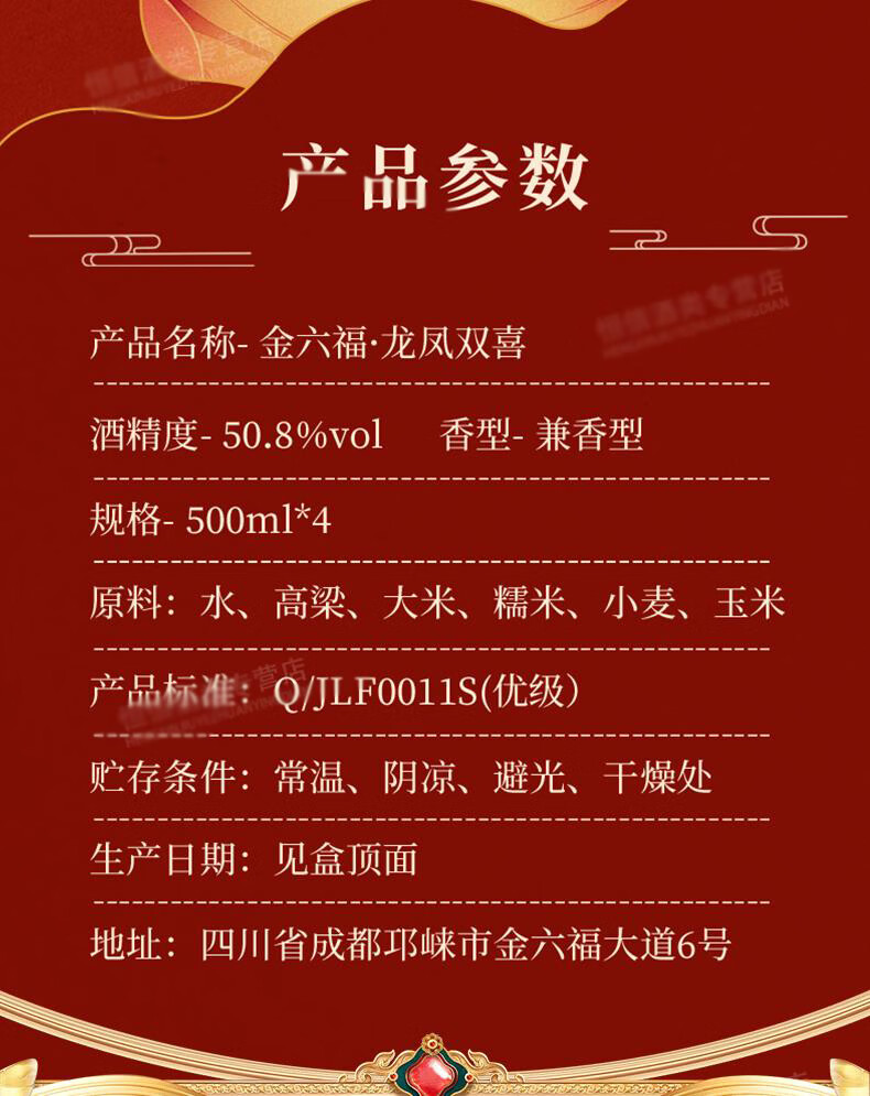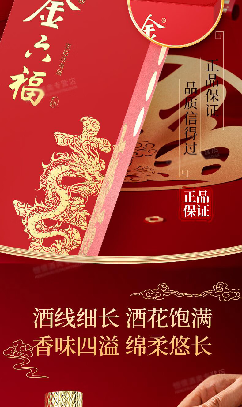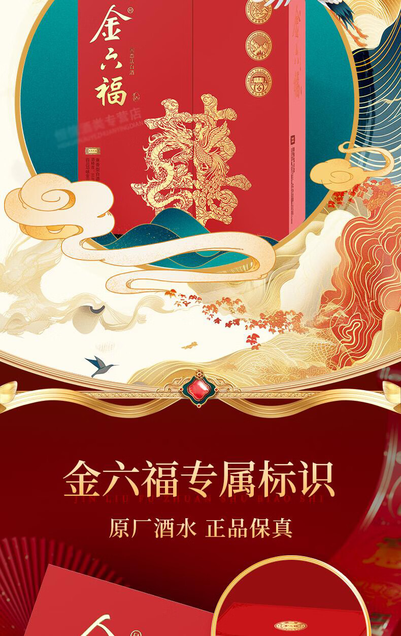 金六福白酒 兼香型优级酒 绵柔醇厚纯粮食酒 喜酒婚宴送礼 白酒整箱装 50.8度 500mL 2瓶 龙凤如意礼盒装