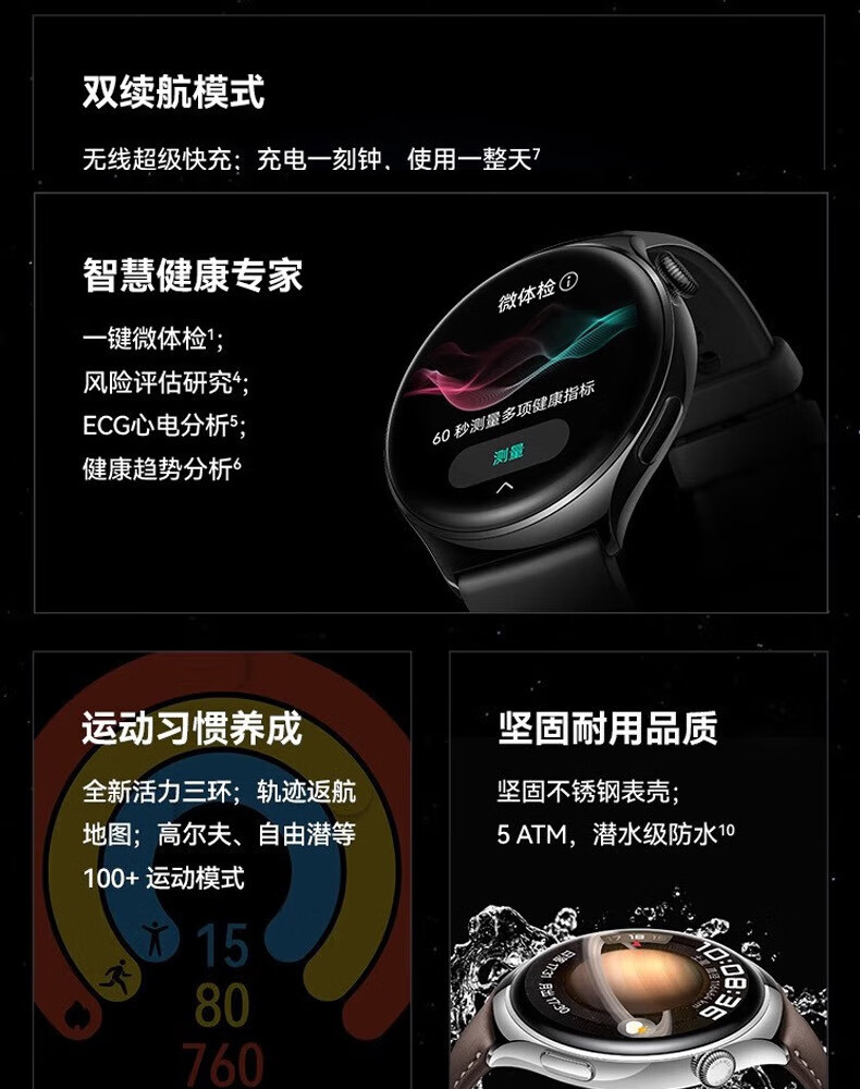 华为(HUAWEI)watch 4智能手表男女士款商务ESIM独立通话电话NFC心率血氧检测运动高端商务送成人情侣礼物 土星褐46mm+好评送礼