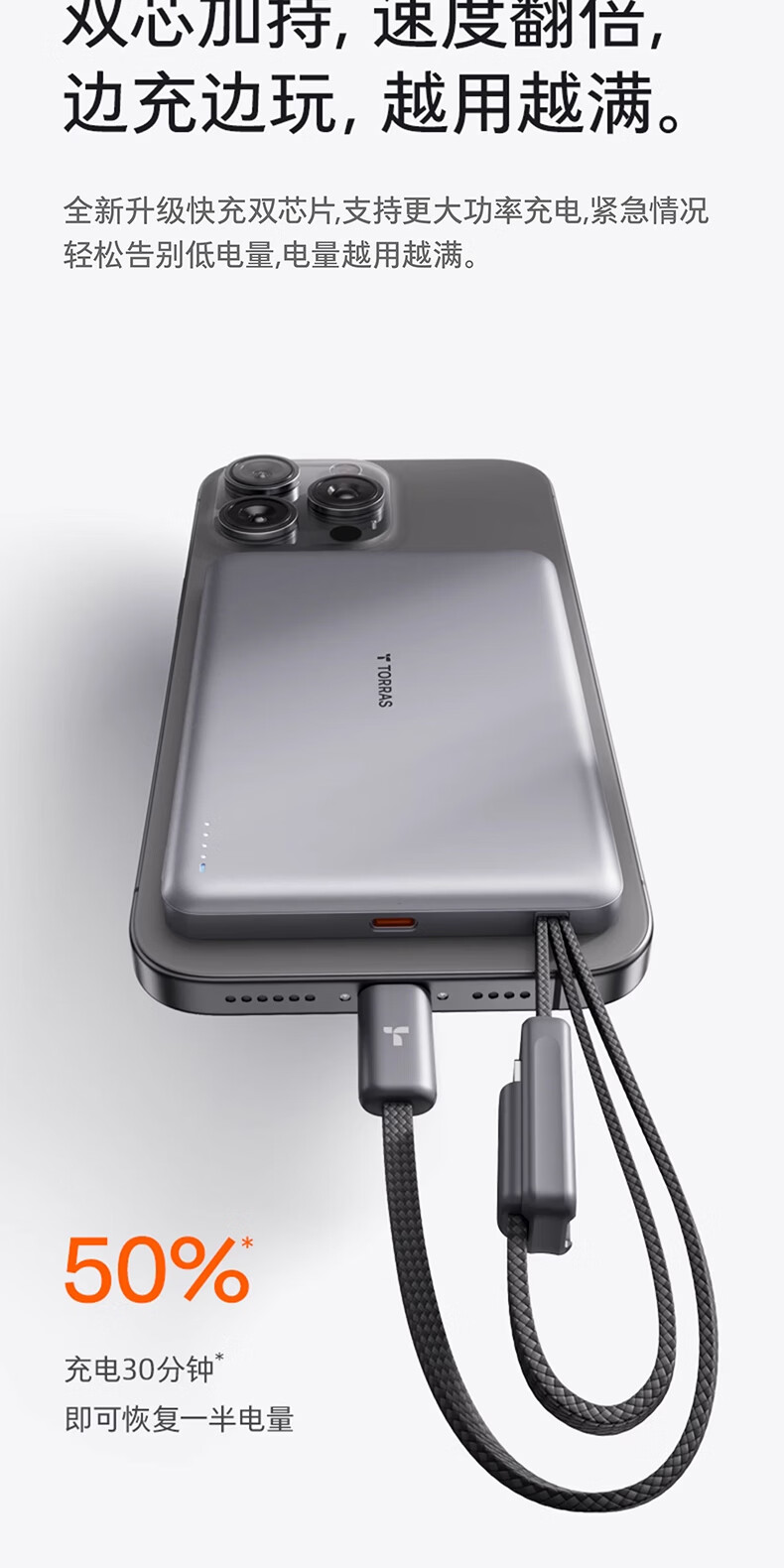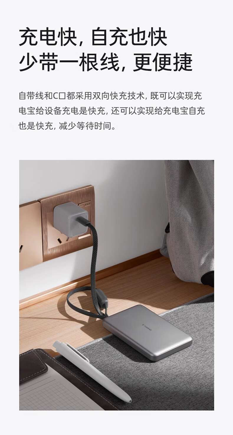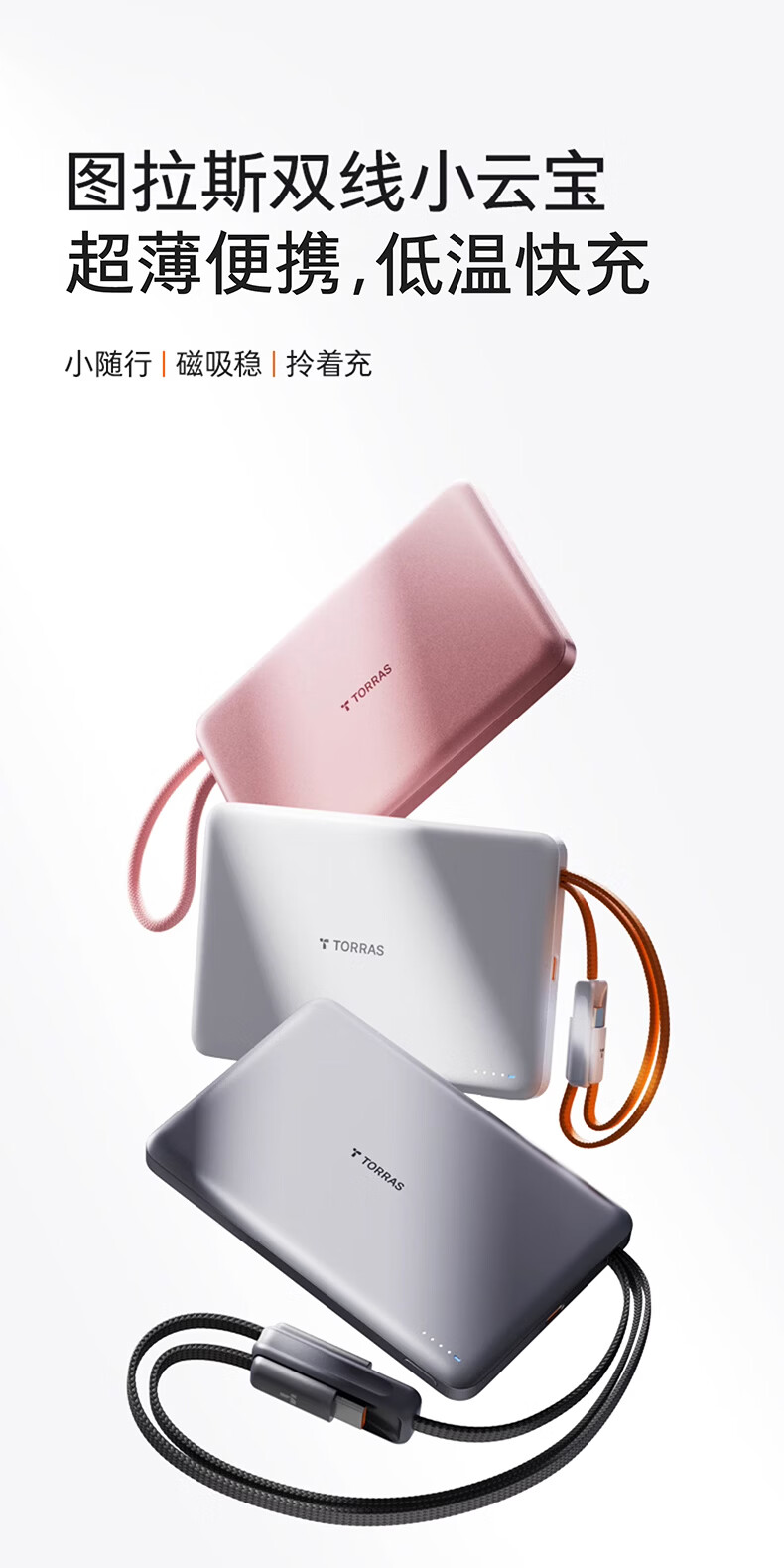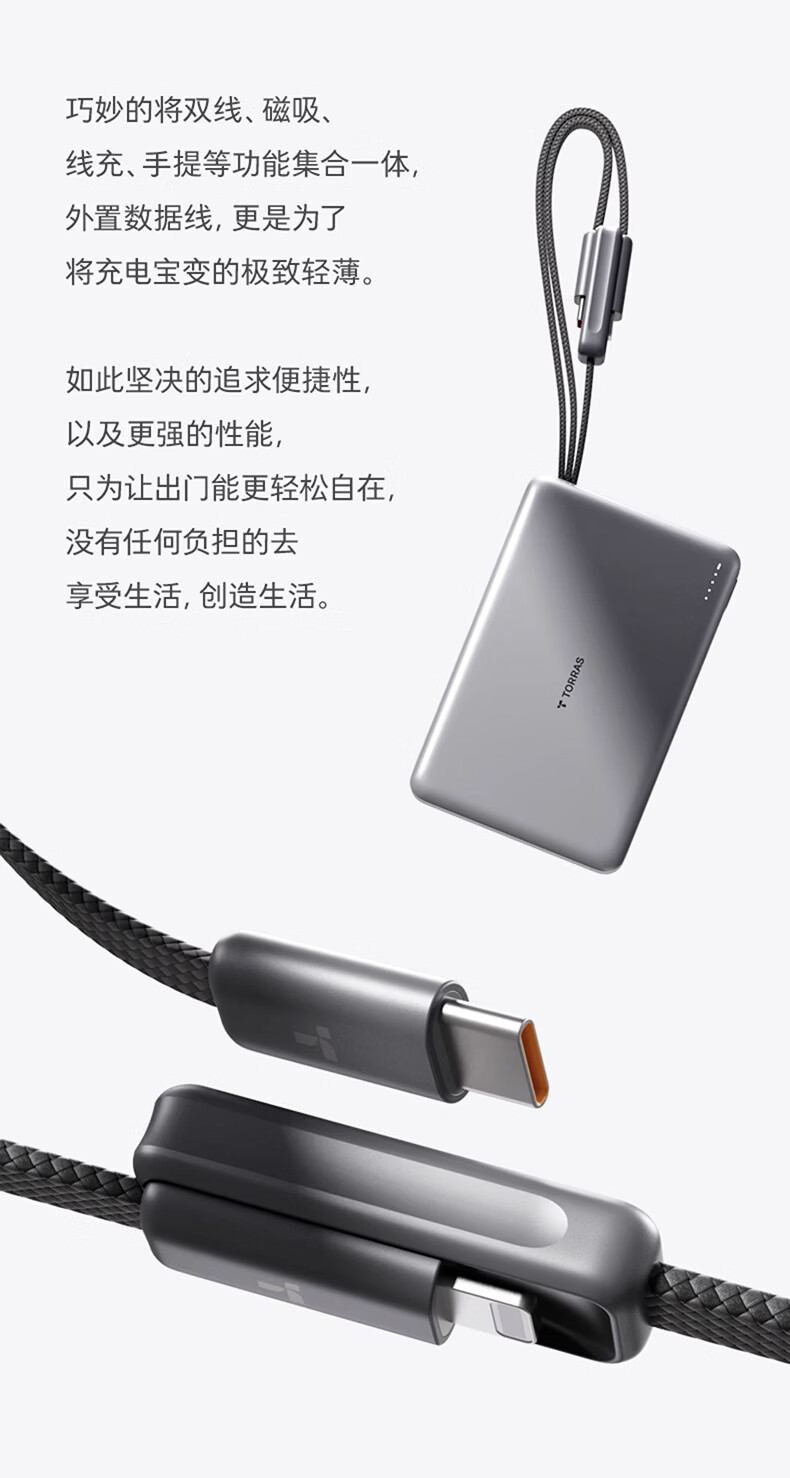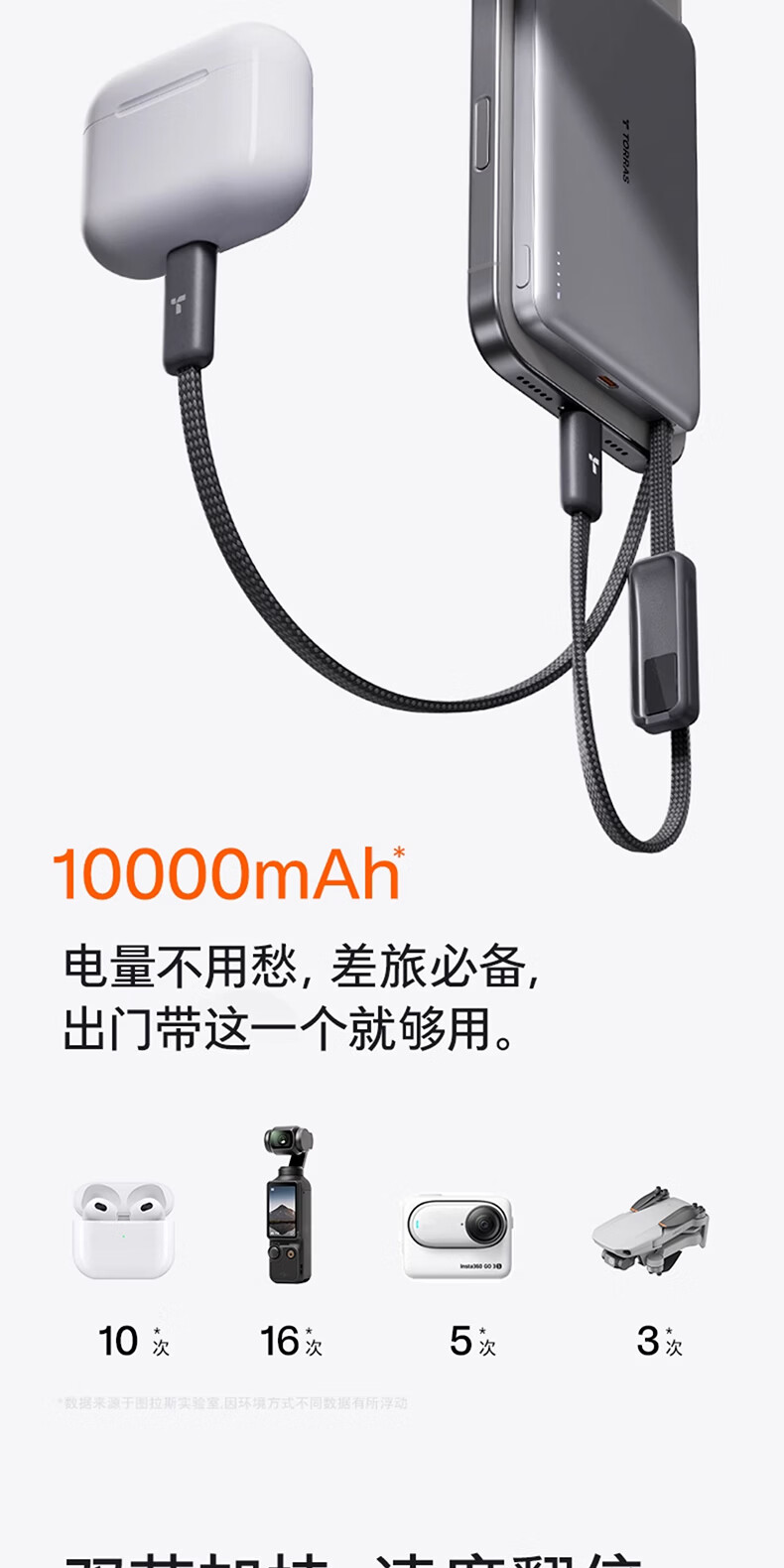 图拉斯充电宝【2026重磅新款丨3C认证】超薄自带双线式10000毫安可上飞机快充苹果移动电源小巧便携 【自带线】白Lighting+TypeC 认准热销第1名丨最新5A/3C认证丨轻薄便携顶配款