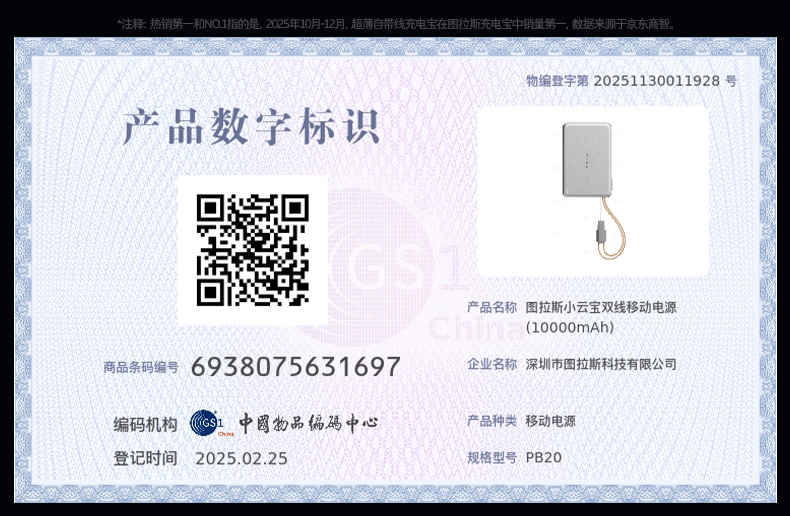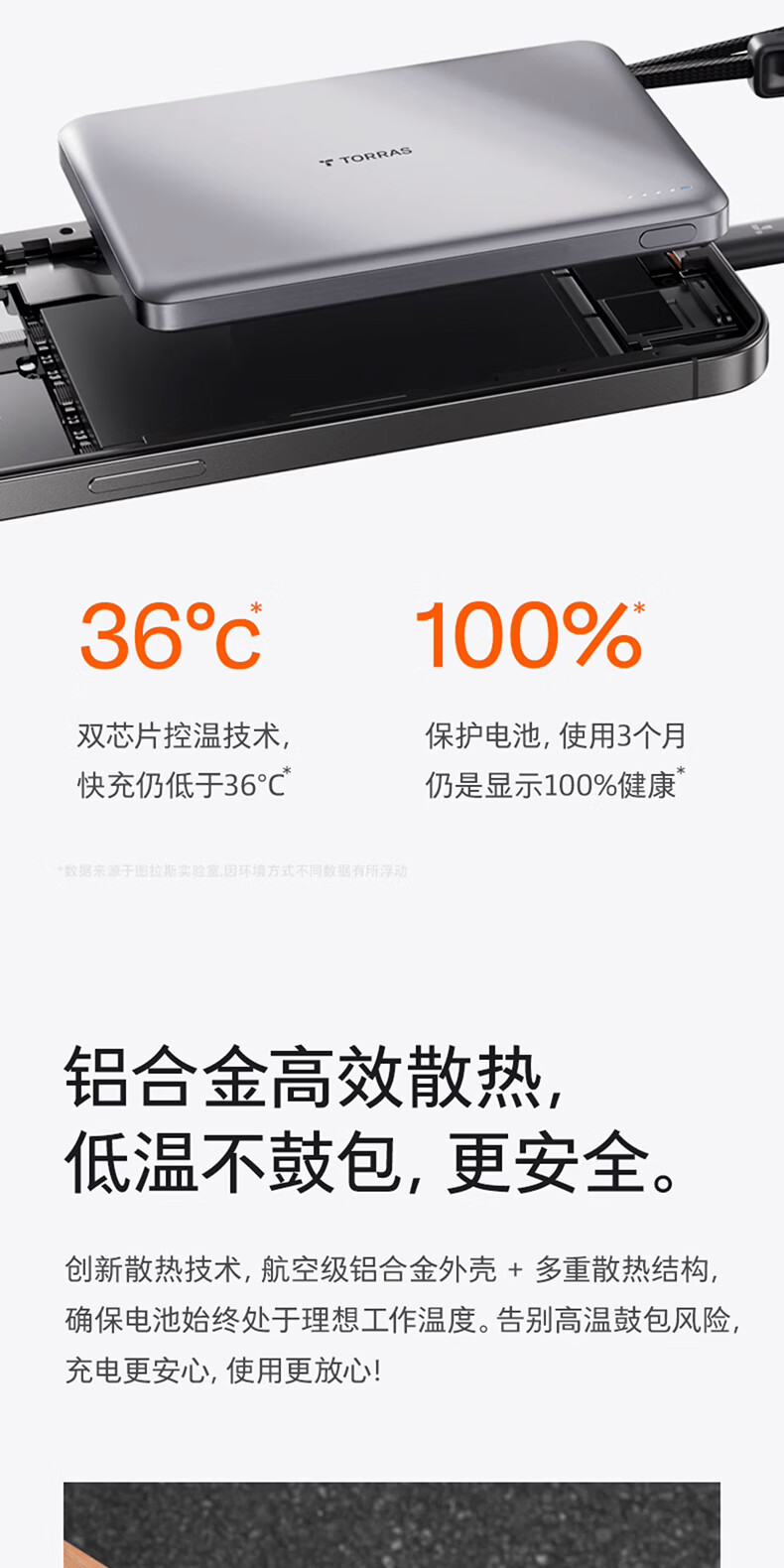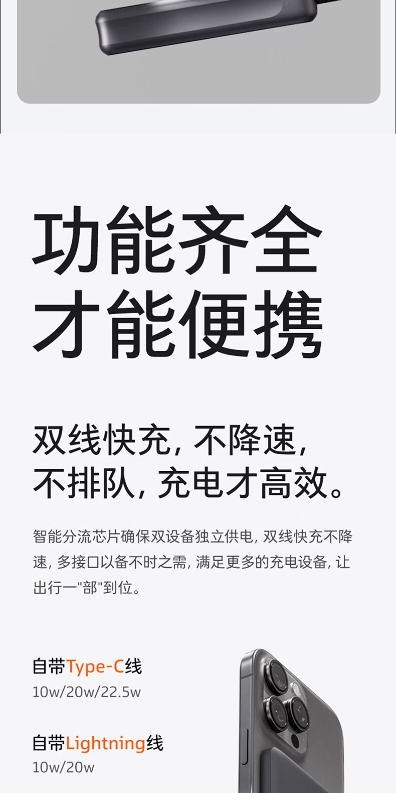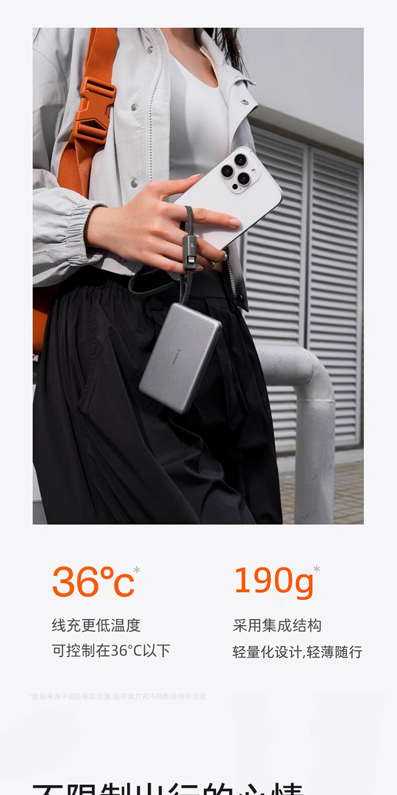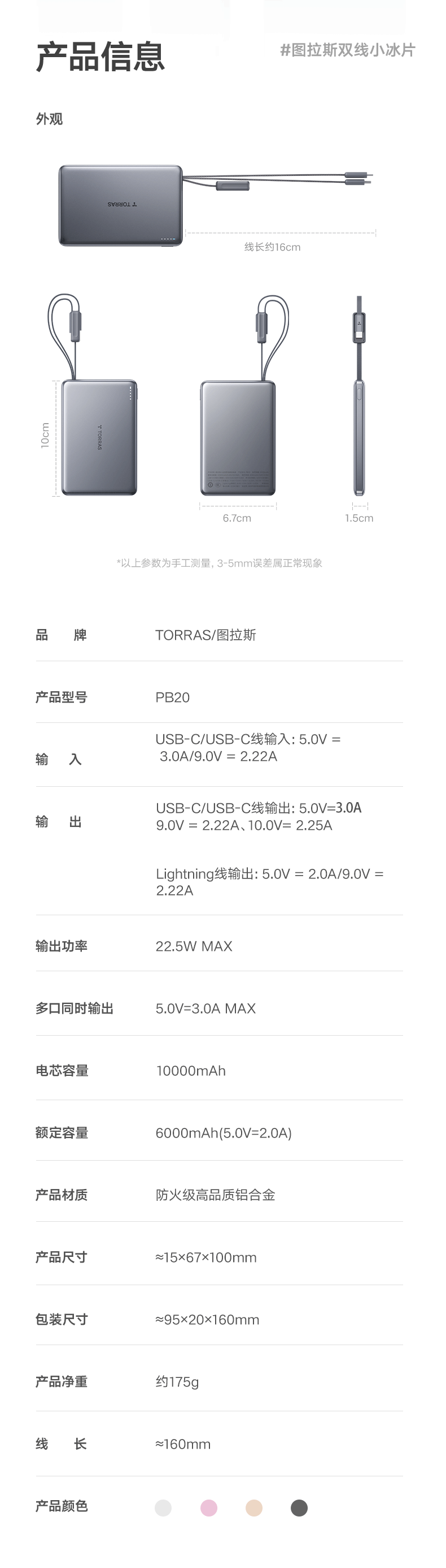 图拉斯充电宝【2026重磅新款丨3C认证】超薄自带双线式10000毫安可上飞机快充苹果移动电源小巧便携 【自带线】白Lighting+TypeC 认准热销第1名丨最新5A/3C认证丨轻薄便携顶配款