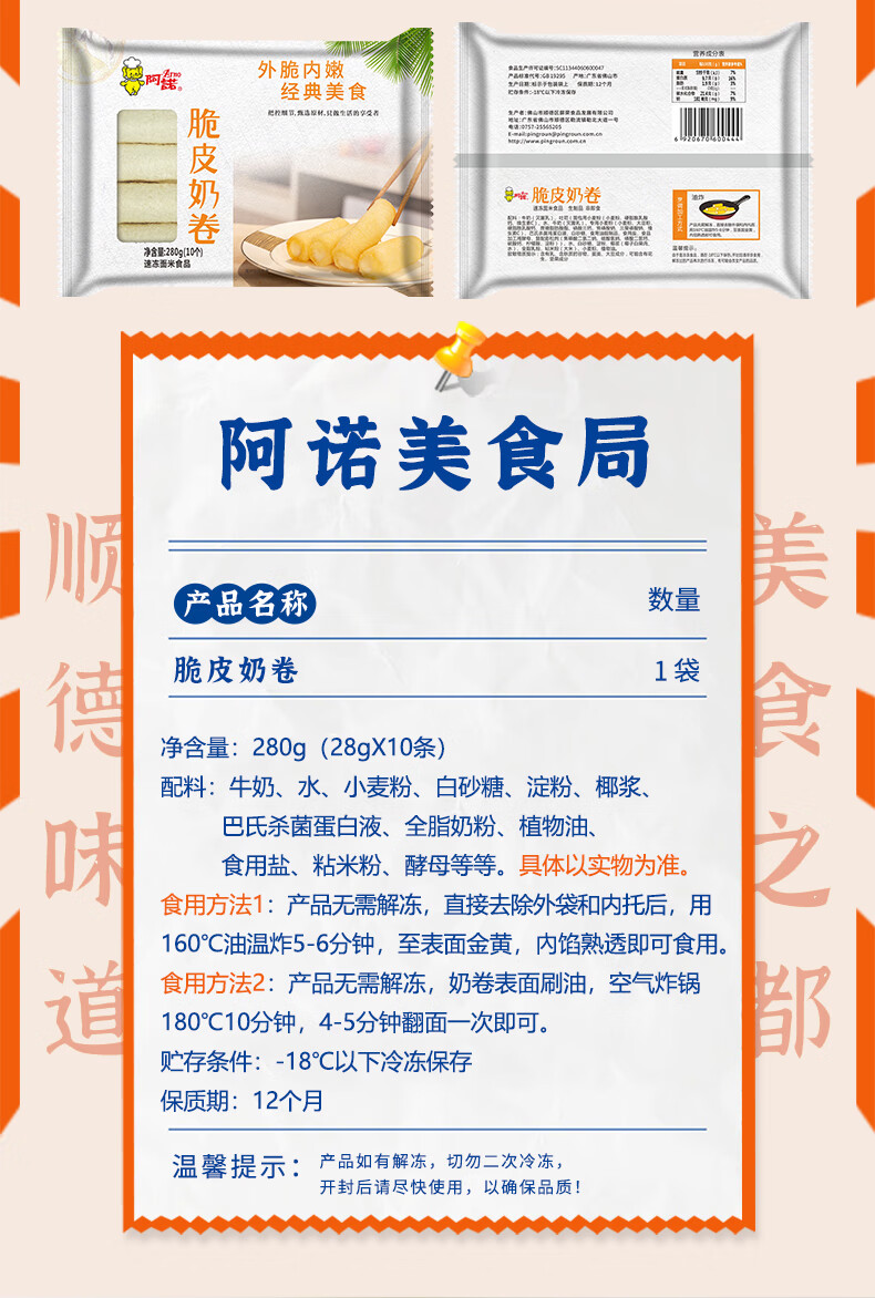 阿诺炸牛奶三个口味组合 共810g 炸鲜奶下午茶点心油炸空气炸锅食材 脆皮奶卷280g*2袋